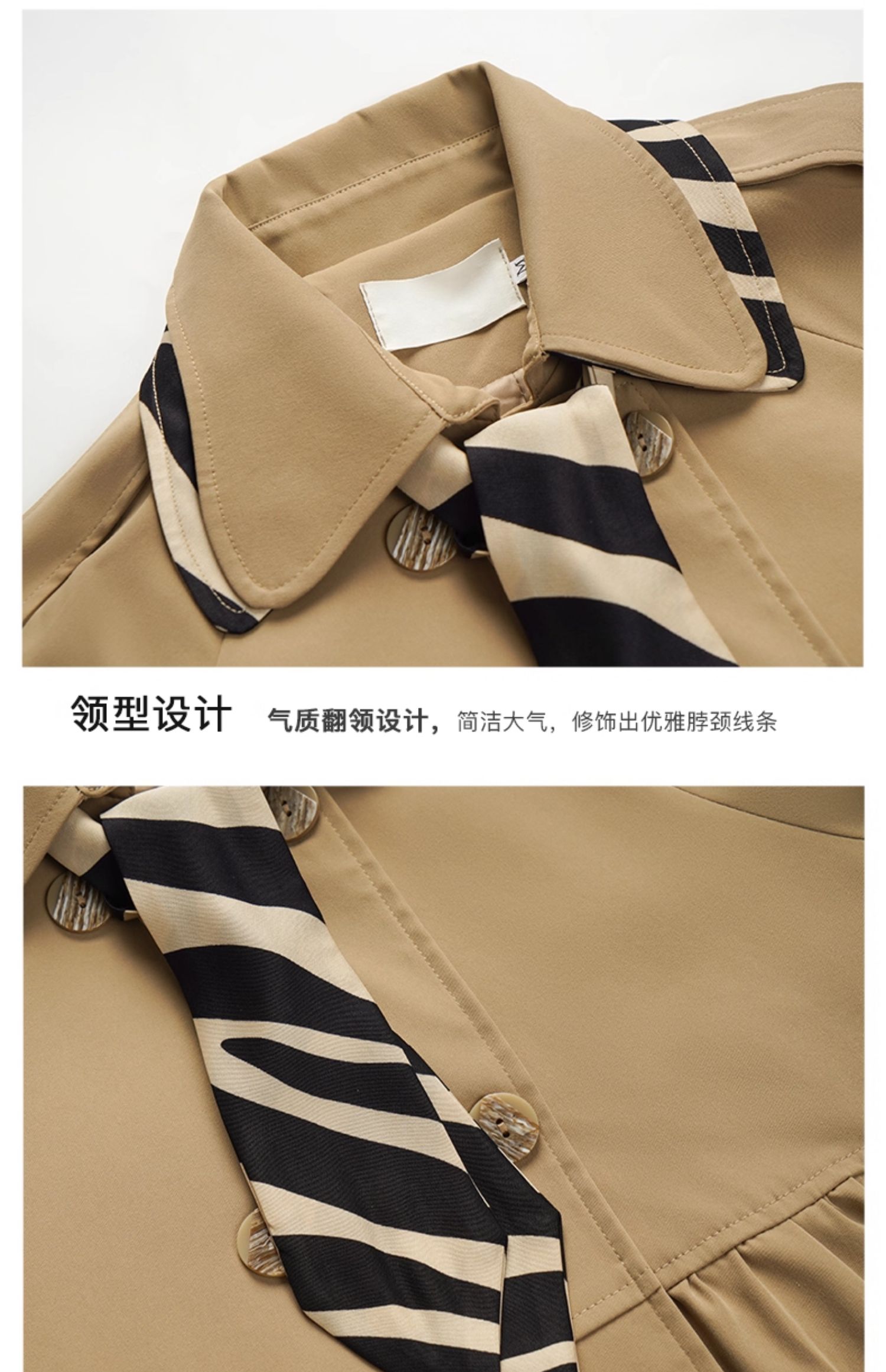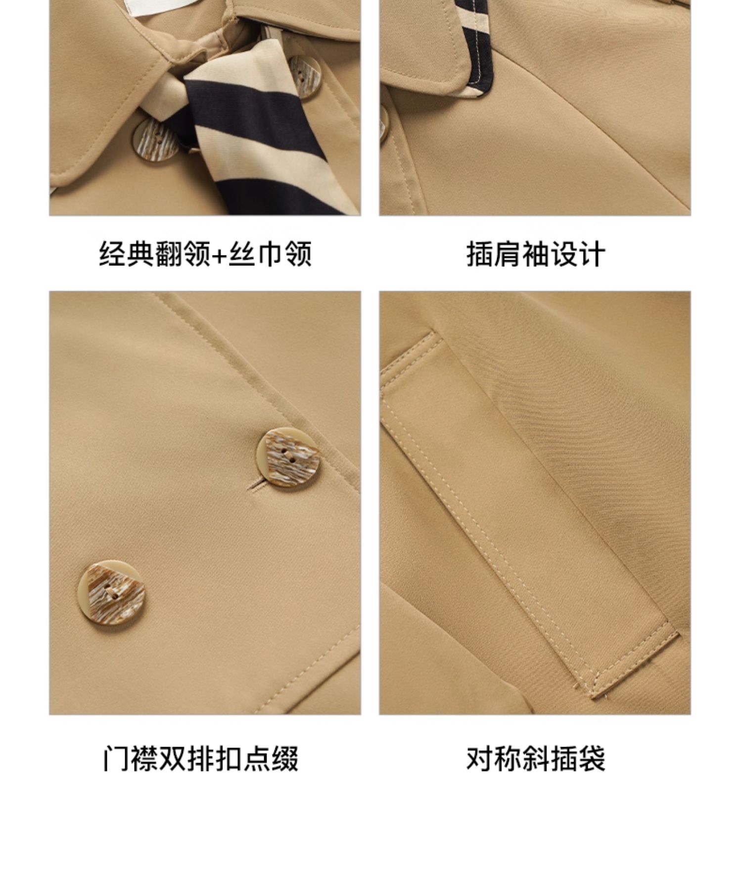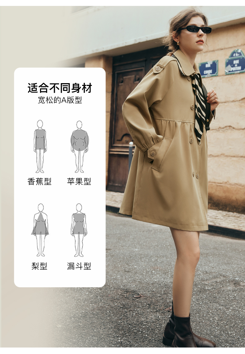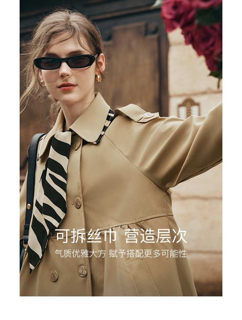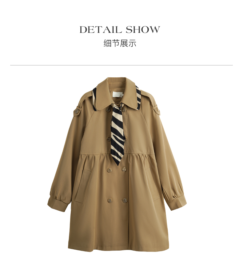 欧芮儿法式翻领中长款风衣外套女秋季2025新款宽松丝巾大衣小个子