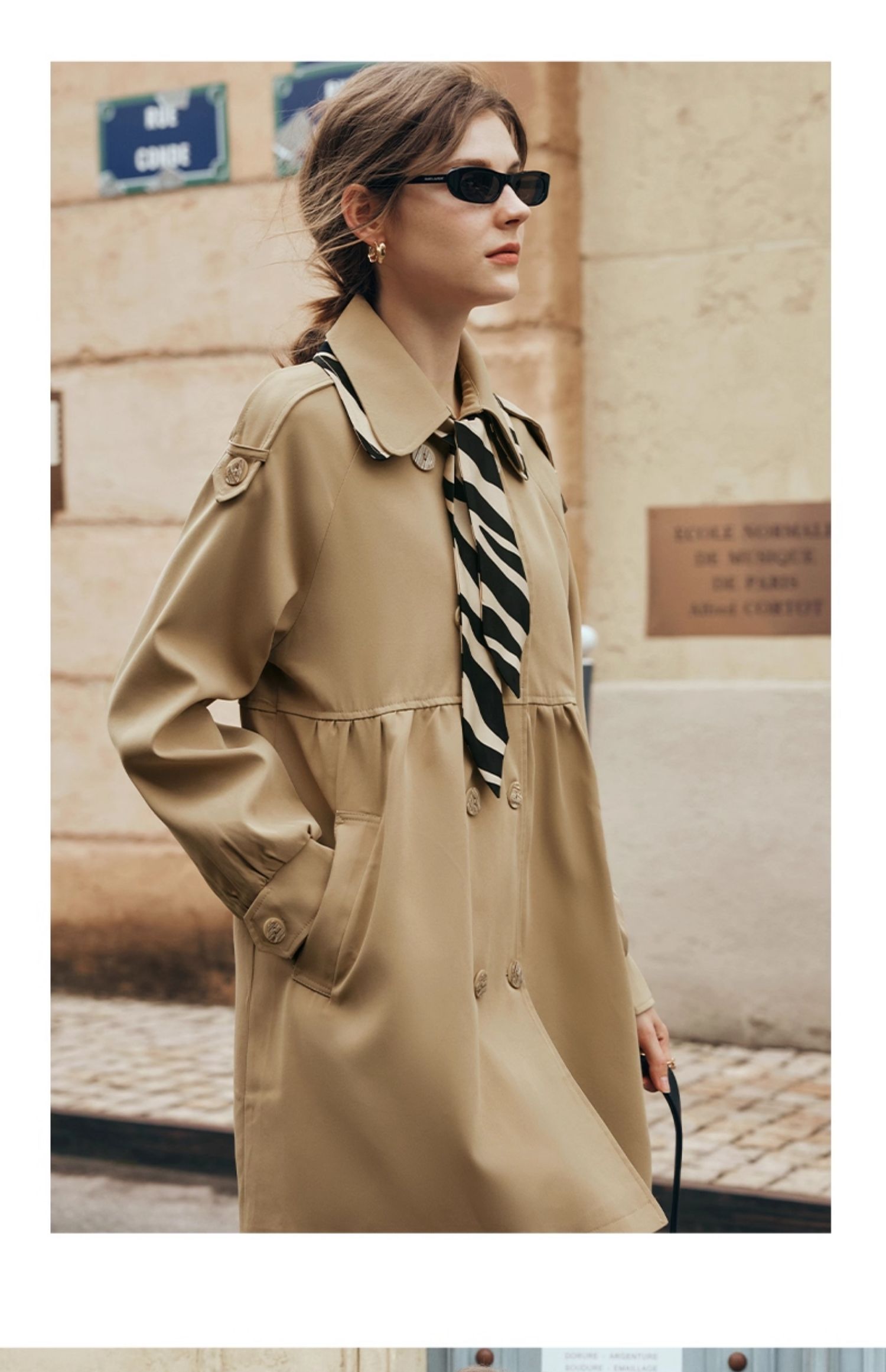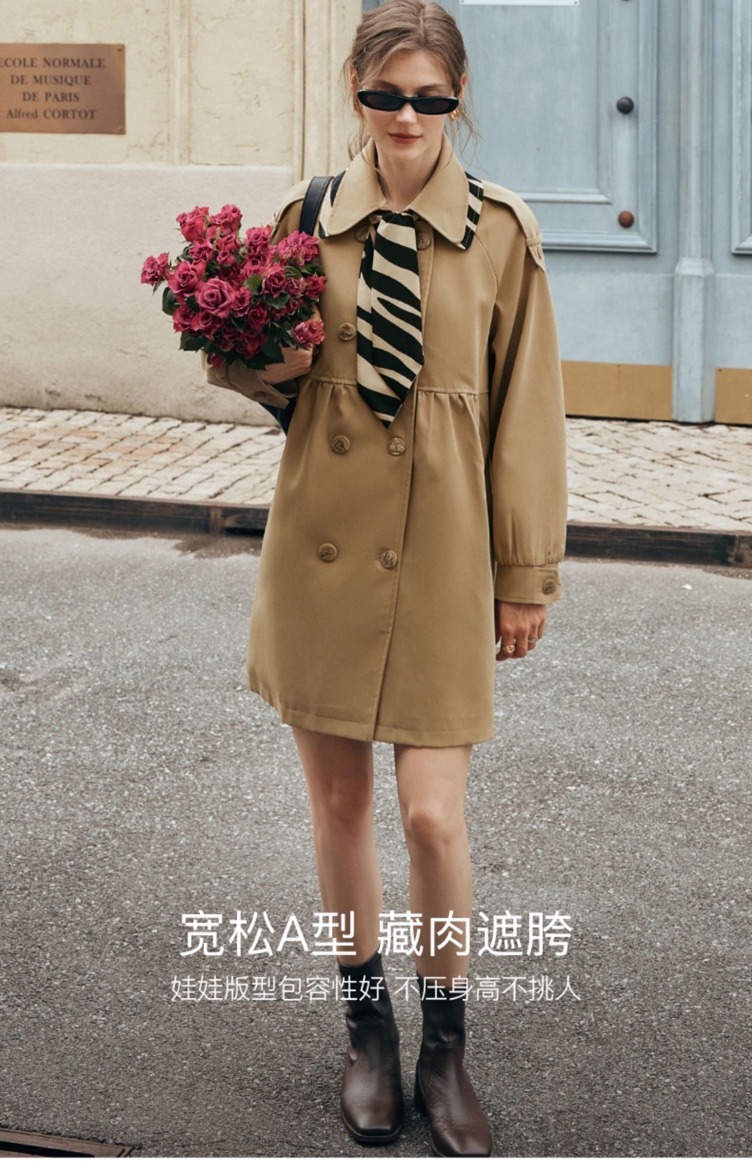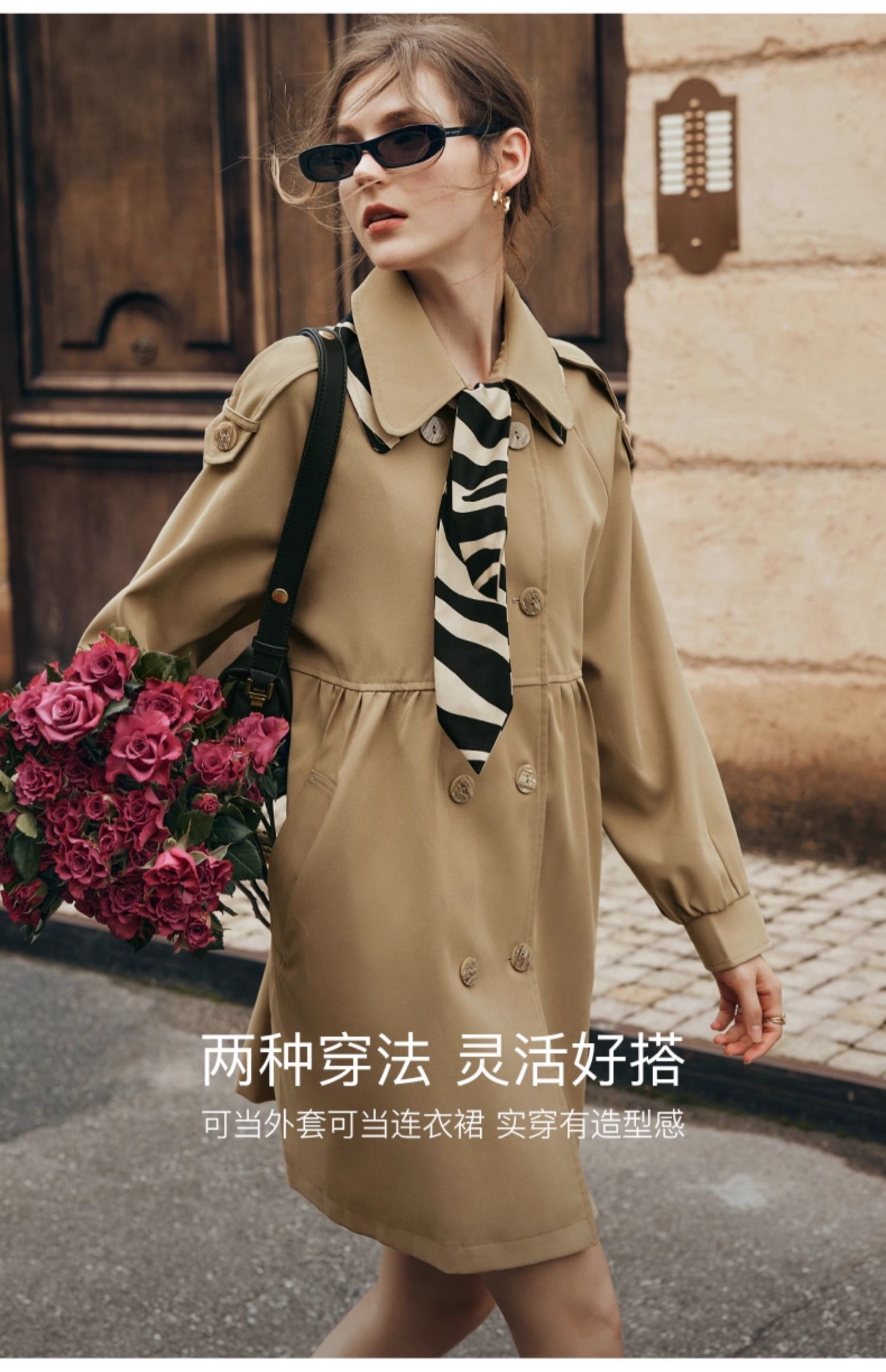 欧芮儿法式翻领中长款风衣外套女秋季2025新款宽松丝巾大衣小个子