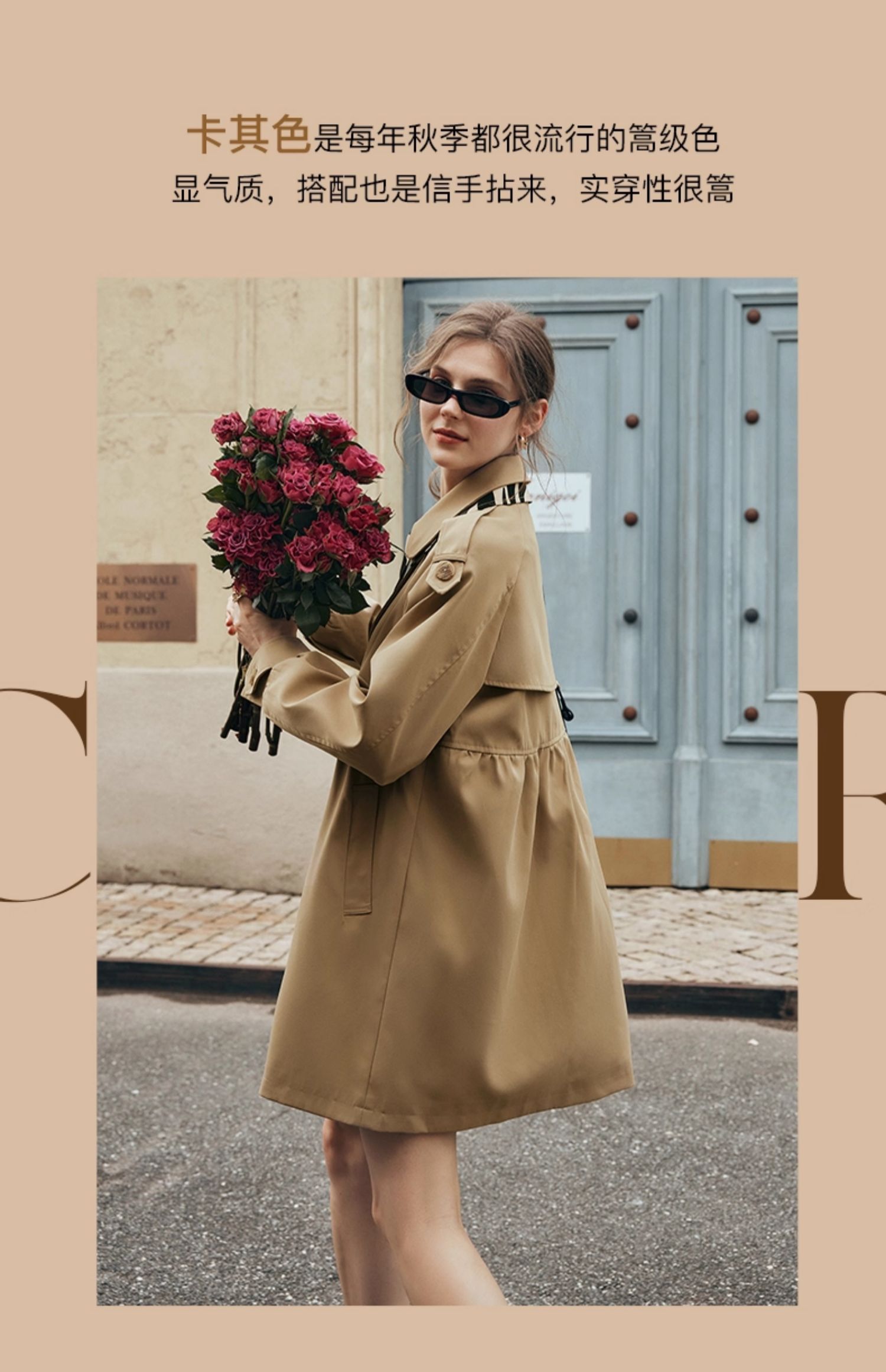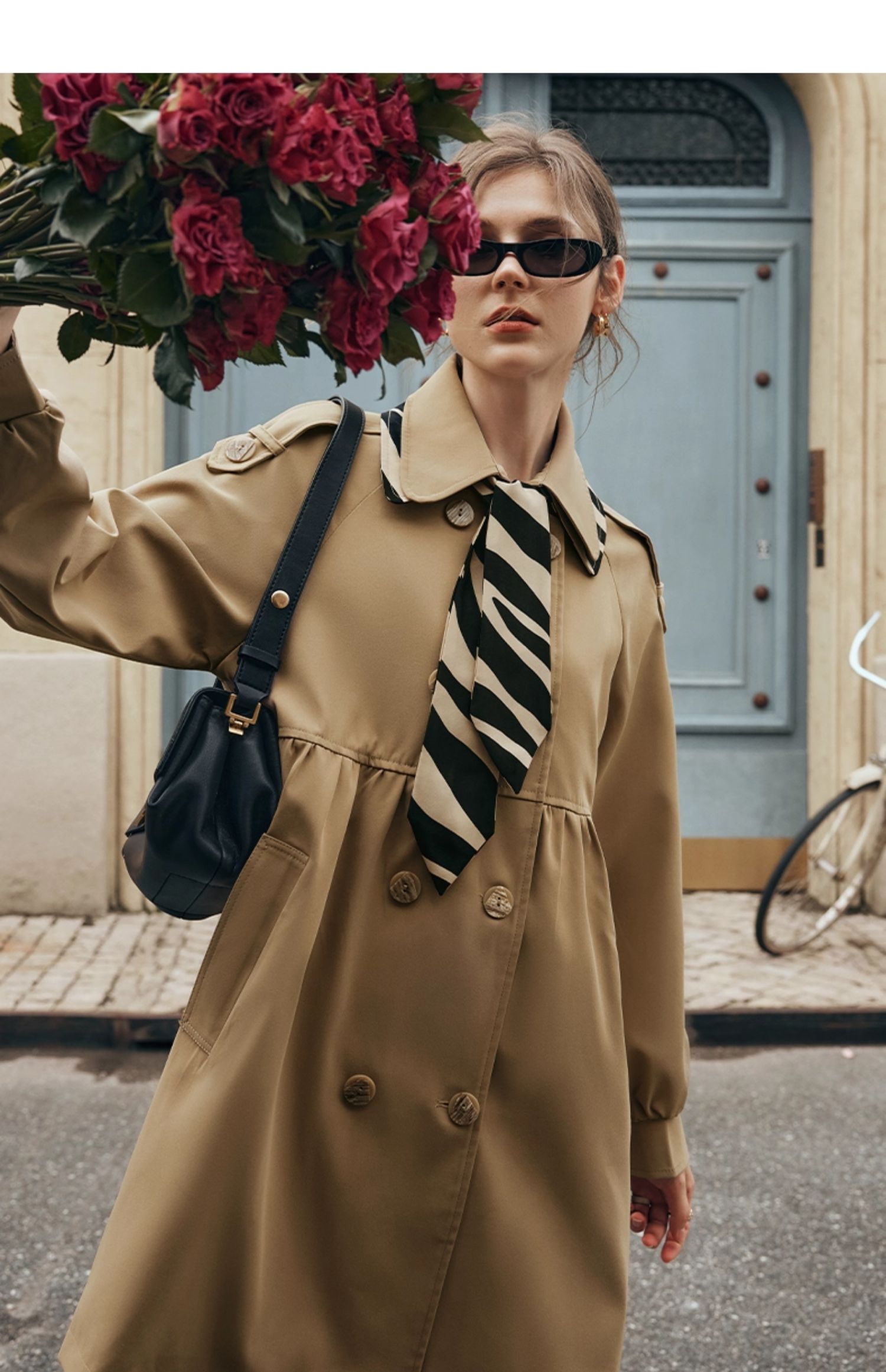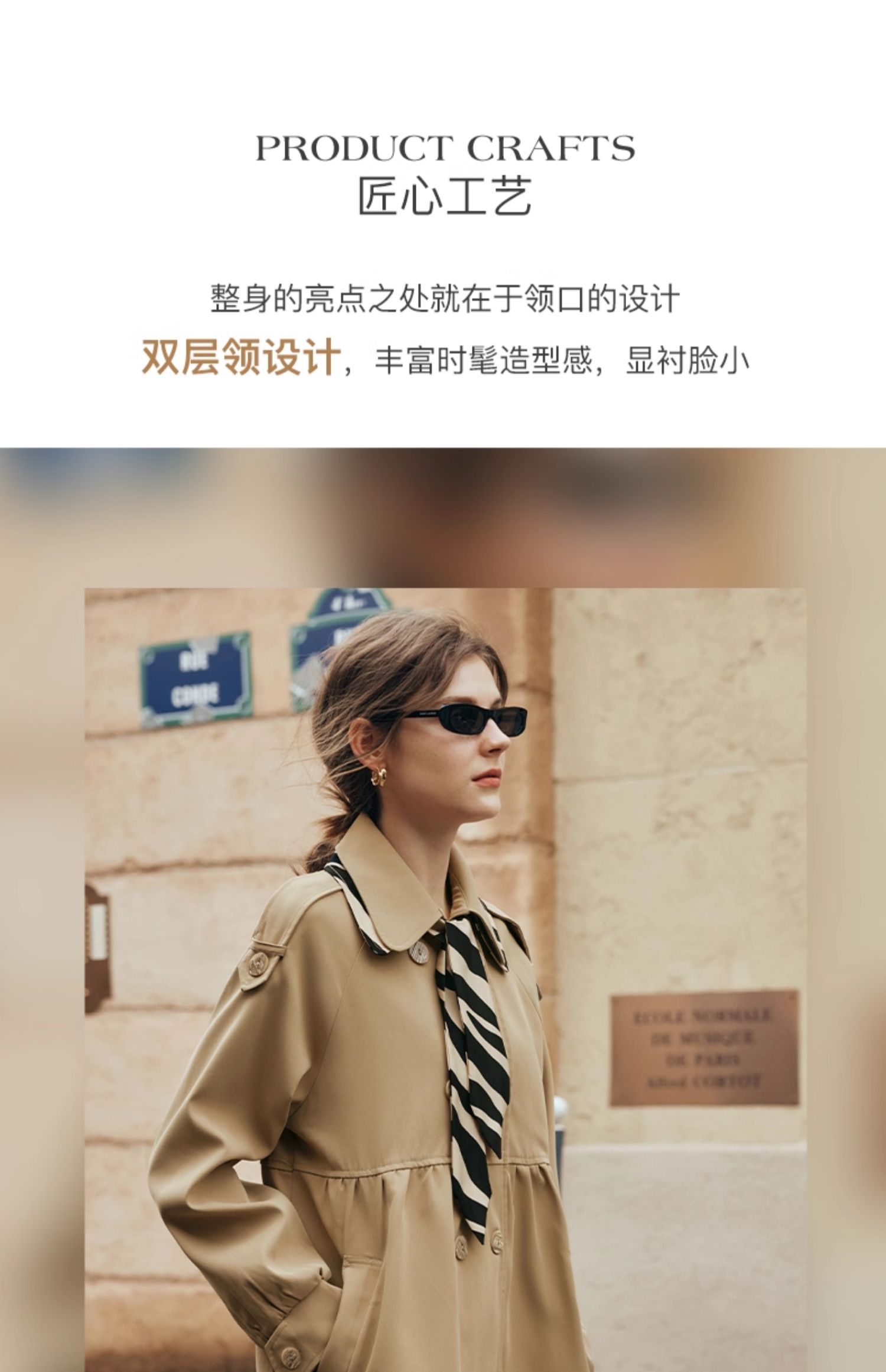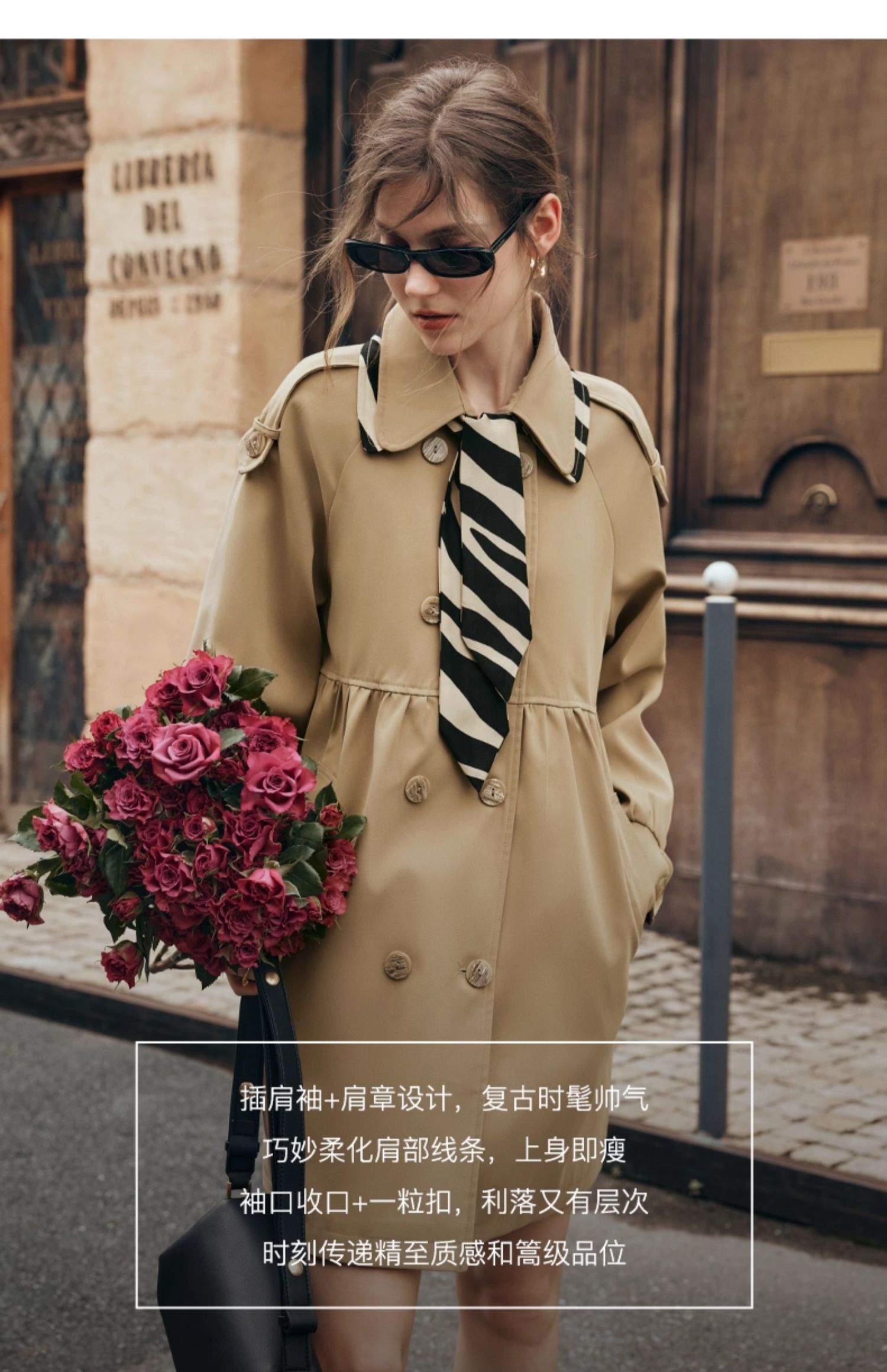 欧芮儿法式翻领中长款风衣外套女秋季2025新款宽松丝巾大衣小个子