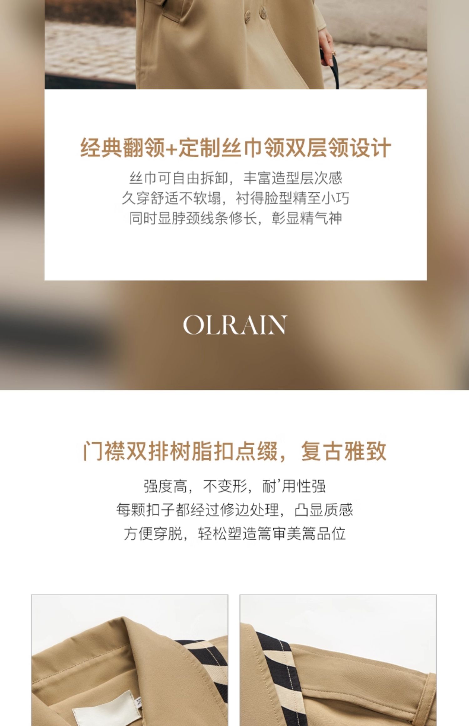 - “精致”是欧芮儿olrain品牌文化的核心,欧芮儿认为,精致的女人,不但要外在动人,更要内在迷人,内外兼修,有魅力、有气质、有内涵,自信而不自傲,优雅而不矫揉,自有万种风情而不轻浮,更不故作矜持。