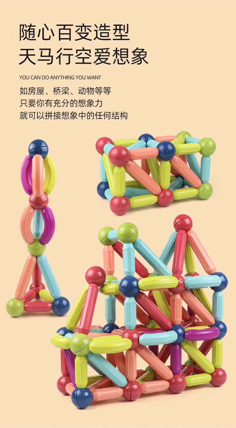 【儿童拼装积木】百变磁力棒强磁玩具拼装积木磁力棒儿童益智吸铁磁棒早教强磁棒(请在大人陪同下玩耍)
