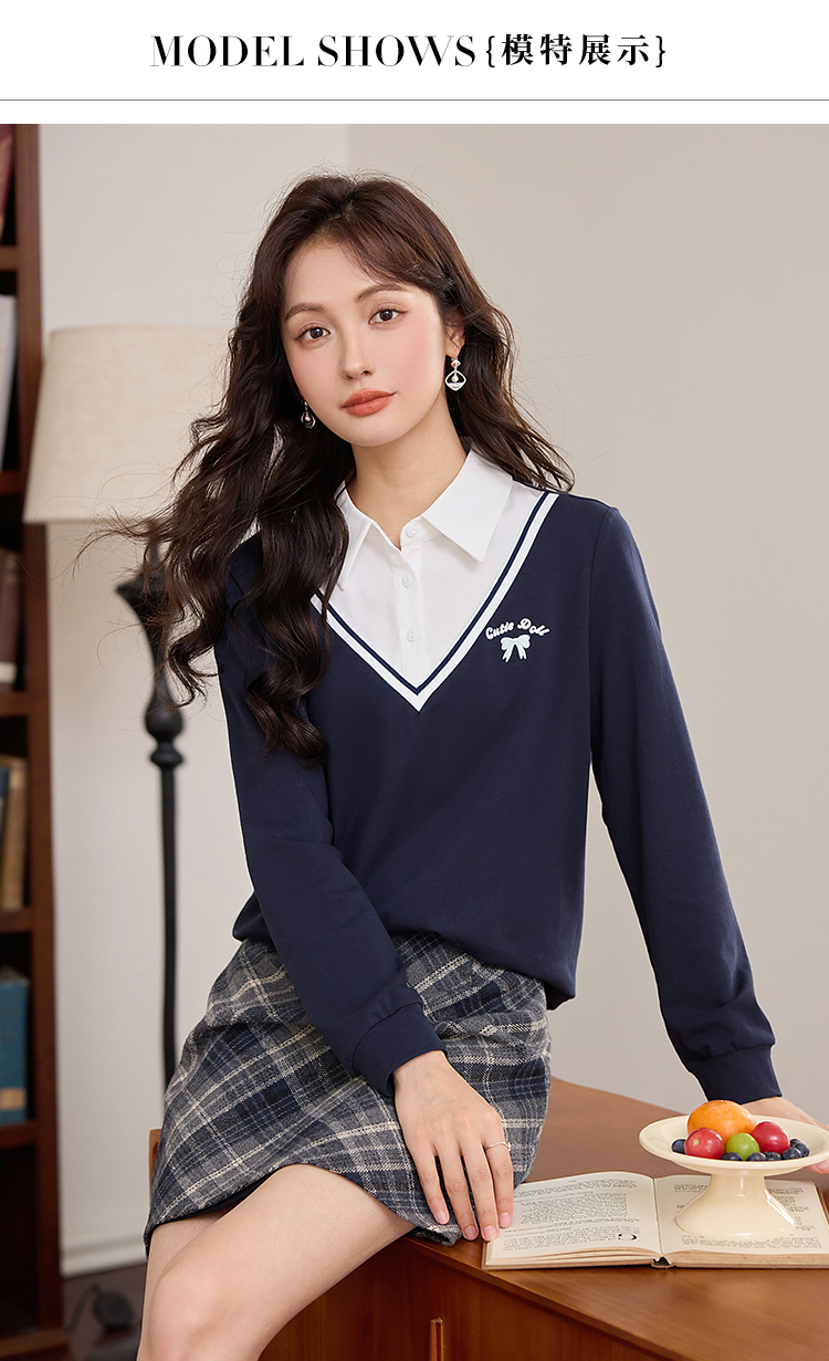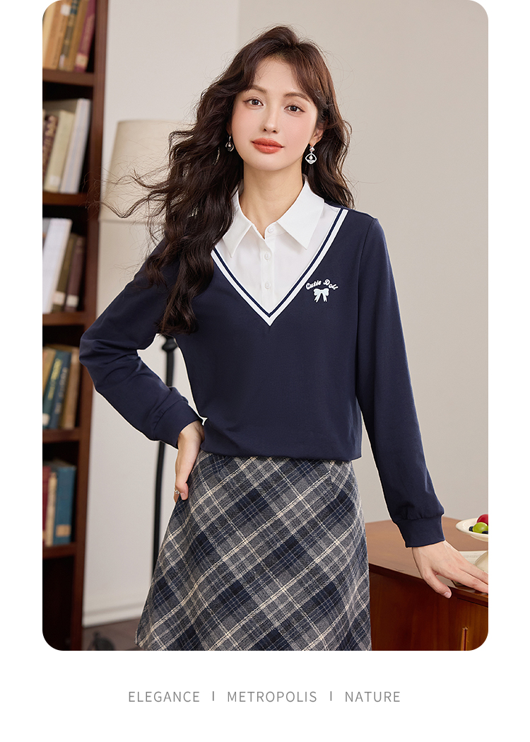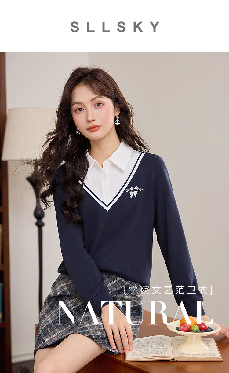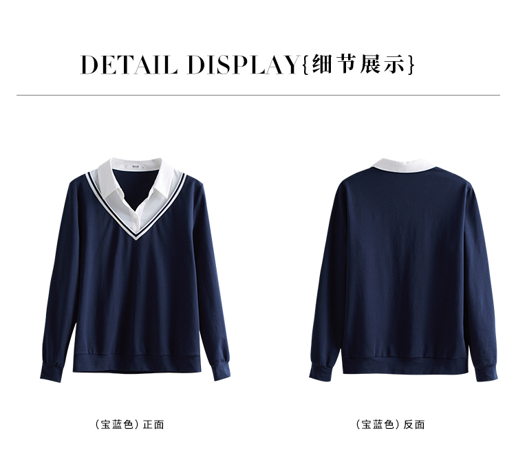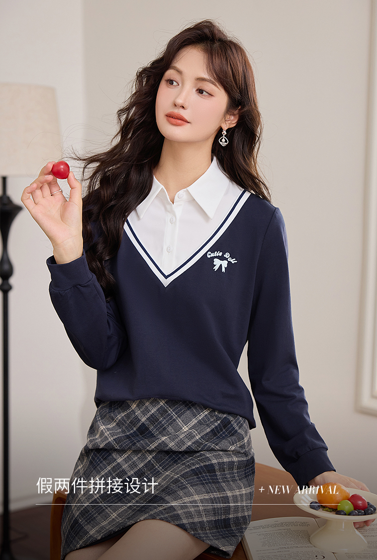【年终特卖】熙世界【学院风假两件卫衣】文艺百搭春秋款衬衫翻领女士上衣