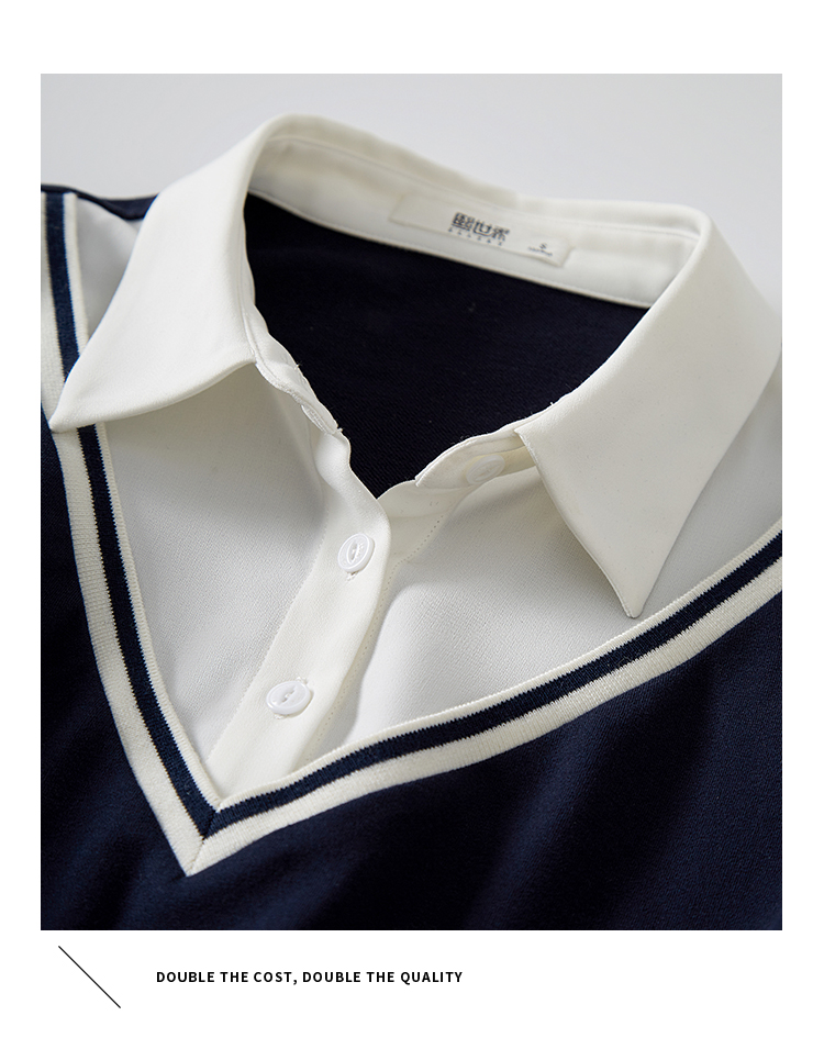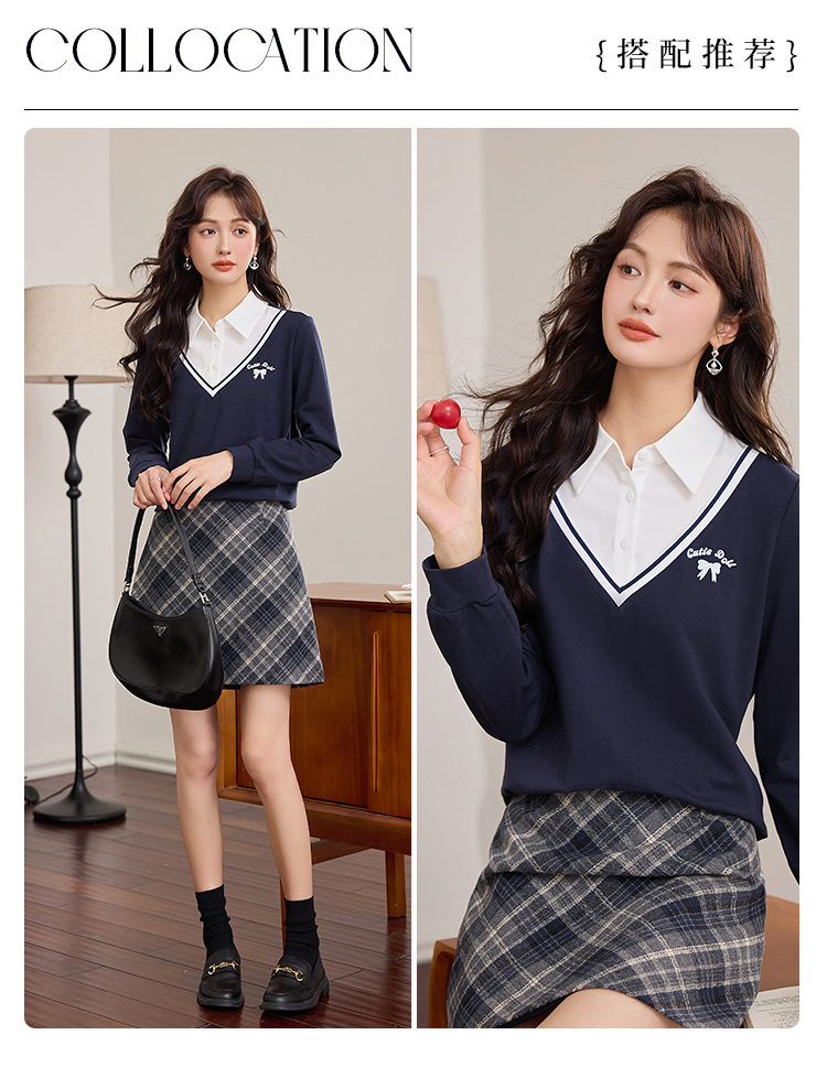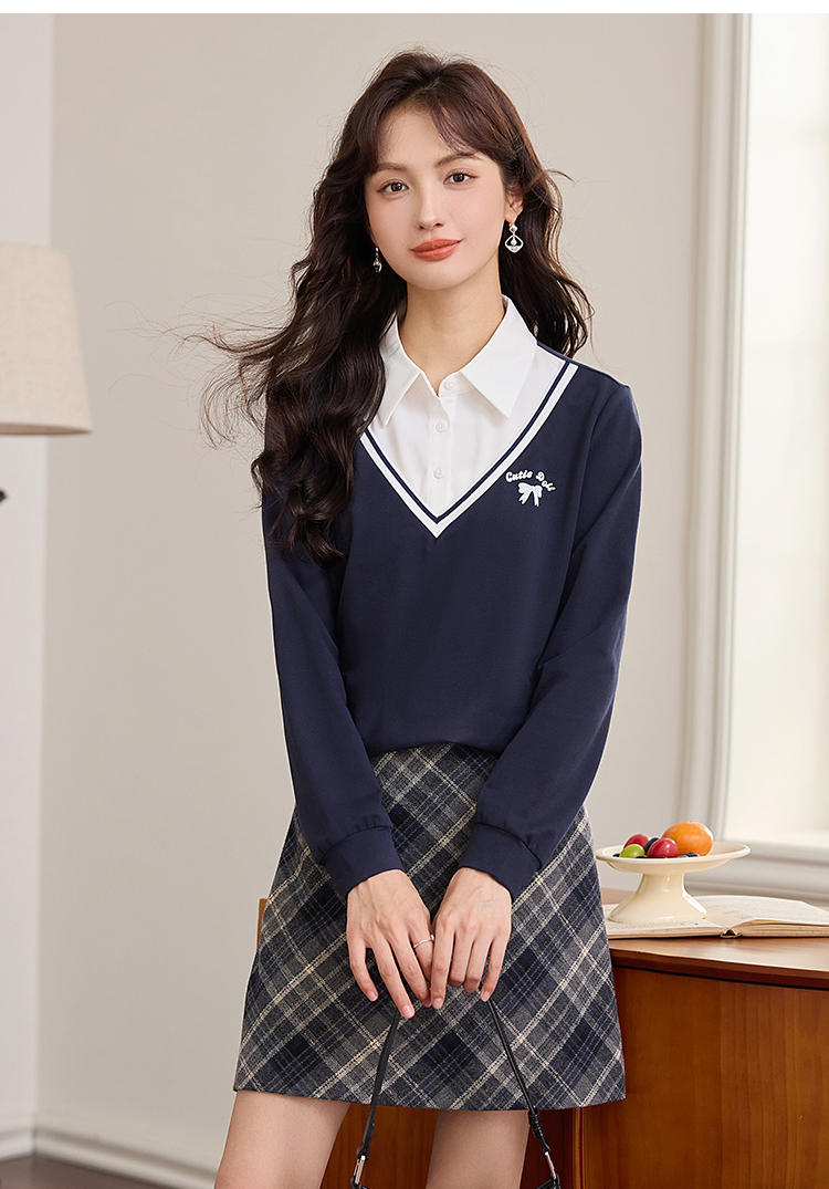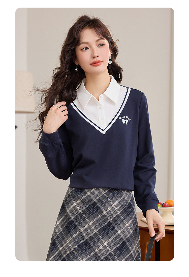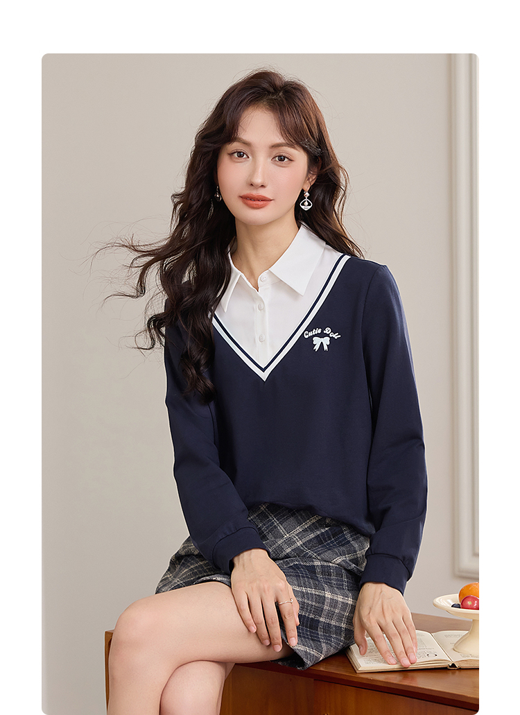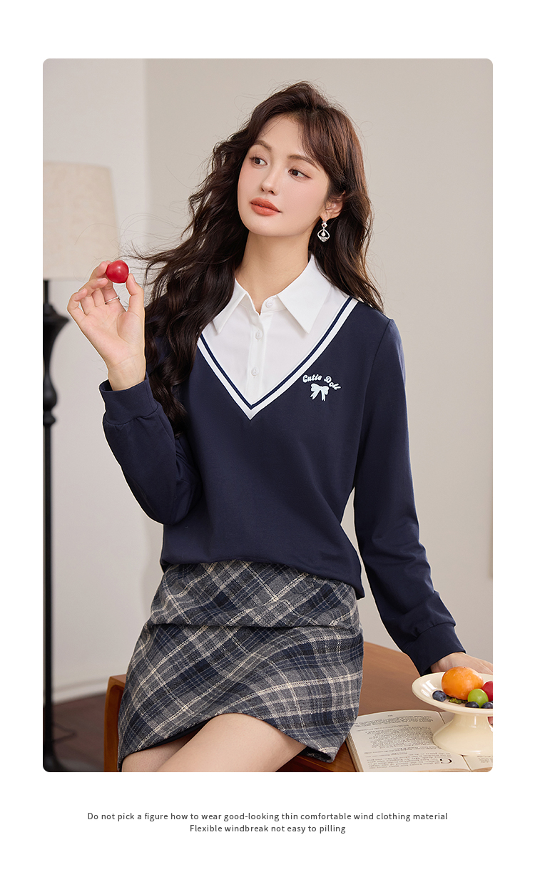 【年终特卖】熙世界【学院风假两件卫衣】文艺百搭春秋款衬衫翻领女士上衣