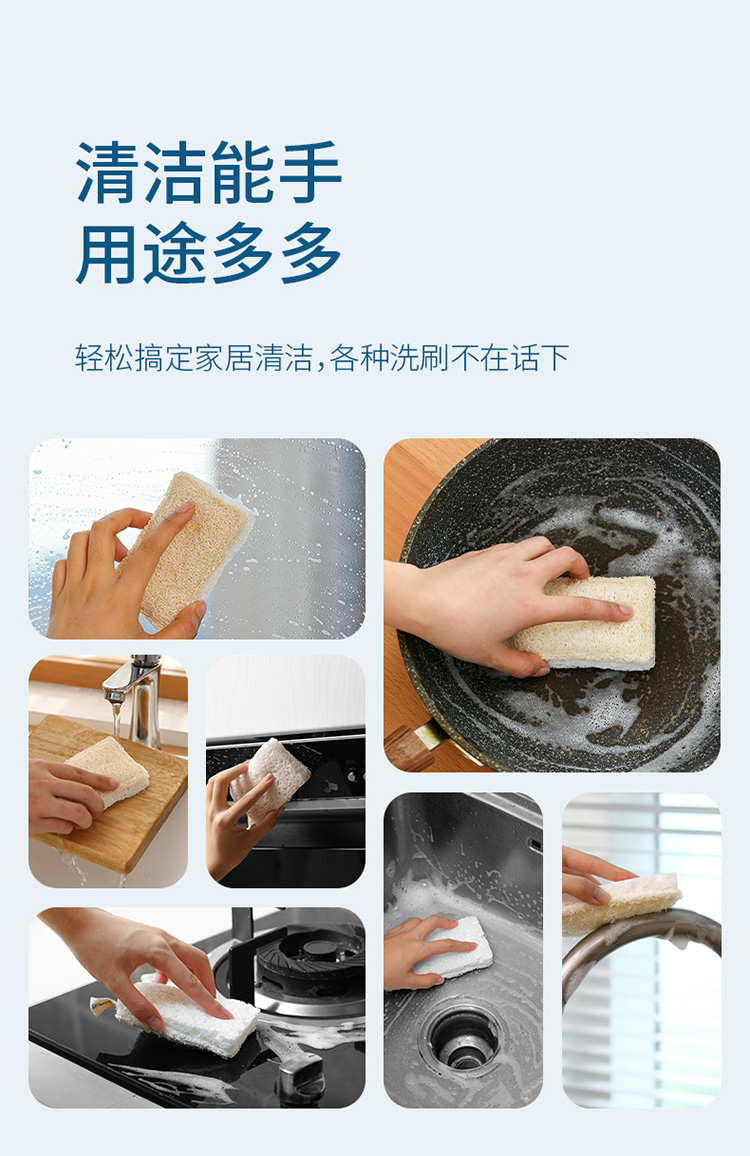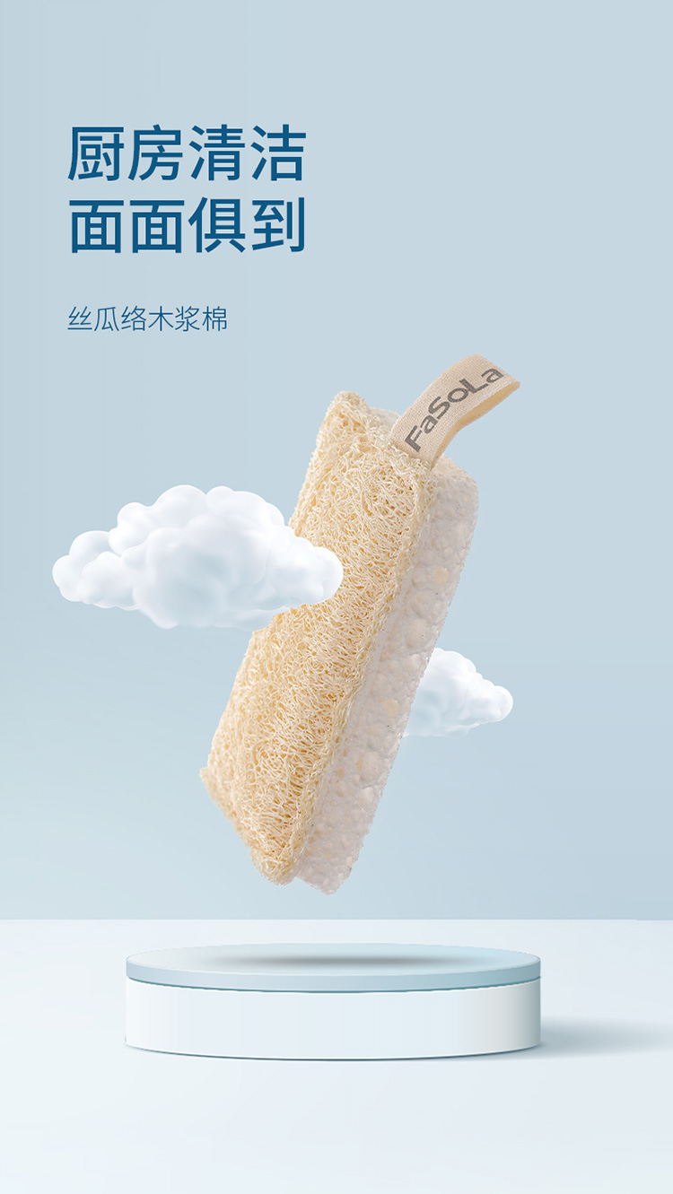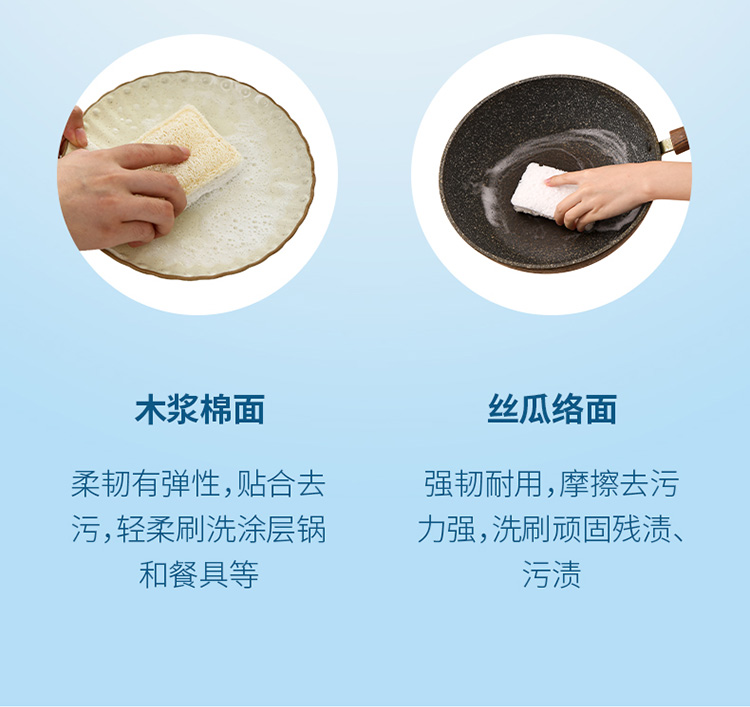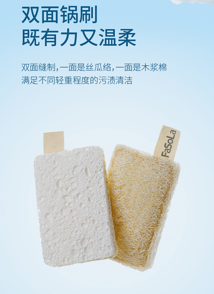 FaSoLa木浆棉天然丝瓜络洗碗布双面去污百洁布刷碗布家务清洁抹布