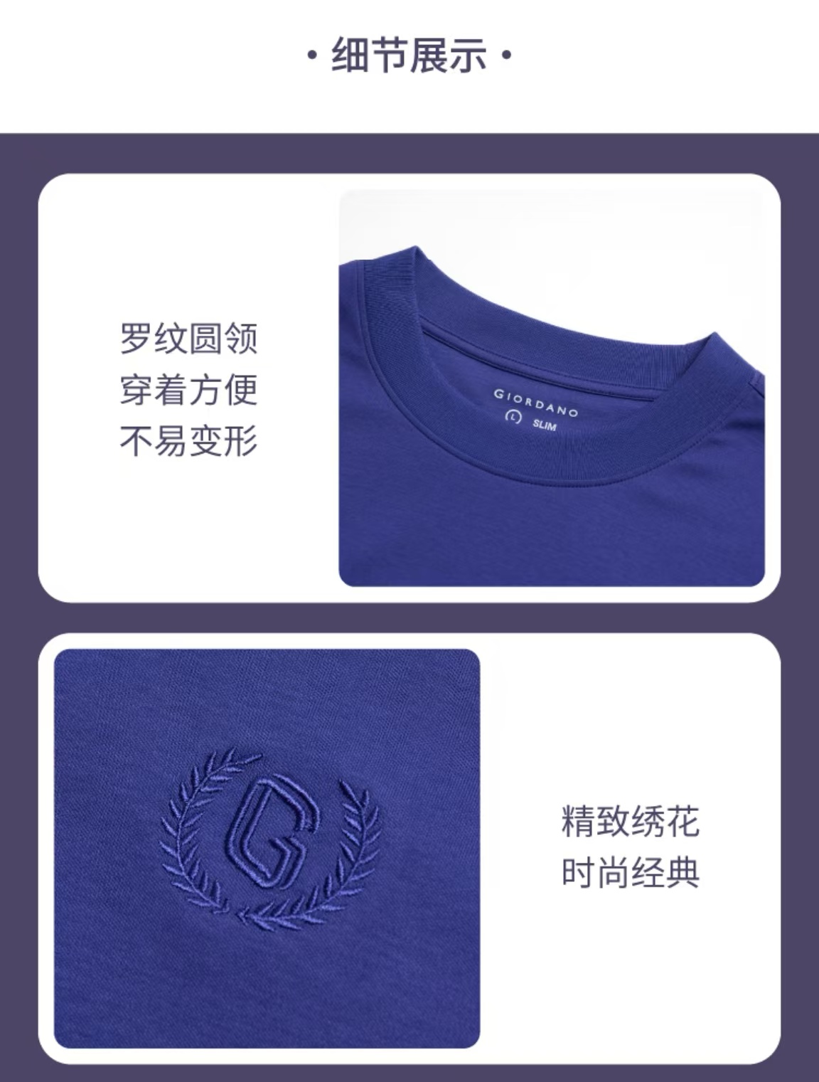 佐丹奴男装26年新款全棉液氨短袖T恤衫01026802