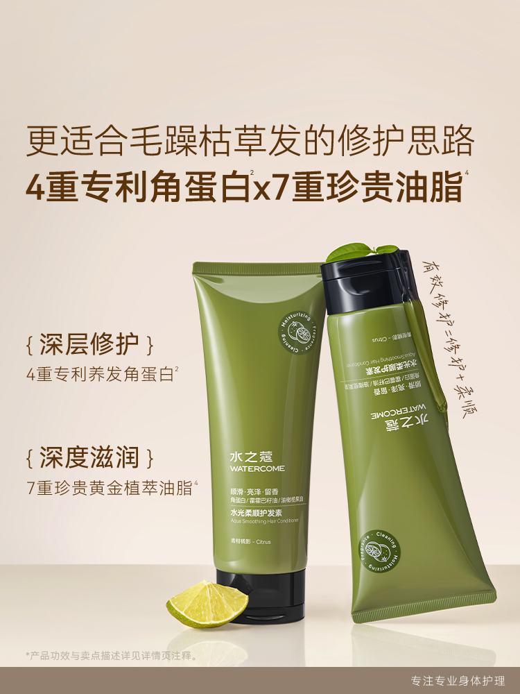 【多妈团购 水之蔻水光柔顺护发素】4重角蛋白+7重黄金植物精油,给头发喂饱营养,根根柔亮有光泽,青柠柑橘香调,被丝绸包裹一样顺滑-乐果村