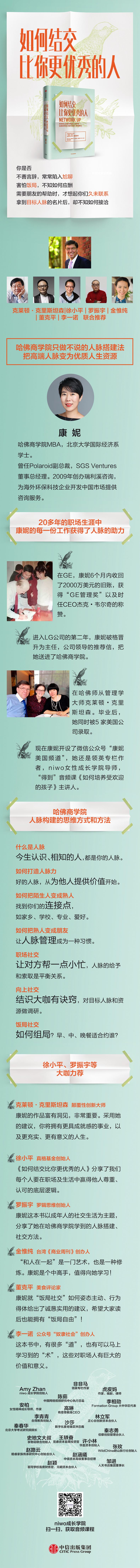 《如何结交比你更的人》作者康妮凭借高超的人脉力,从哈佛商学院毕业后,同时被5家美国公司录取。在20多年的职场生涯里,人脉对她的每一份工作产生了重大作用。