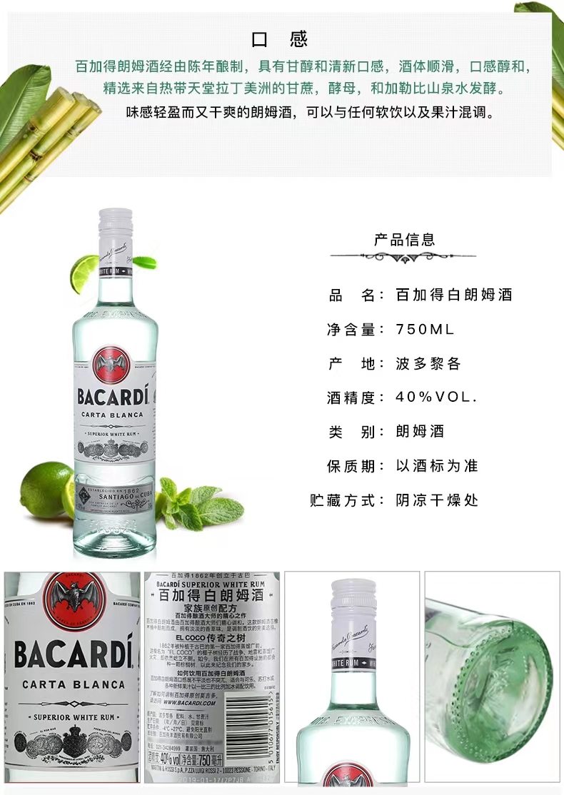 百加得白朗姆酒 750ml