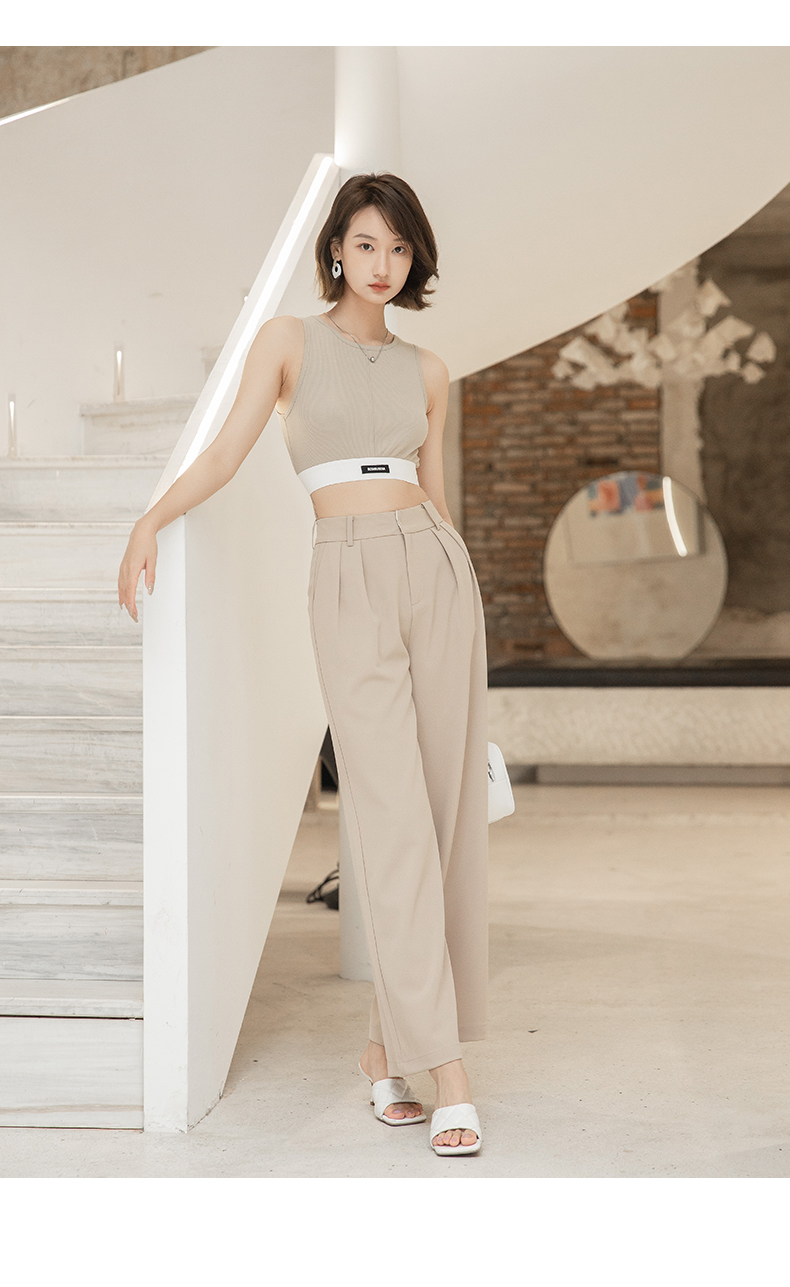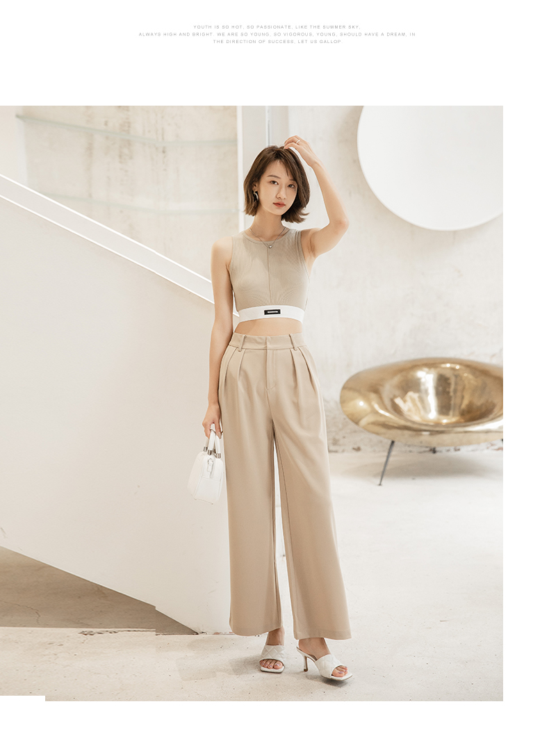 oldcolour秋季新款开叉微喇通勤风显瘦高腰直筒长裤女P340703A1