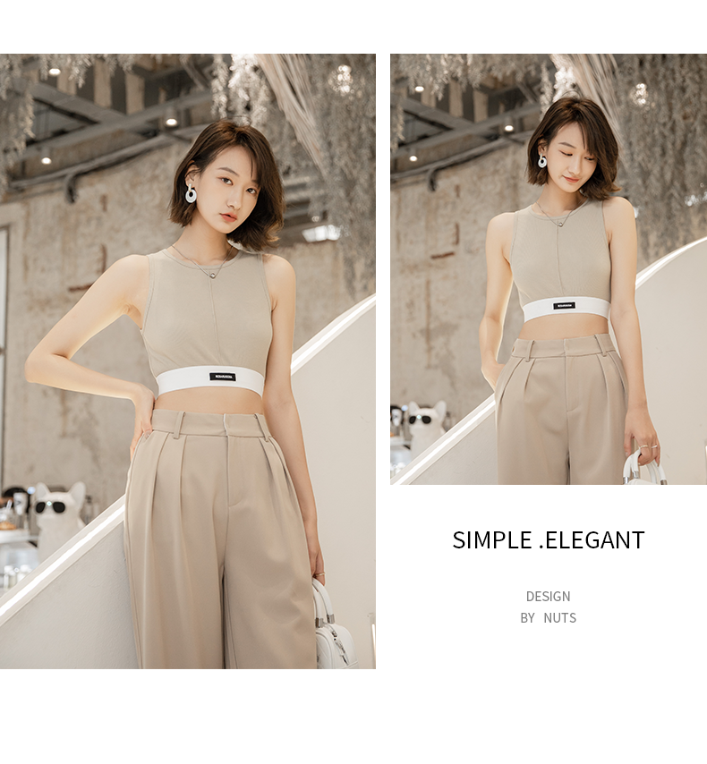 oldcolour欧珂夏季纯色抽绳弹力松紧腰休闲阔腿裤女P25073107