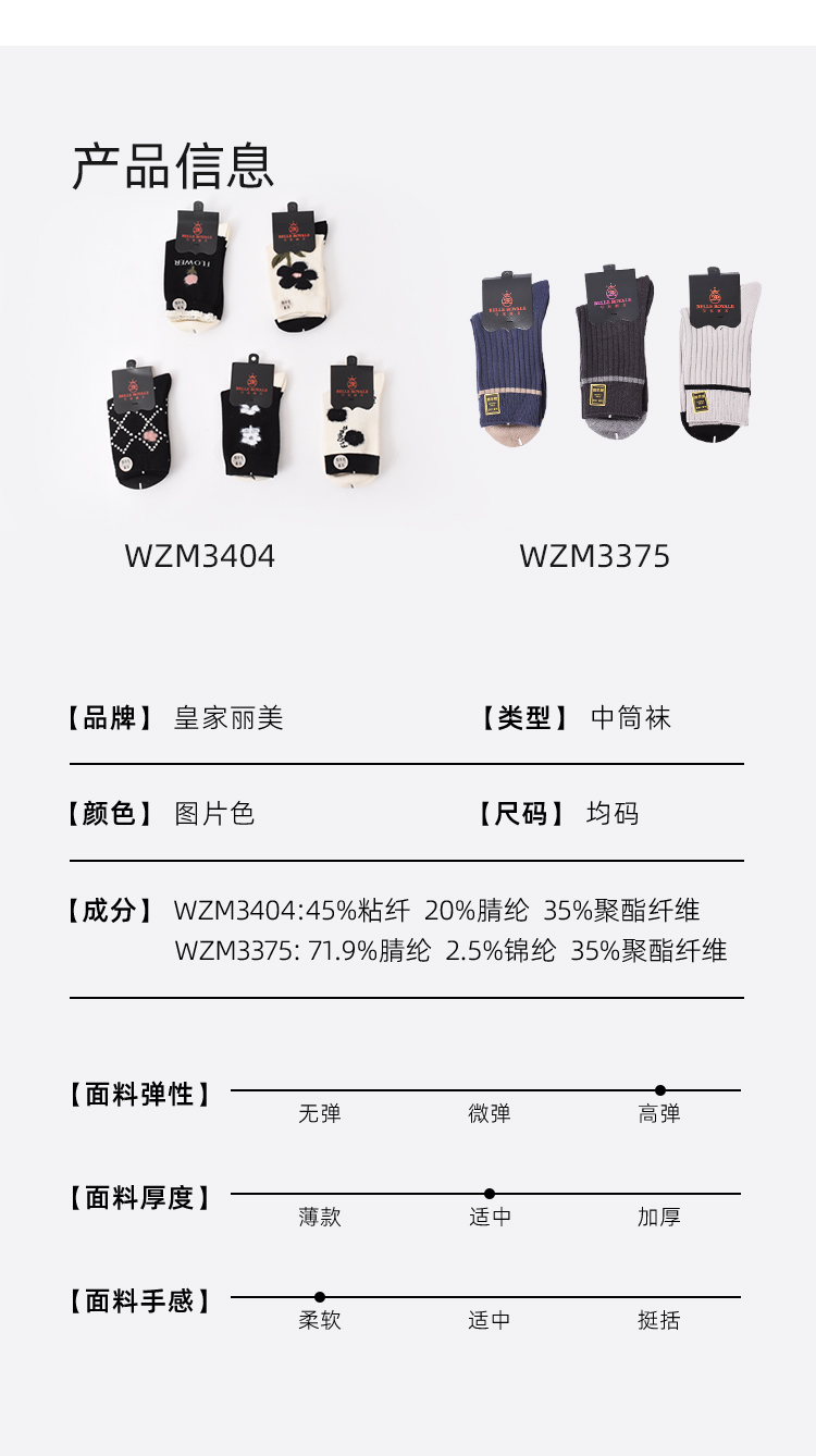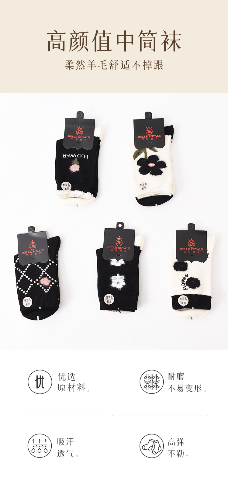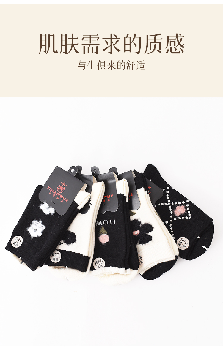 【数量拍5】羊绒袜子男中筒冬季秋冬款水貂毛花朵女款羊毛秋冬中筒袜WZM3404/3375