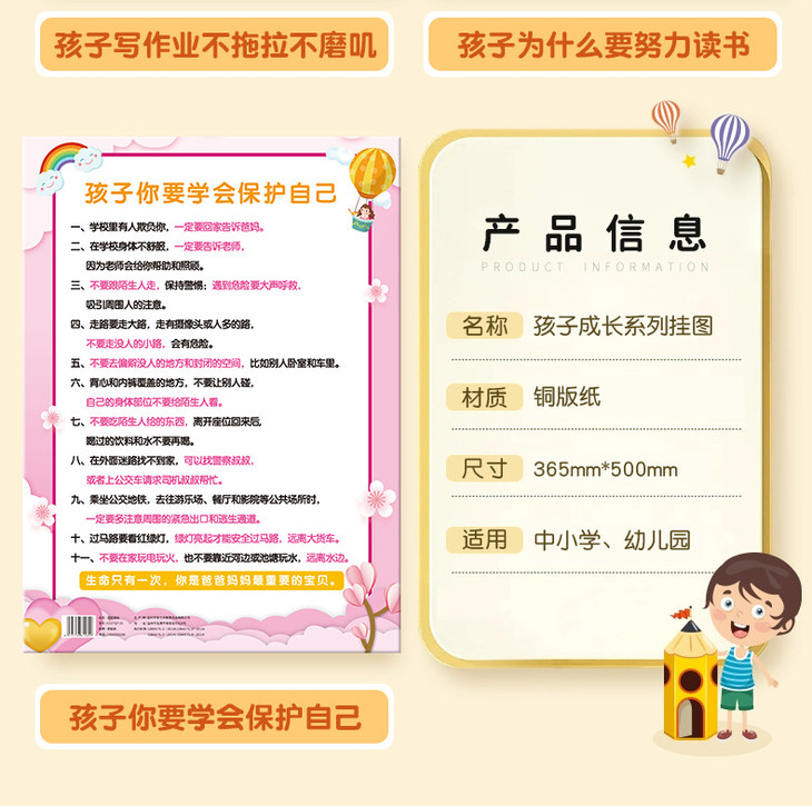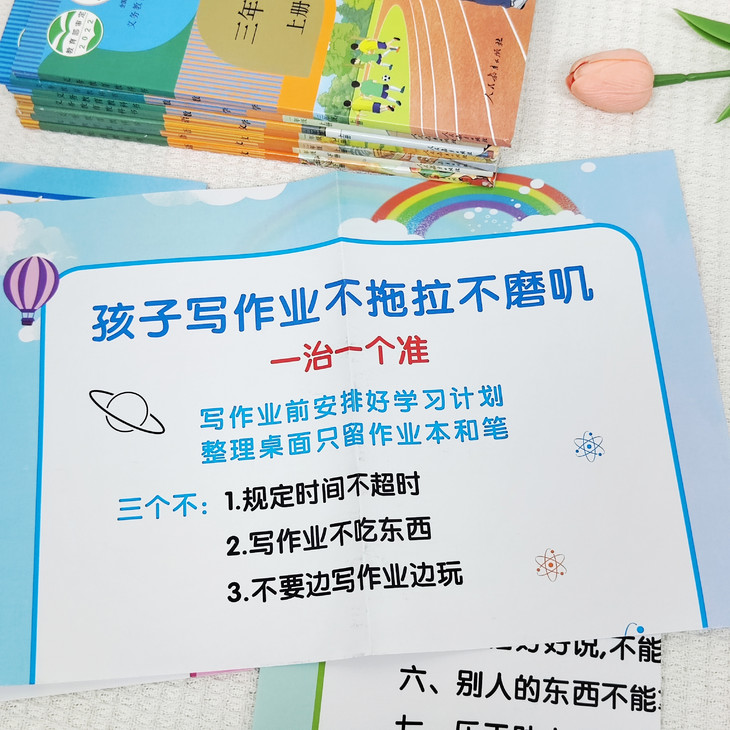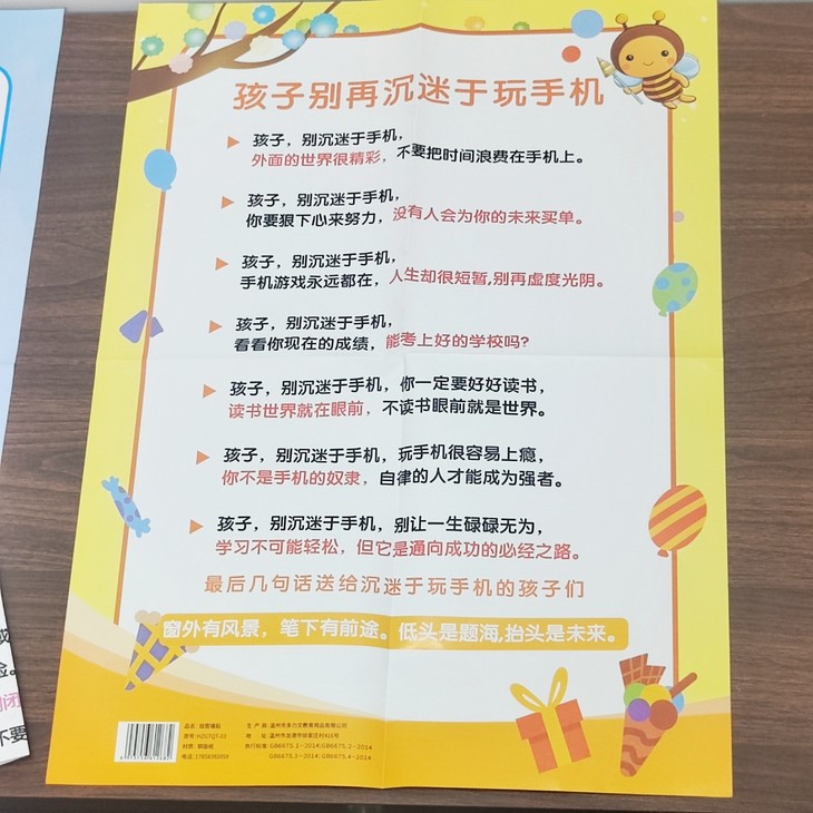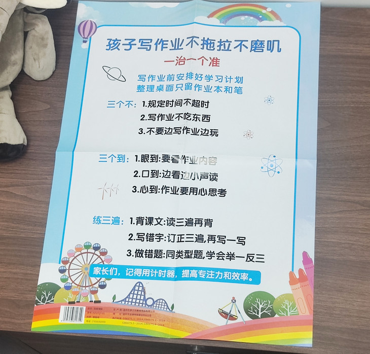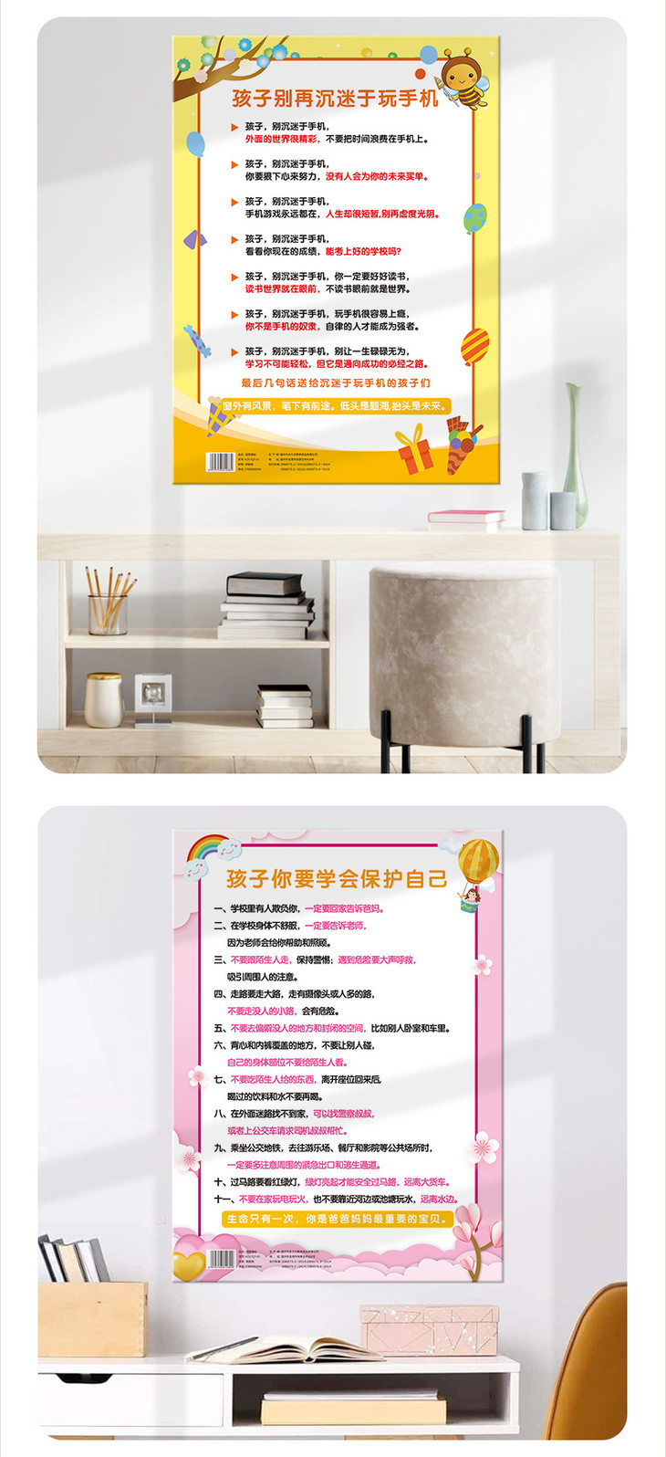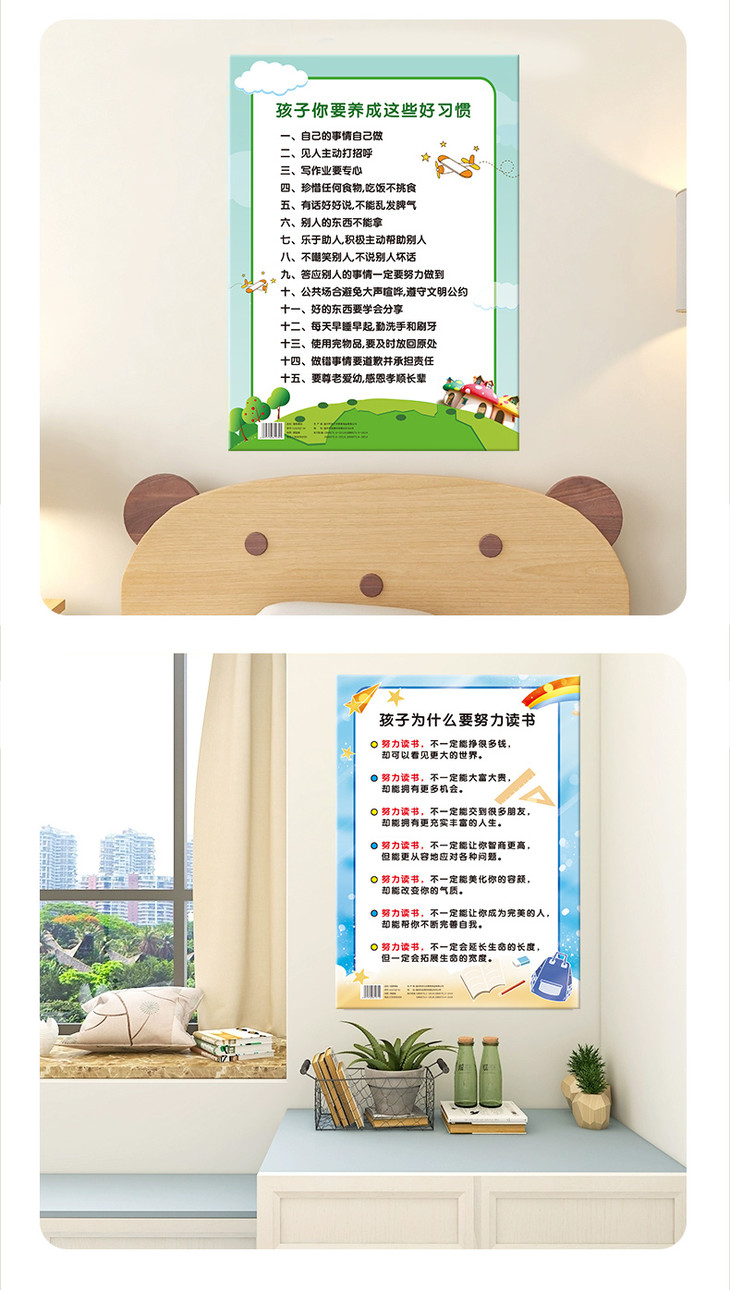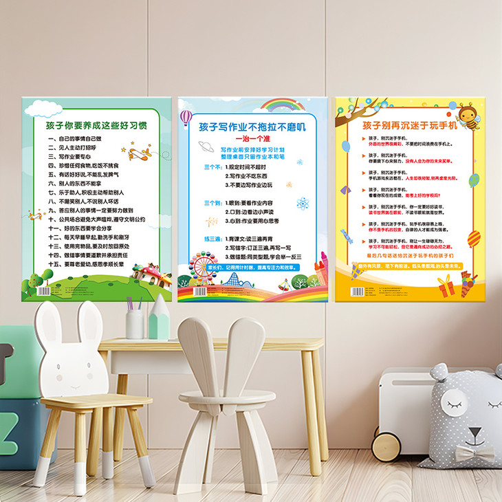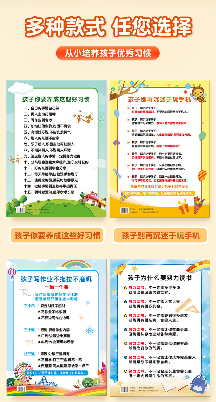 ✨挂图上有各种好习惯,不要沉迷手机,写作业不要拖拉,为什么要努力读书