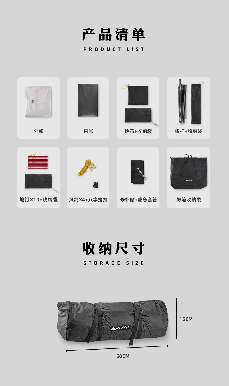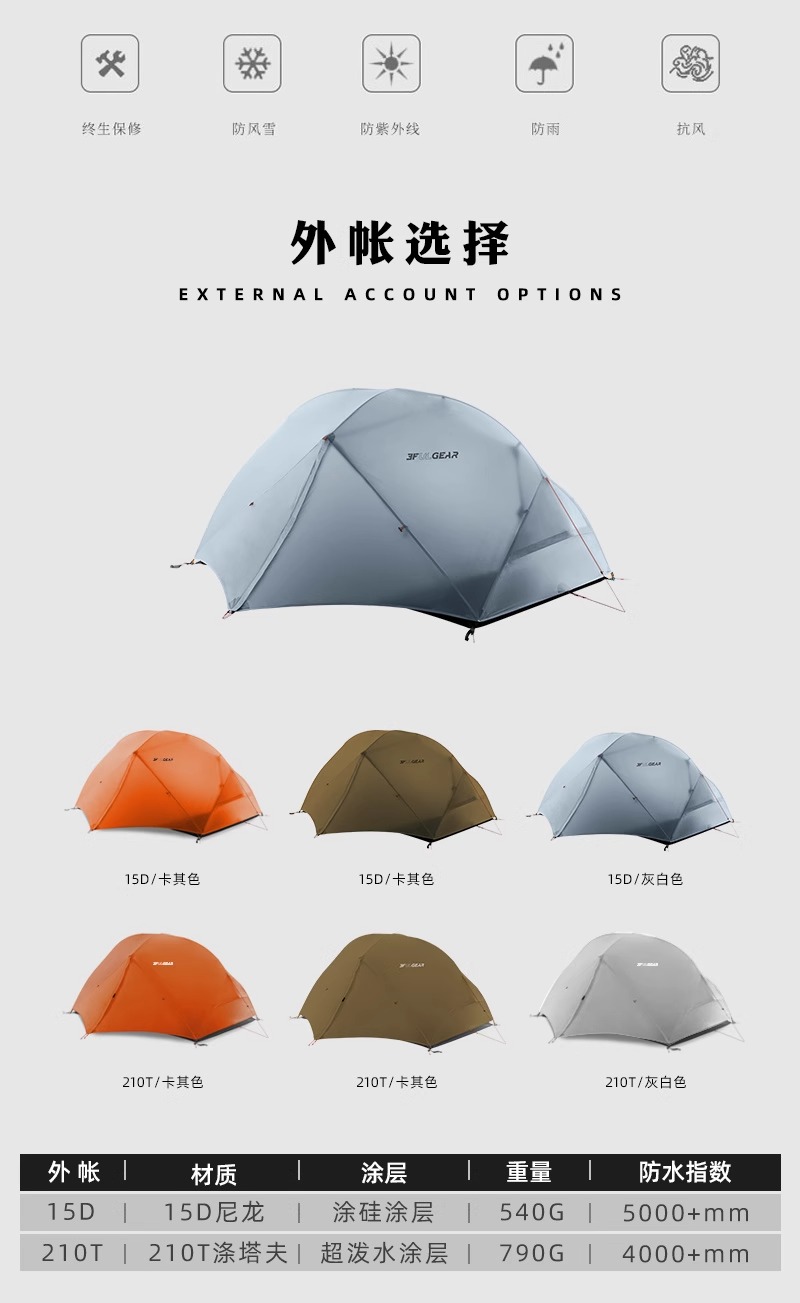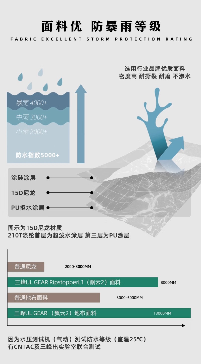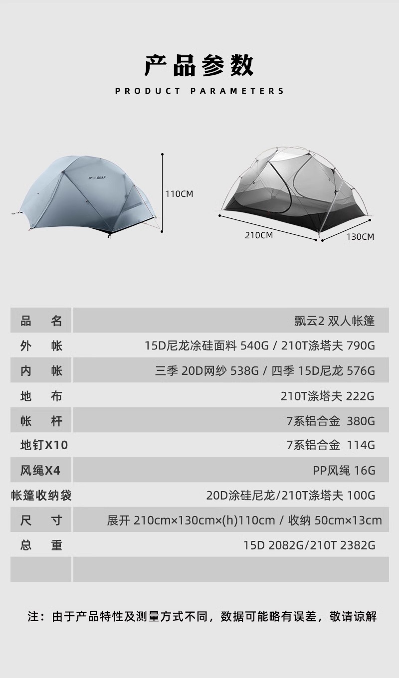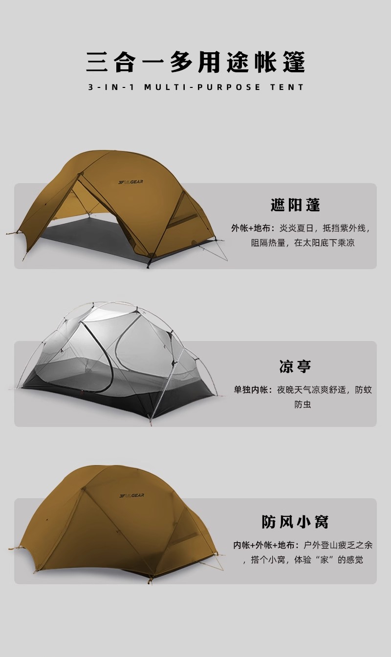 【特价】三峰出飘云2 15D涂硅/210T涂榙夫款双人三季四季帐篷超轻防雨抗风