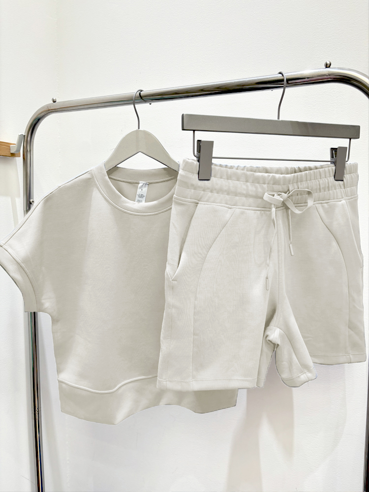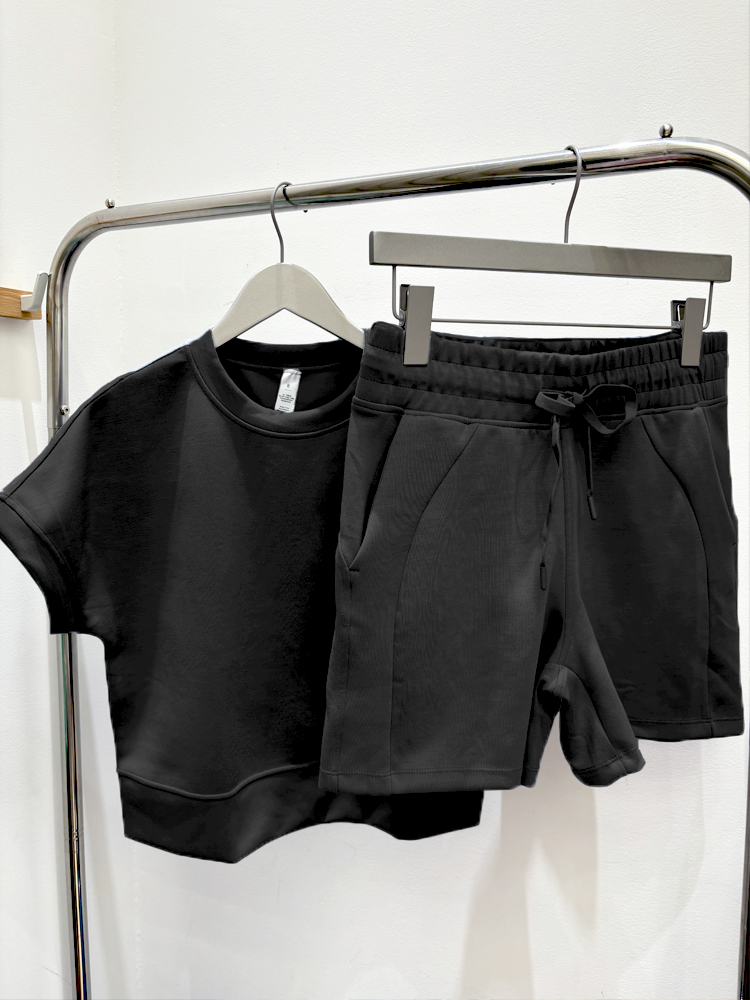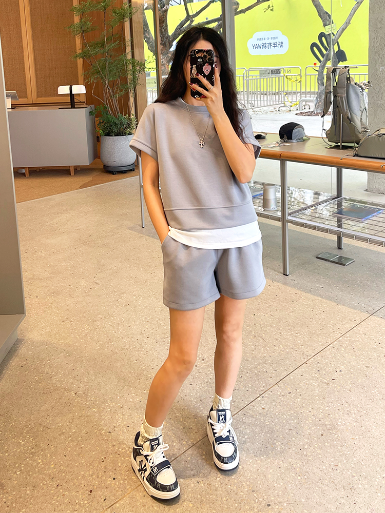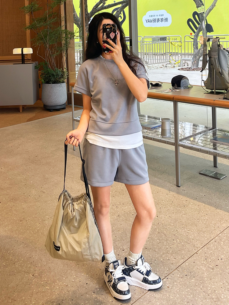 哈瓦塔砂洗(宽松)圆领宽松运落肩短袖H350101+宽松高腰运动短裤H351104