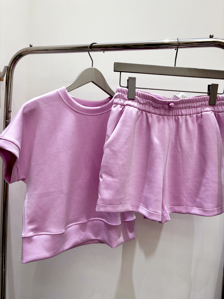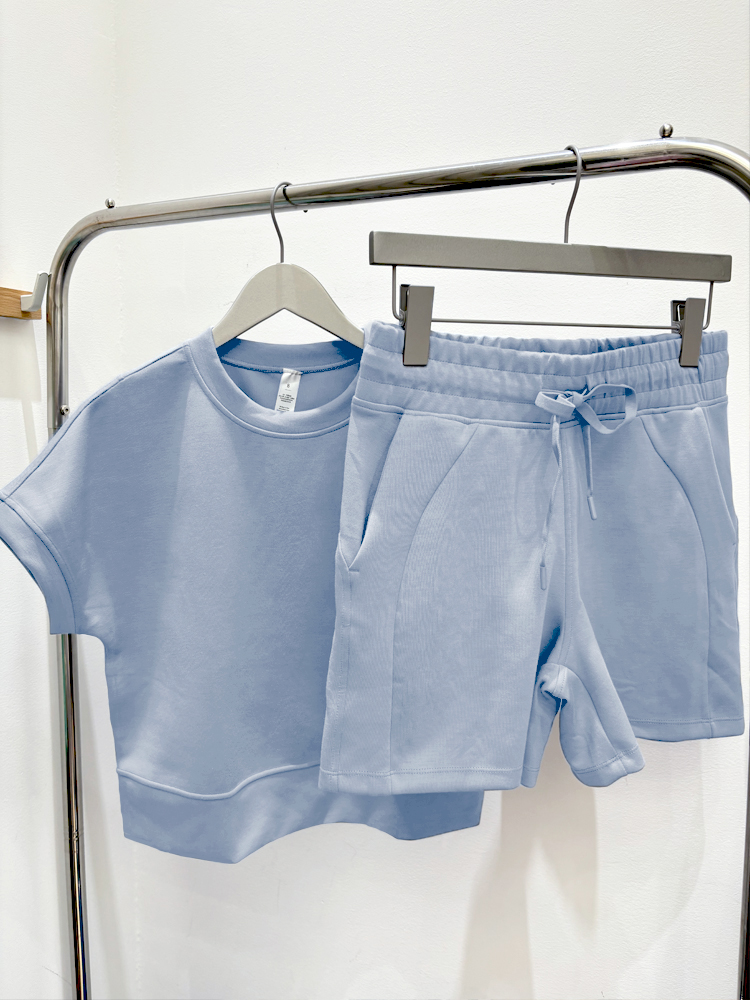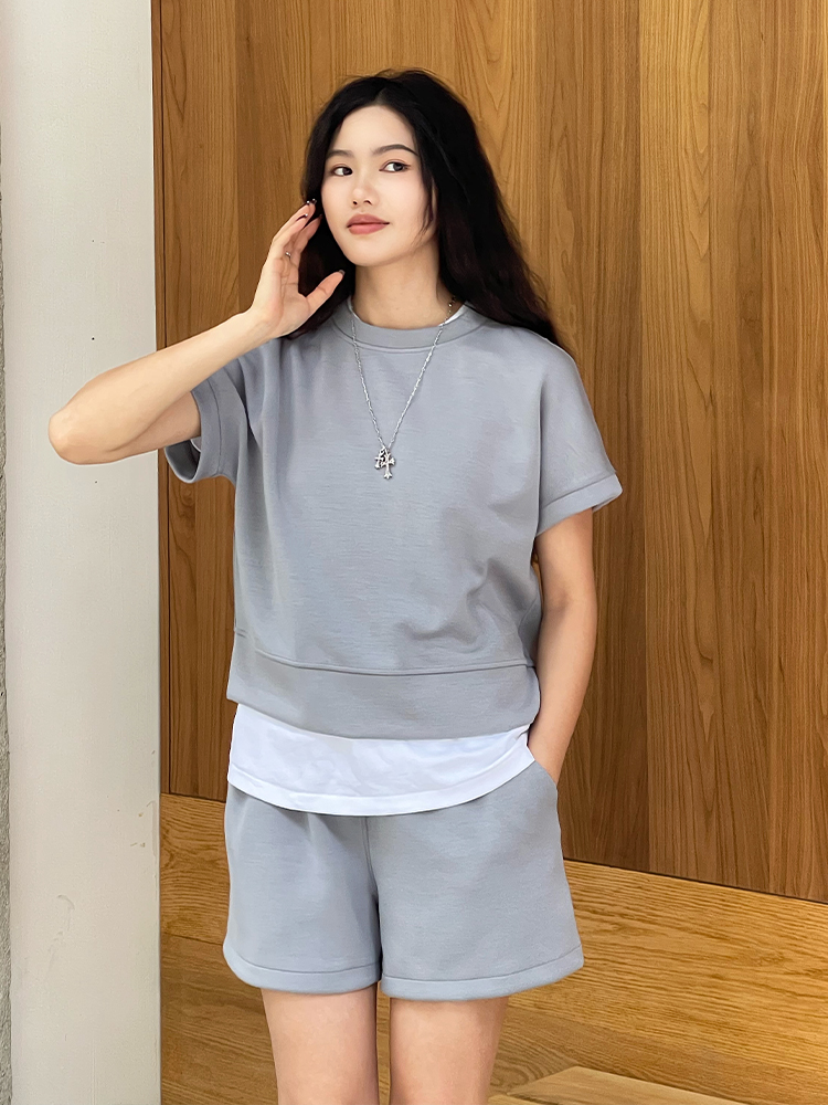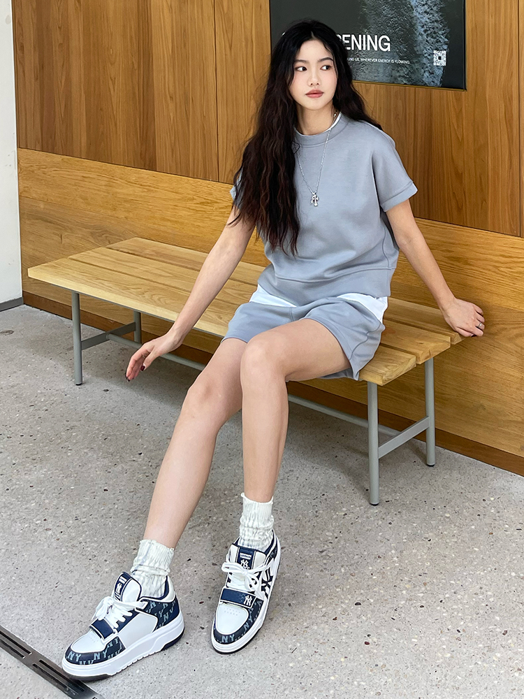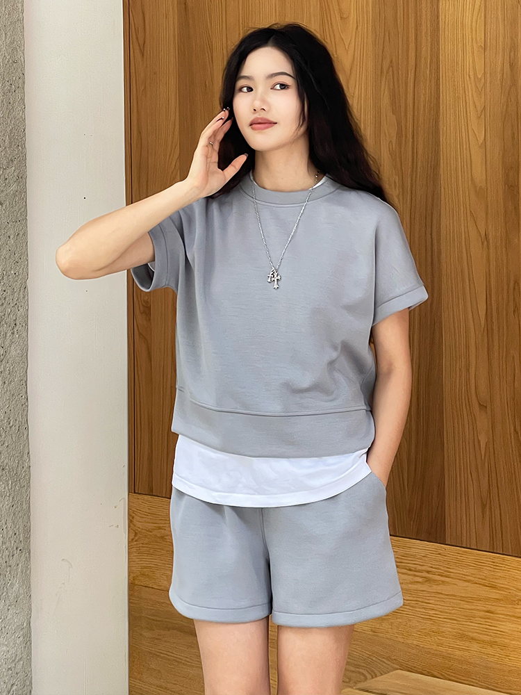 哈瓦塔砂洗(宽松)圆领宽松运落肩短袖H350101+宽松高腰运动短裤H351104