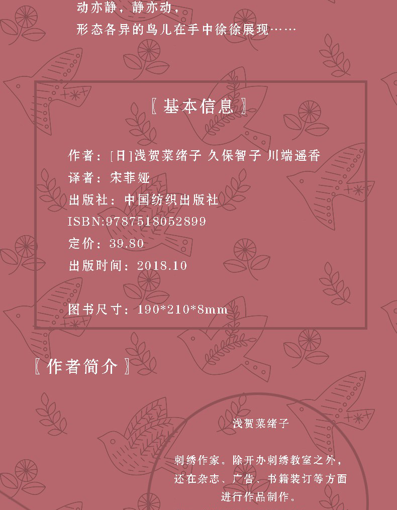 现货 鸟刺绣 浅贺菜绪子 2018年10月新书 #diy达人# 刺绣教程 刺绣书籍大全花样针法 绣花针 手工刺绣图案手工制作书籍diy布艺