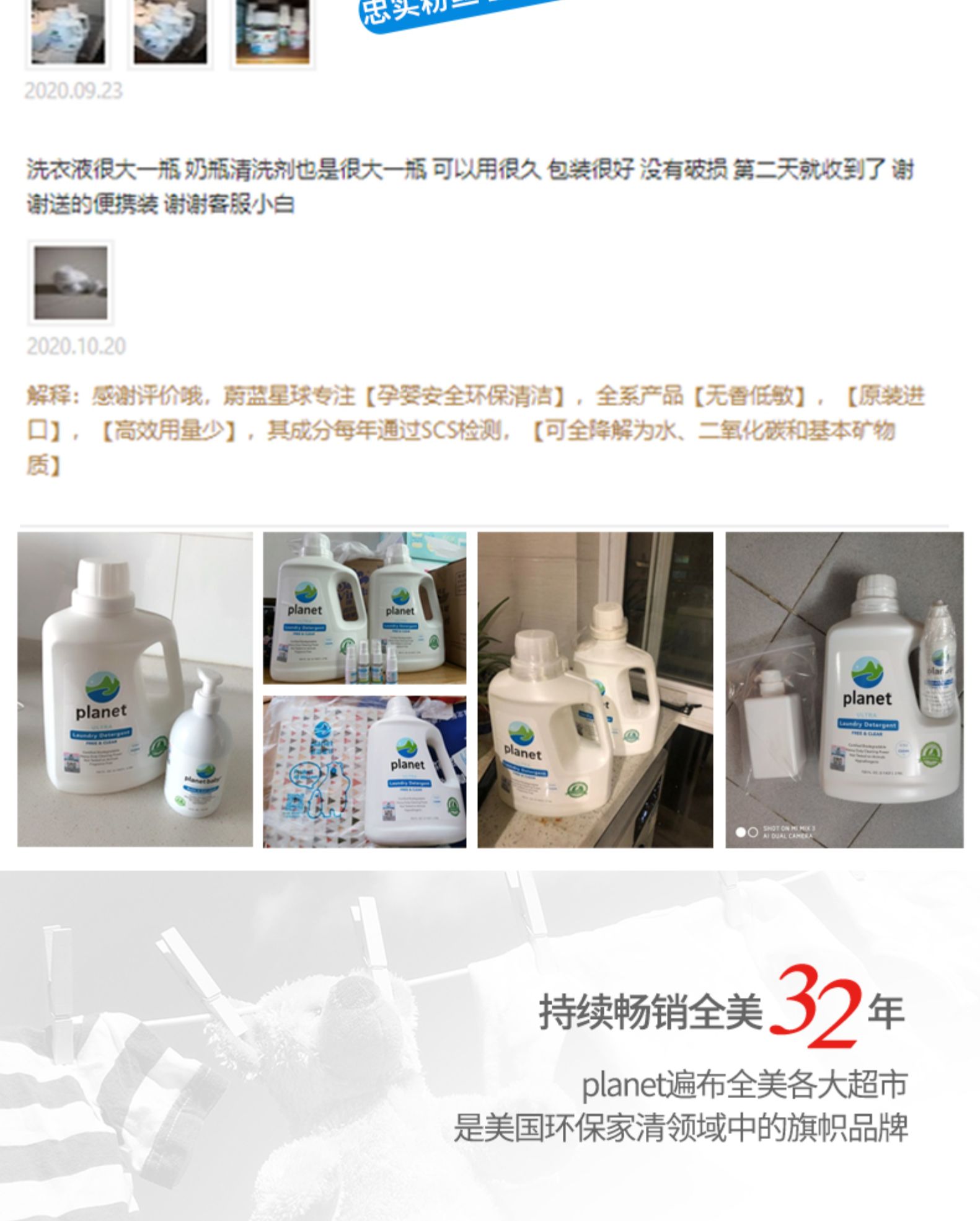 美国蔚蓝星球宝宝洗衣液孕妇专用洗衣液天然全降解低敏
