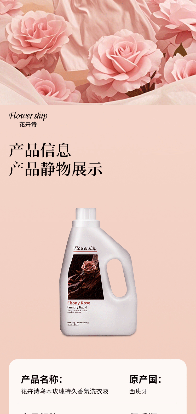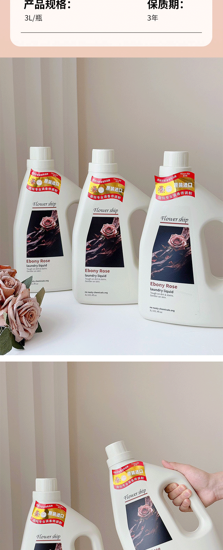 购买须知: 【名称】:花卉诗·乌木玫瑰香氛洗衣液【品牌】:花卉诗Flower ship 【产地】:西班牙 【规格】:3L 【包装】五层瓦楞纸+泡沫包装 【不发货地区】新疆,西藏 港澳台 【加收地区】:青海、宁夏、内蒙、海南、甘肃运费+7元 【保质期】:3年 【发货地】昆明/贵州 售后: 包装原样寄回,运费自理(如影响二次销售,不予售后!) ②售后以收到寄回商品没有问题为依据,麻烦用户小心包装,避免运输途中的损坏; ★★关于拒签/退回 ①客户签收地址/电话错误,无法联系上客户等顾客自身原因导致的快递退回,需重新补发或退款的,需扣除相关运费。 ★★关于签收售后 ①签收立即验货,有问题立即拍照取证申请售后(请保留内外包装、快递面单及实物,等待我们核实情况)。 ②如签收超7天售后的、无法提供照片等证据的,一律不处理理赔。 ★★其他事项说明 |