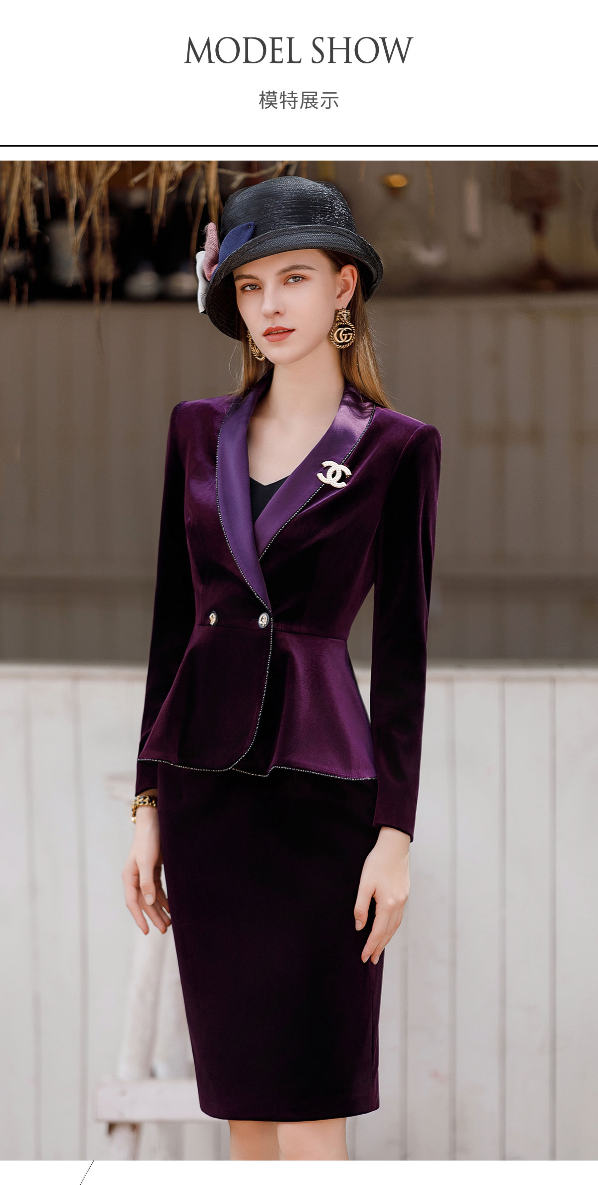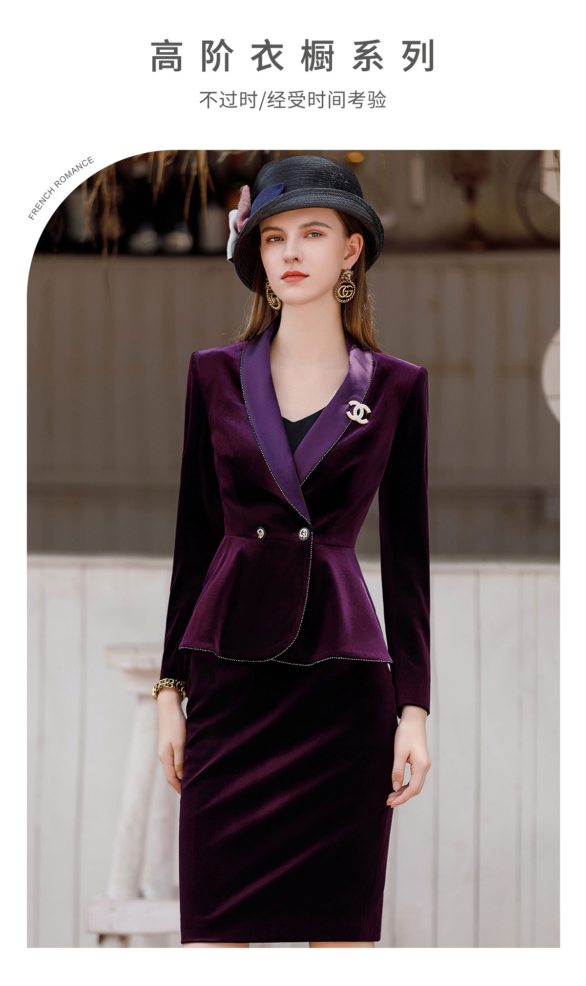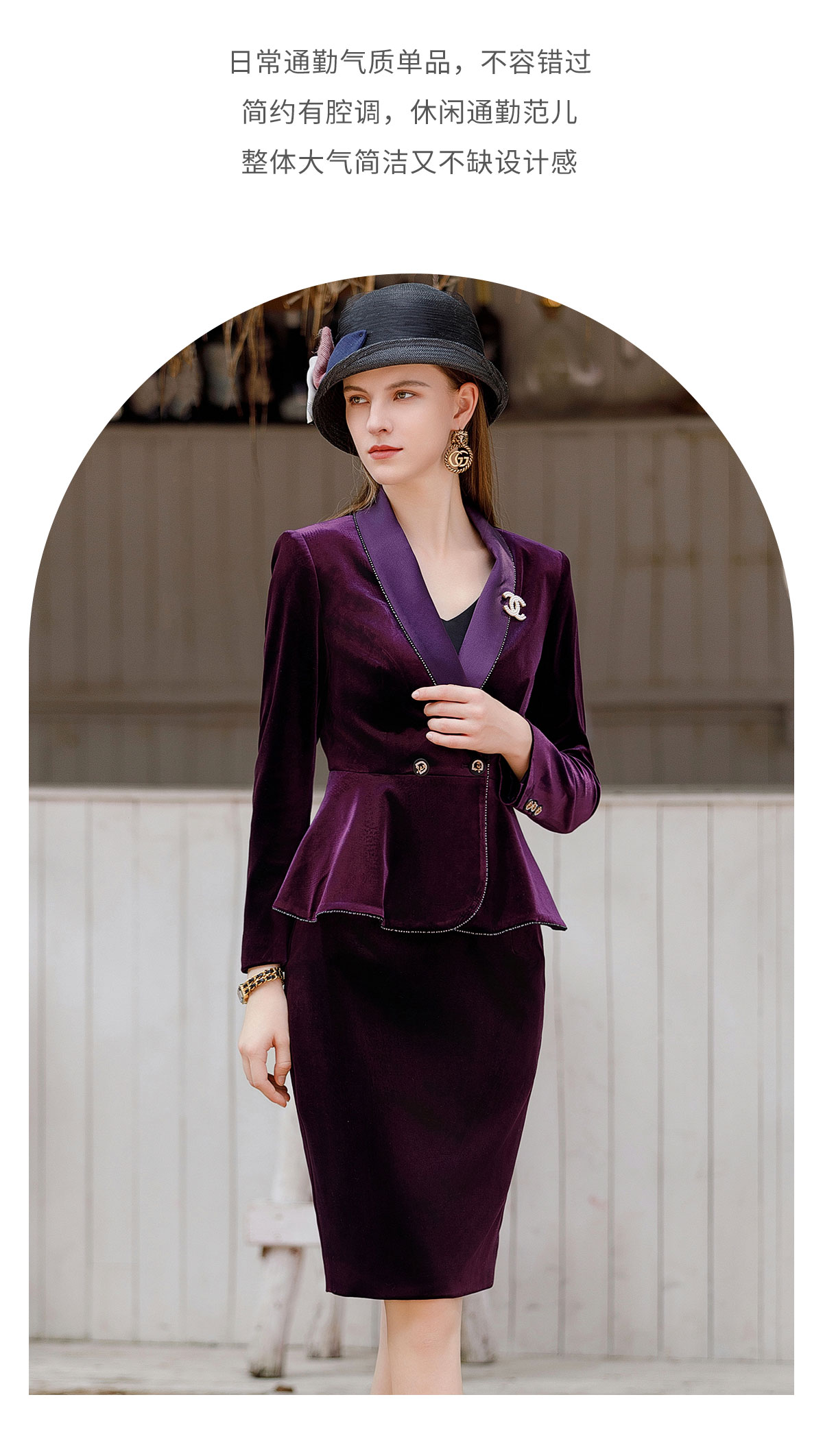 IWY/紫色秋冬丝绒西装套装女气质长袖工作服高级感职业装外套CS1900