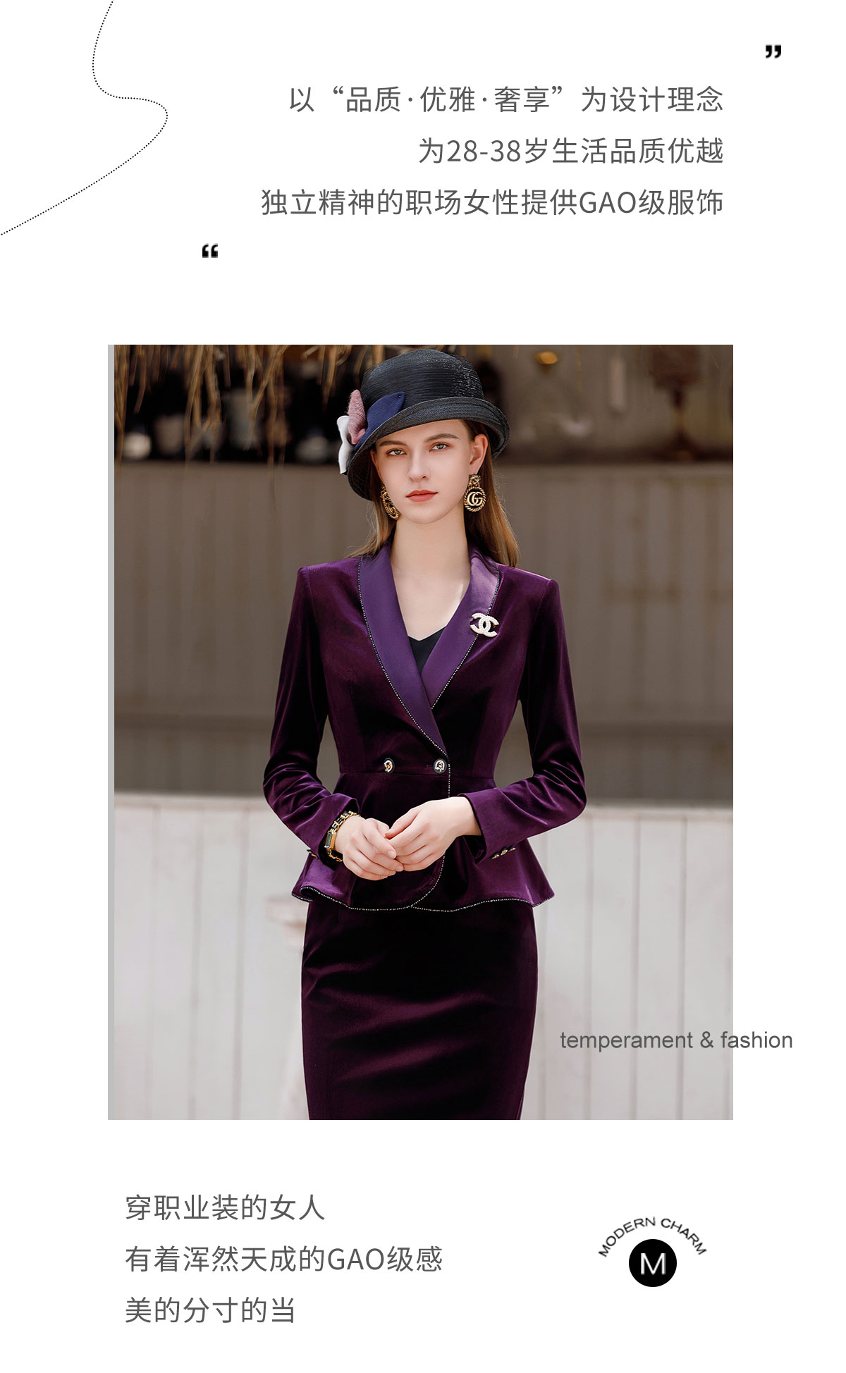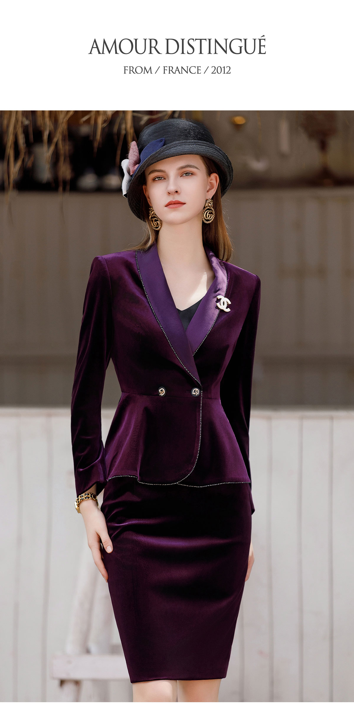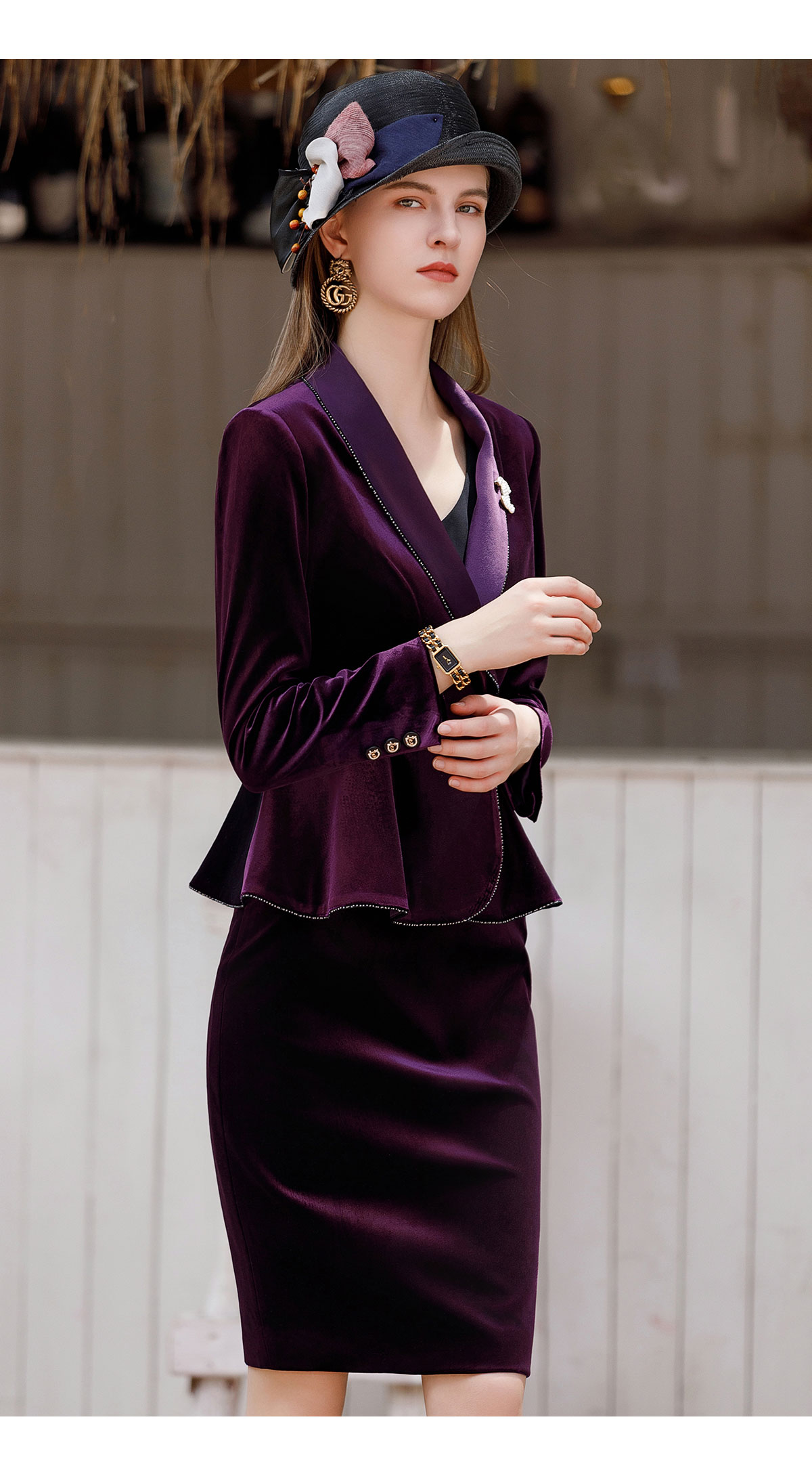 IWY/紫色秋冬丝绒西装套装女气质长袖工作服高级感职业装外套CS1900