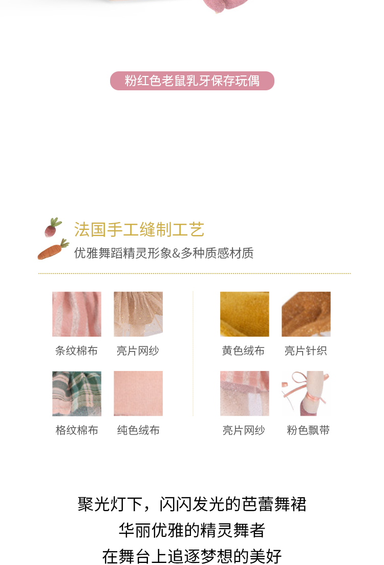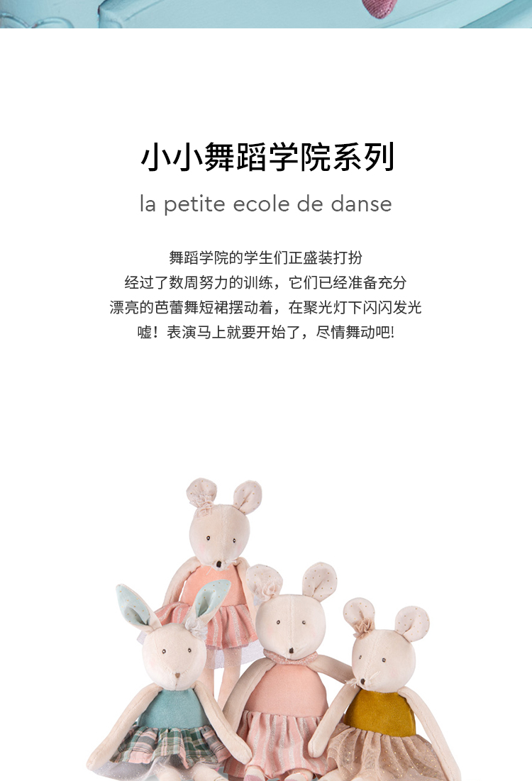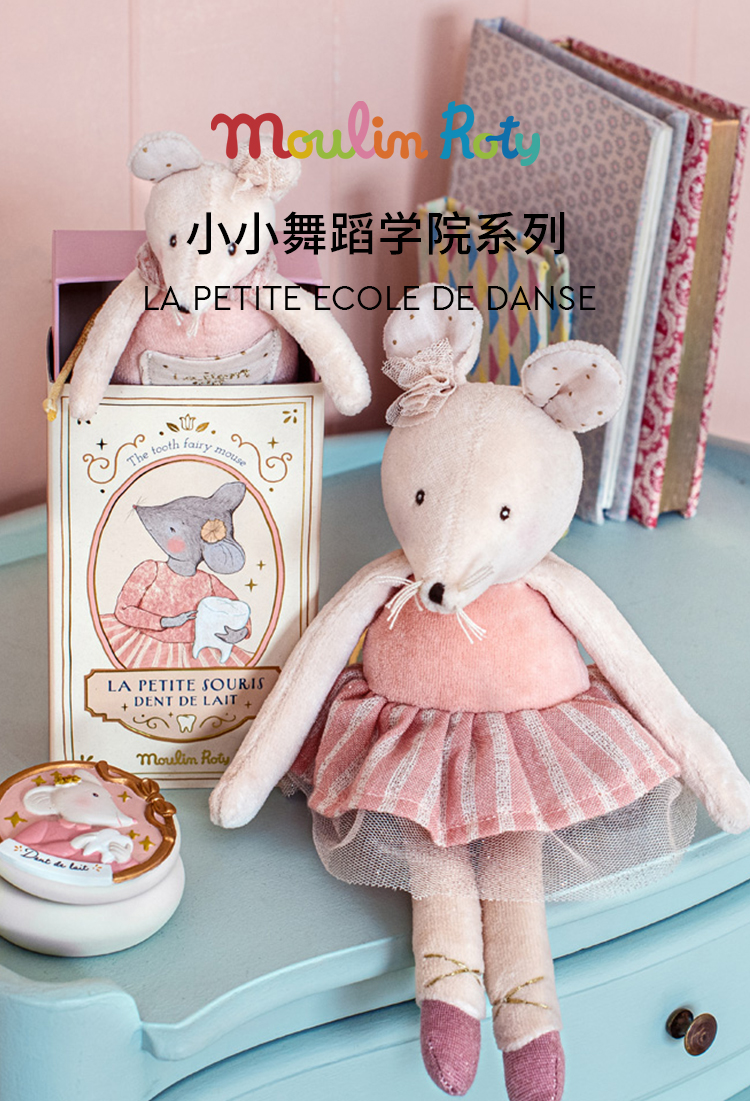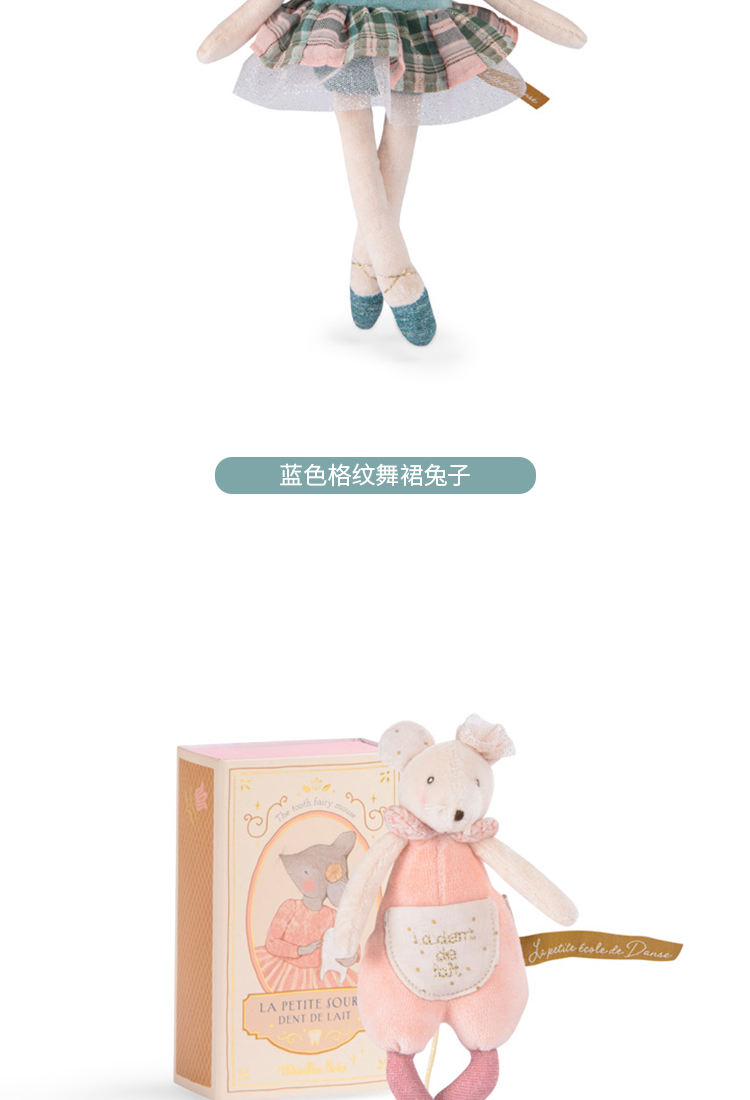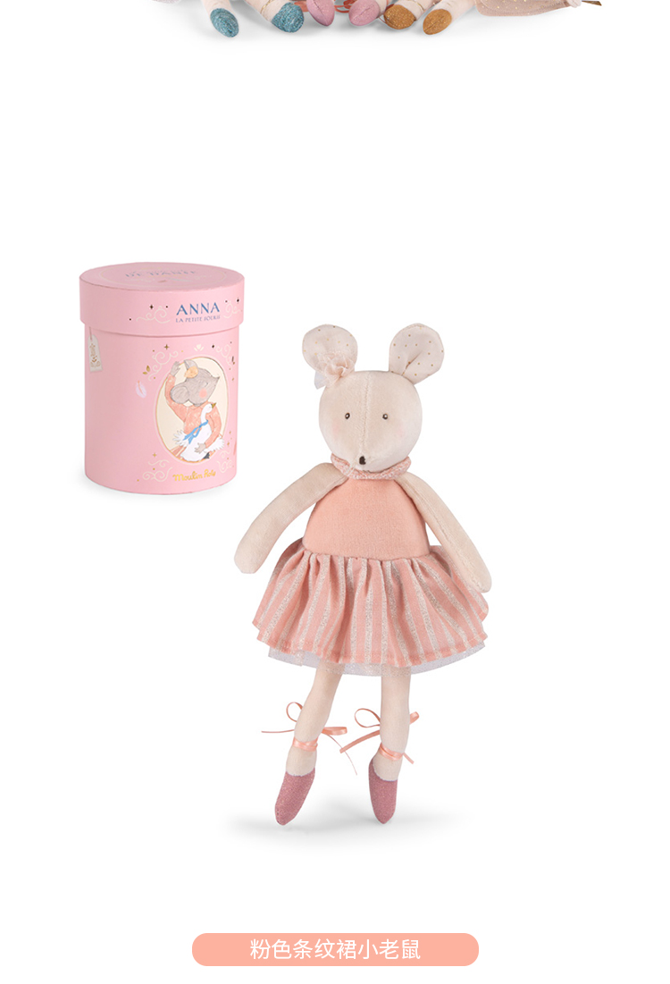 Moulin Roty 小小鼠粉色条纹裙 法式玩偶 适合0岁+ 精美装扮 手工缝制 小小舞蹈学院系列 法国品牌-667032