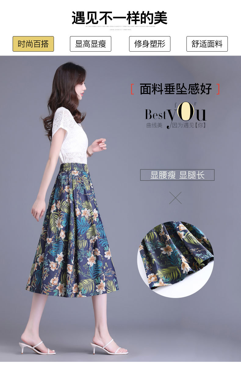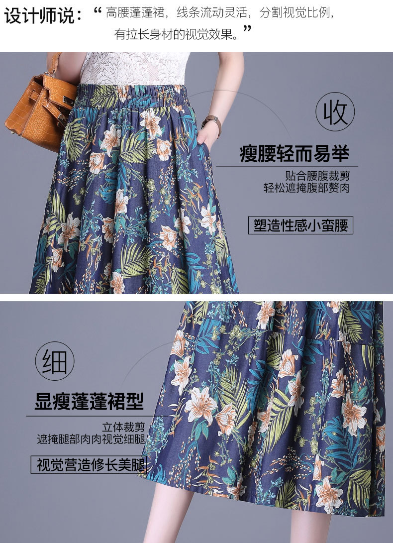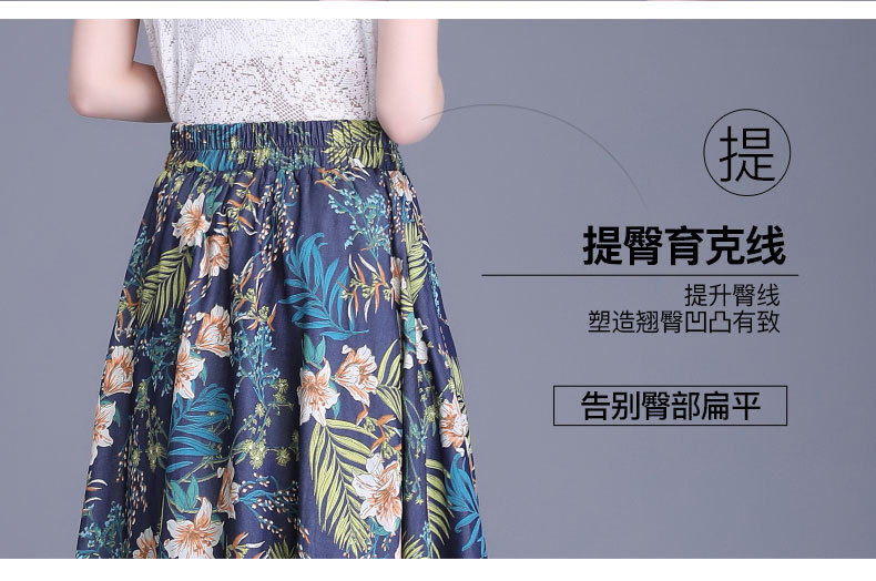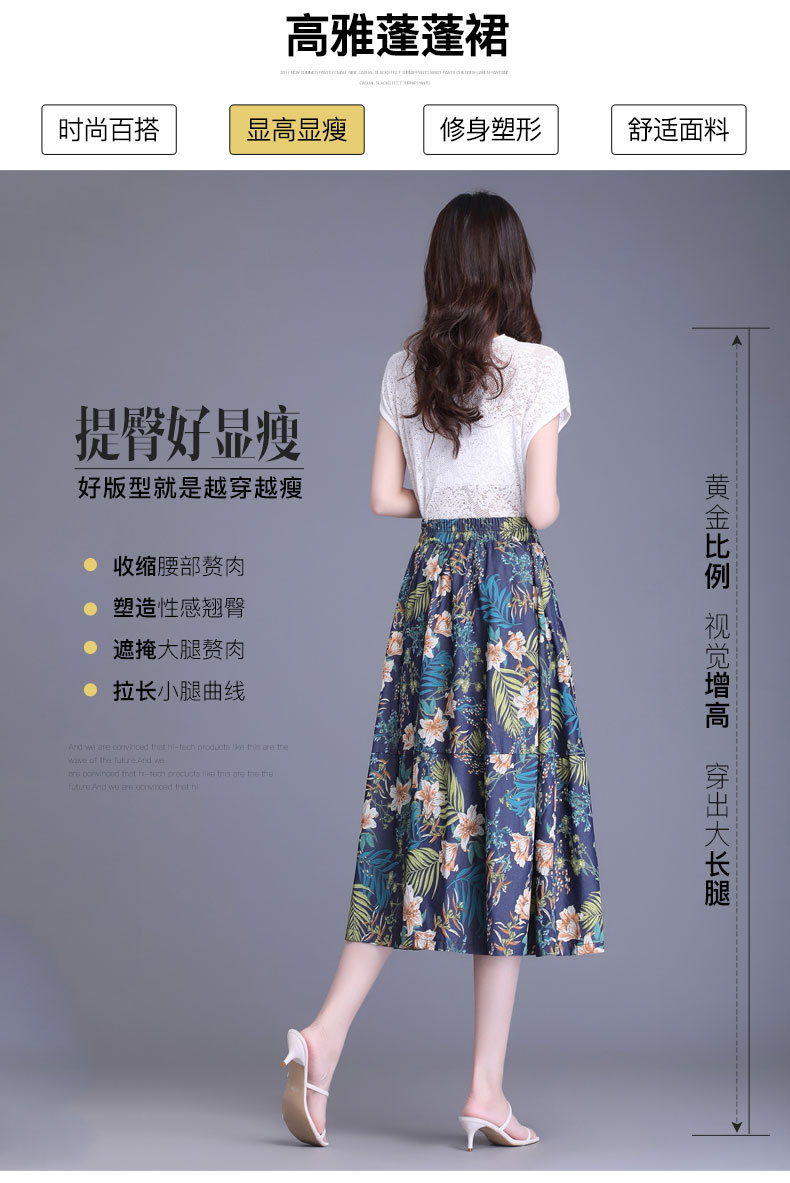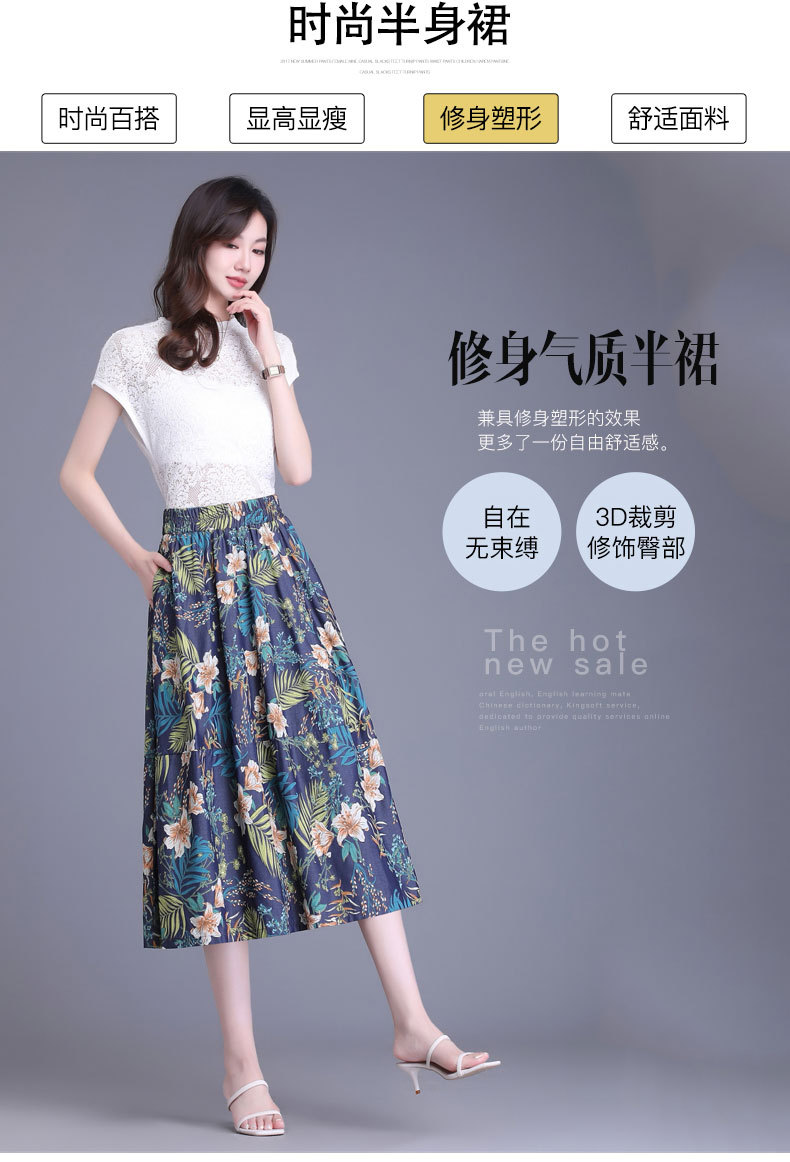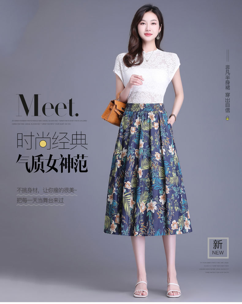 夏款时尚,中长款印花百褶裙松紧腰修身气质半身裙休闲裙MYX-1659-L