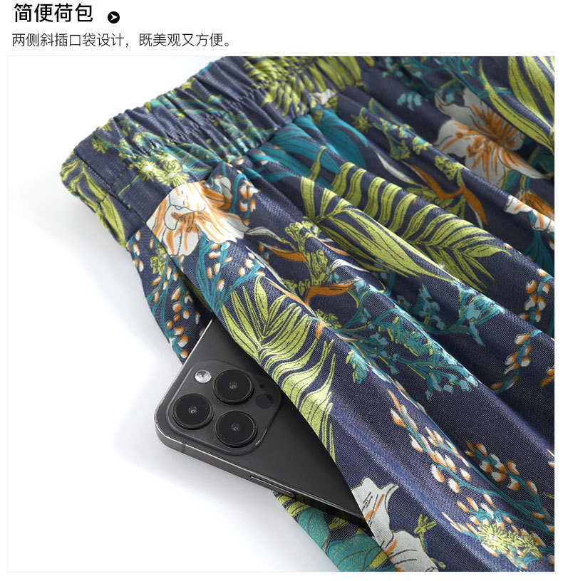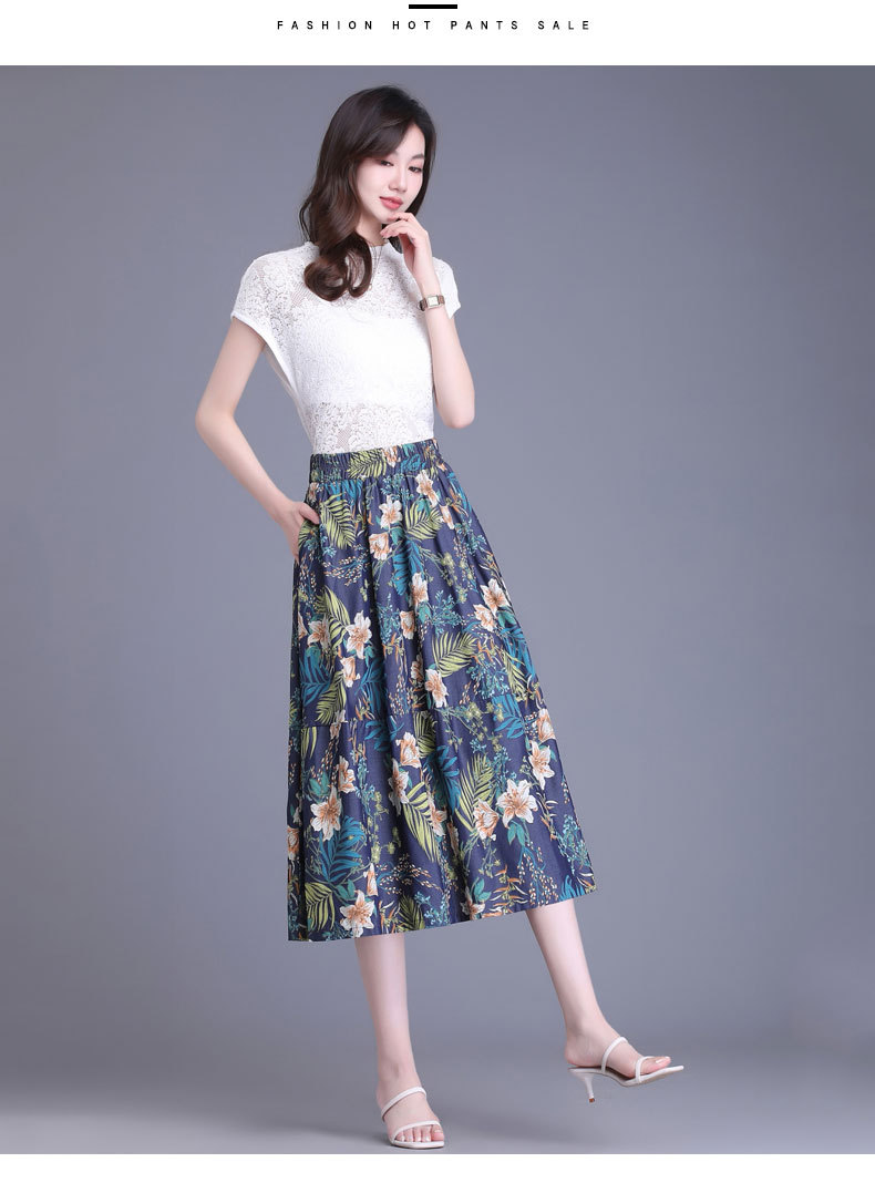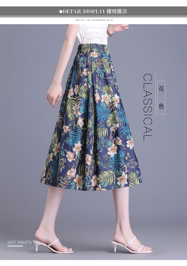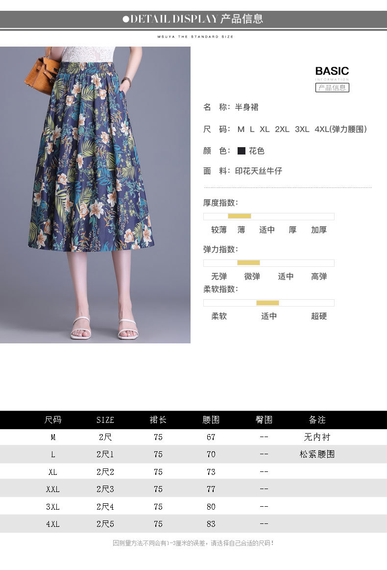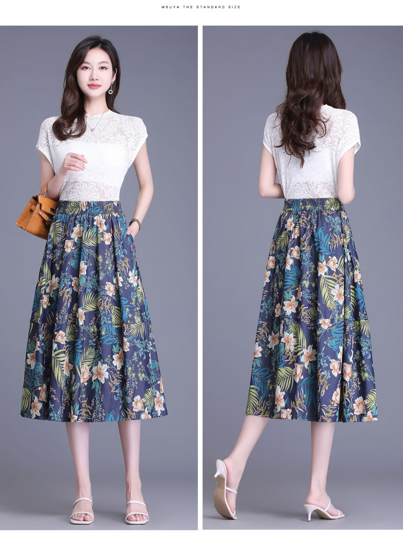 夏款时尚,中长款印花百褶裙松紧腰修身气质半身裙休闲裙MYX-1659-L