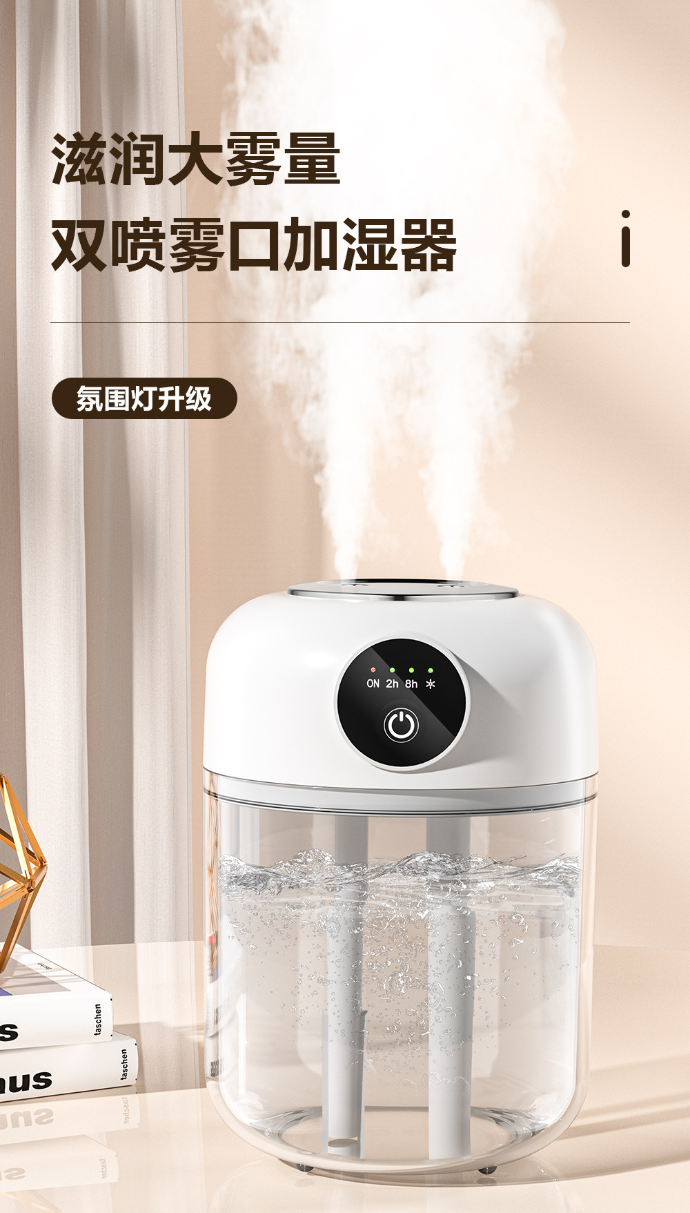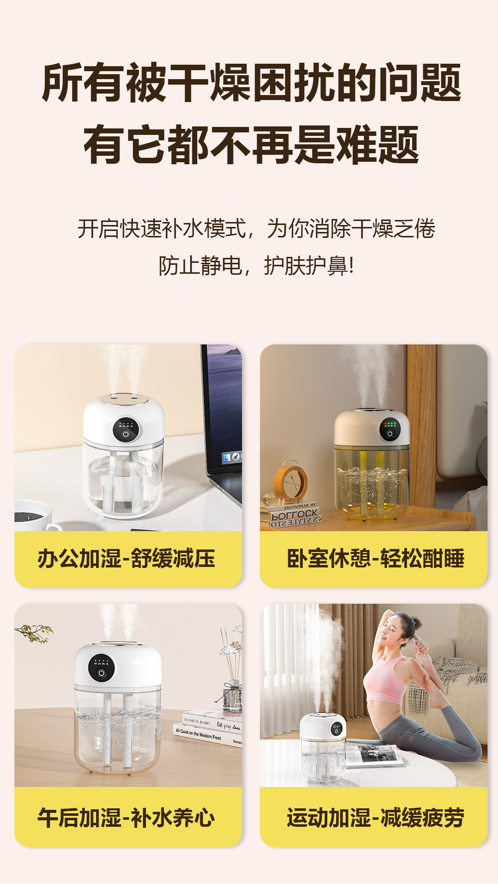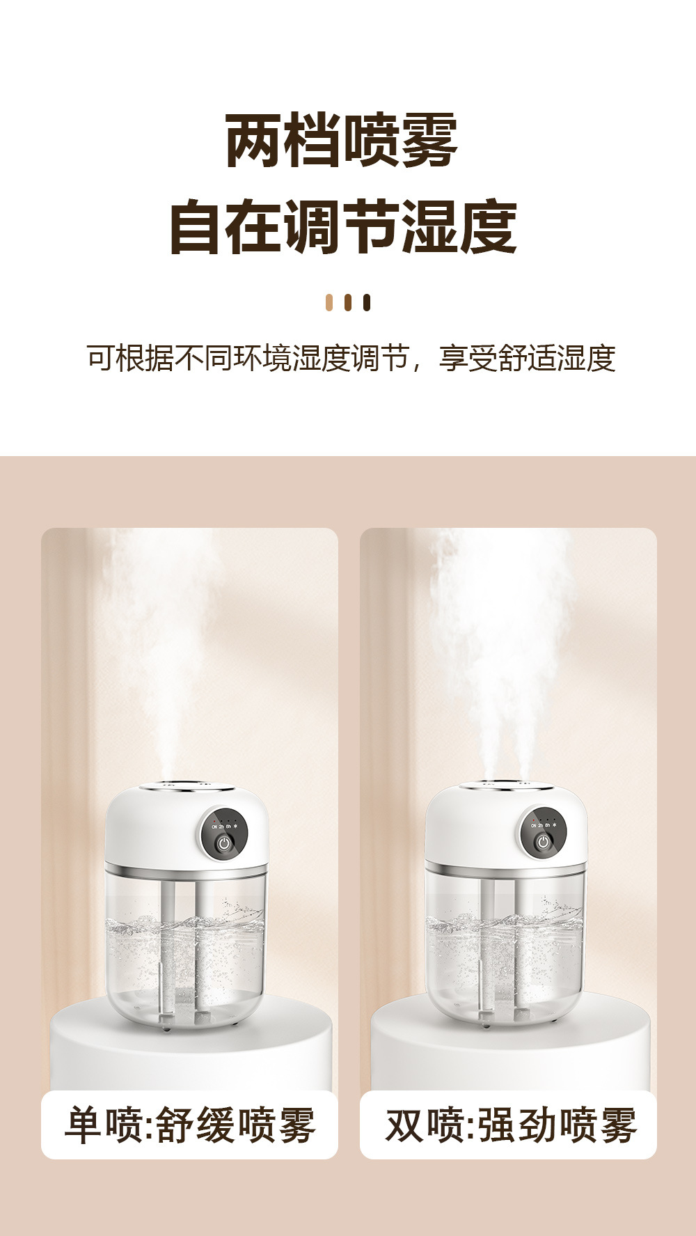 【新款双喷加湿器USB】便捷桌面家用办公室卧室 大容量补水空气净化器