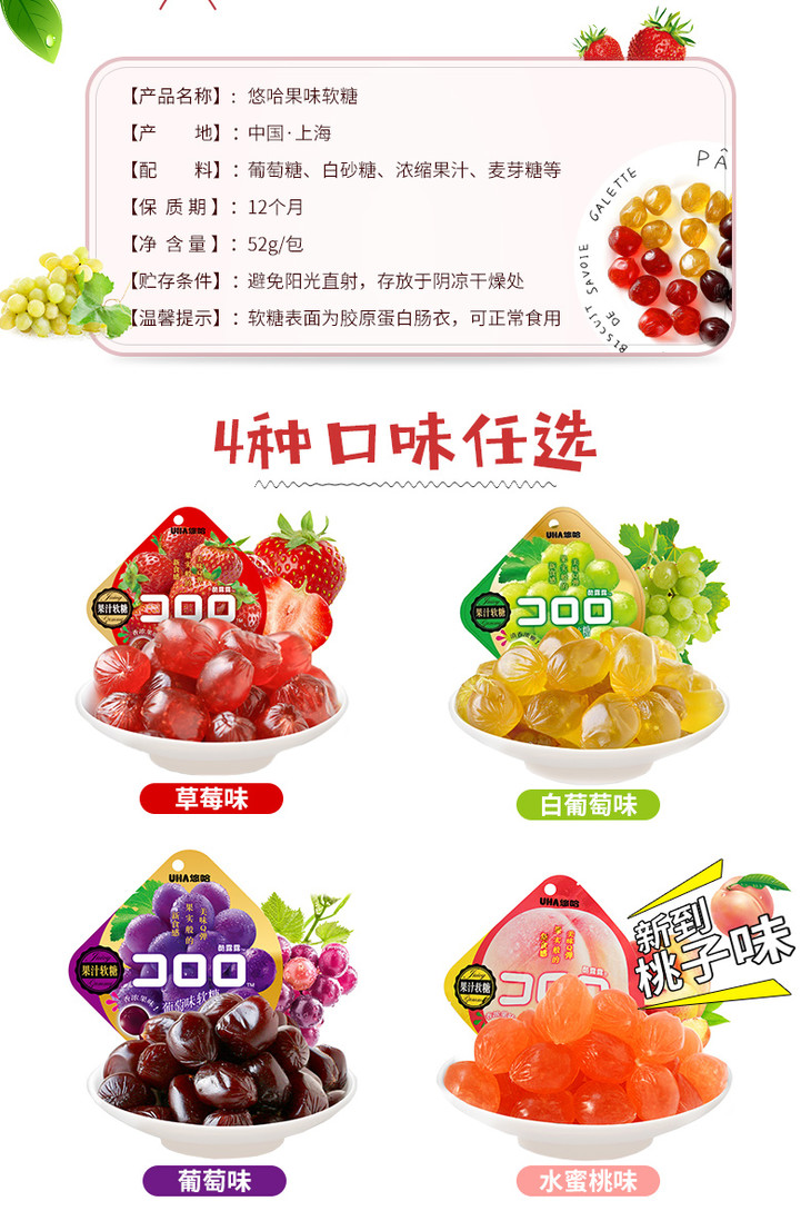 uha悠哈味觉糖酷露露水果汁软糖 52g*4包