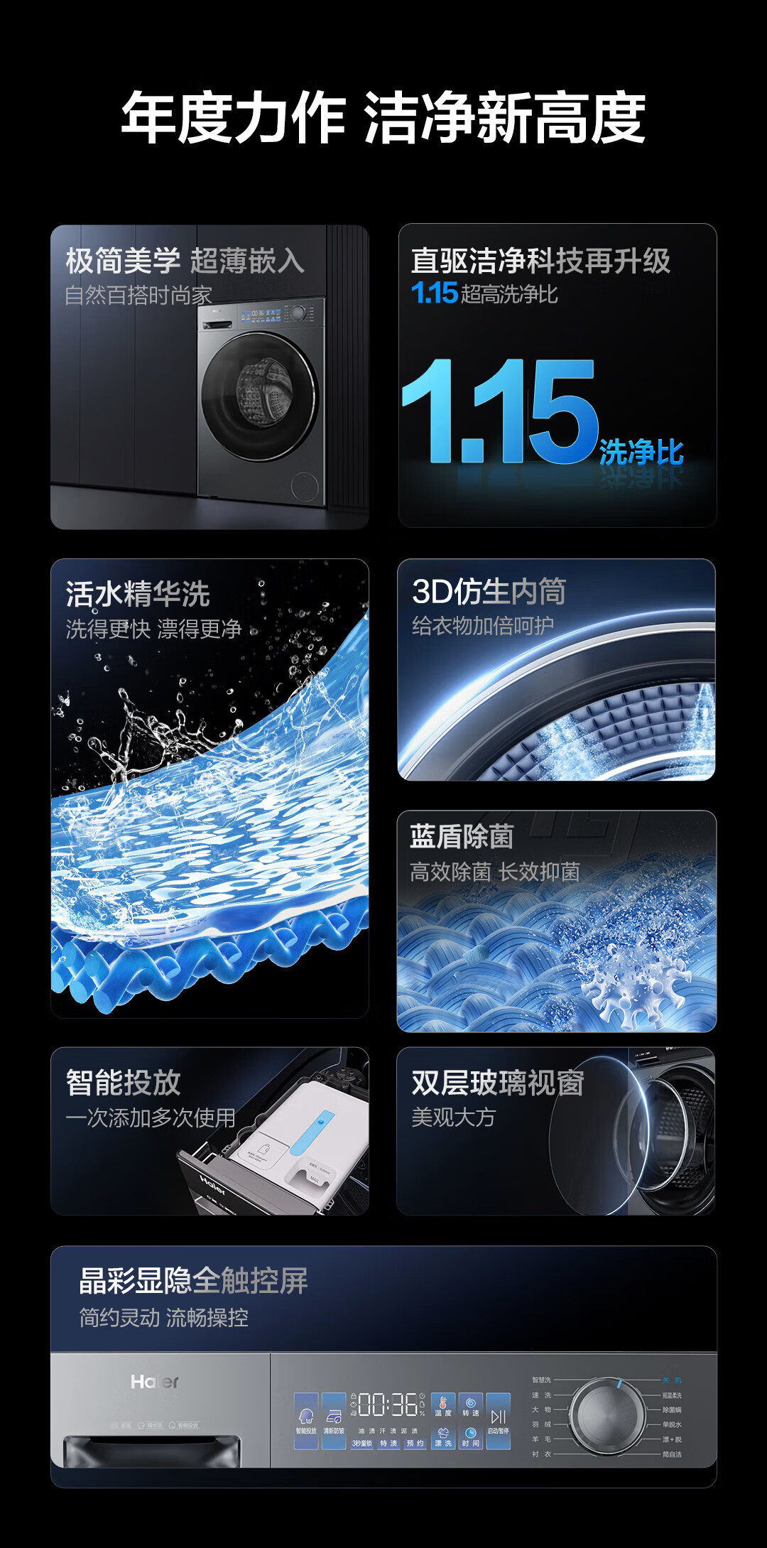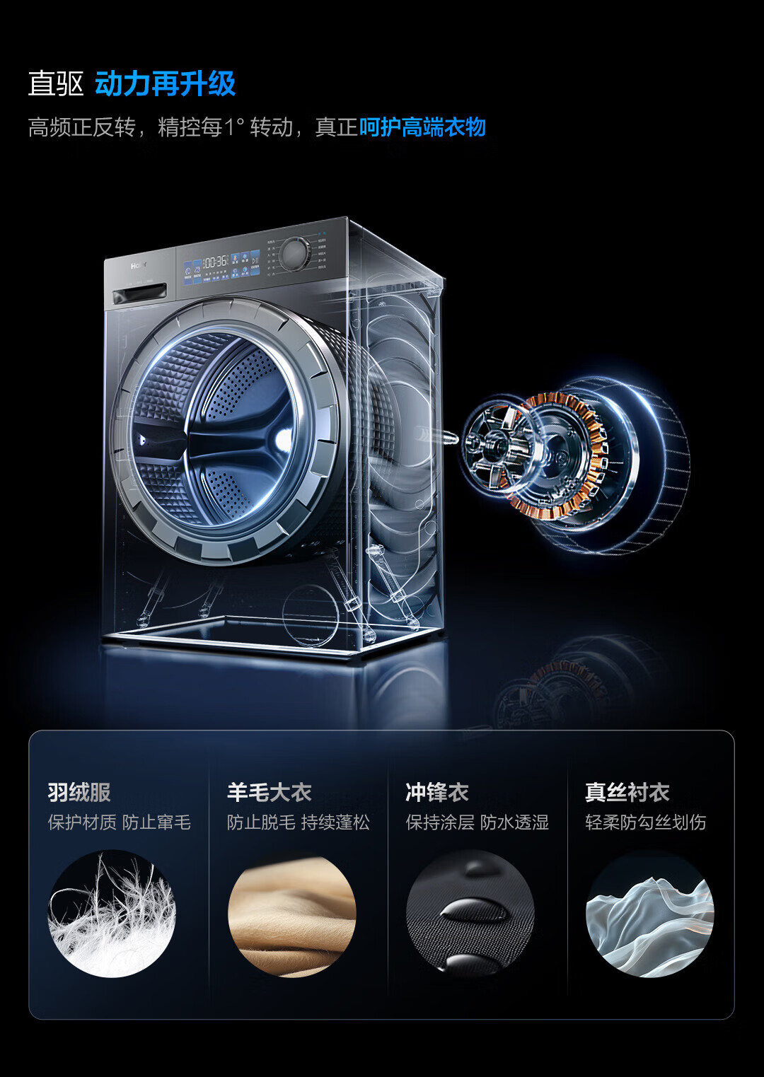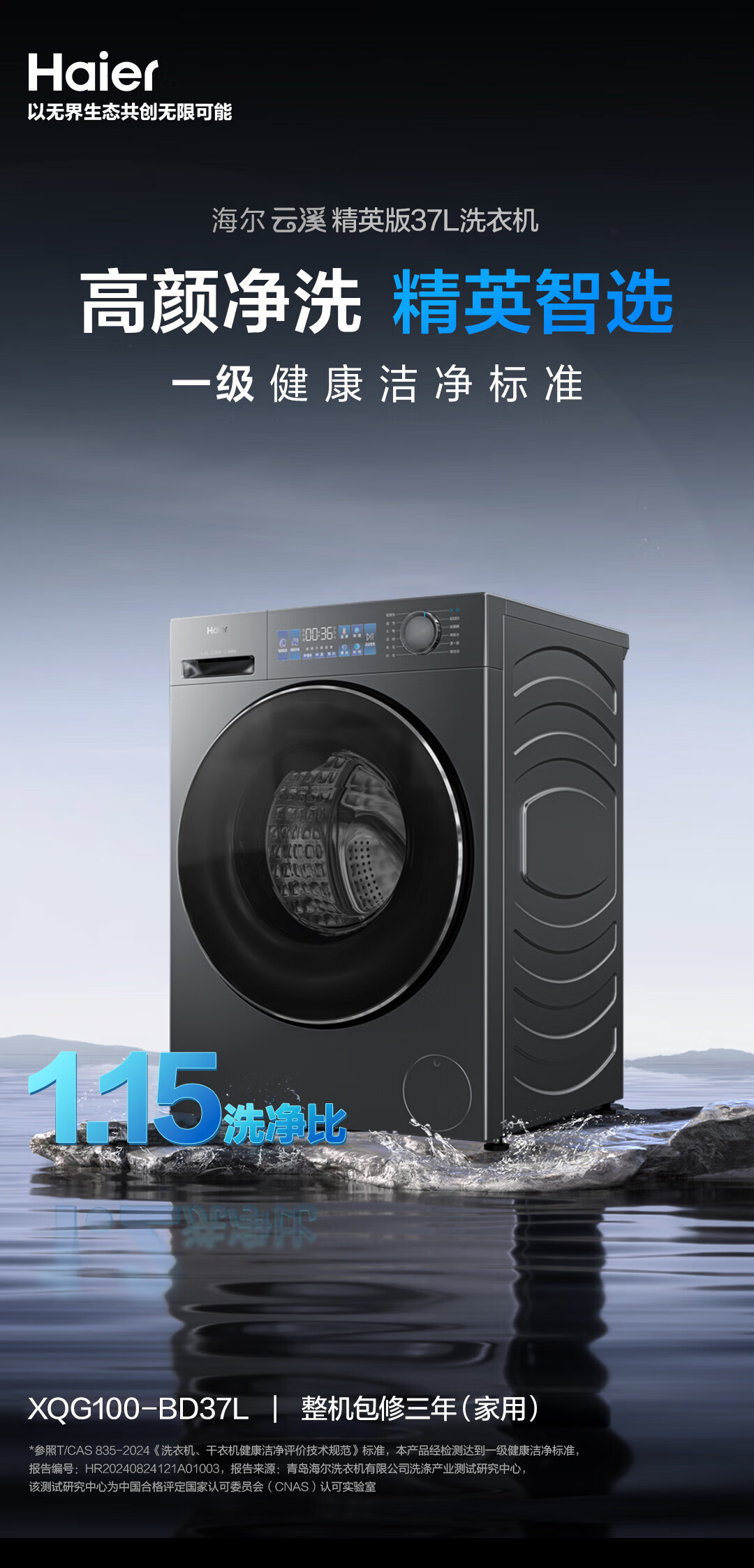 海尔(Haier)云溪精英版 滚筒洗衣机全自动10公斤懒人家用 直驱活水精华洗 国家补贴 以旧换新 XQG100-BD37L