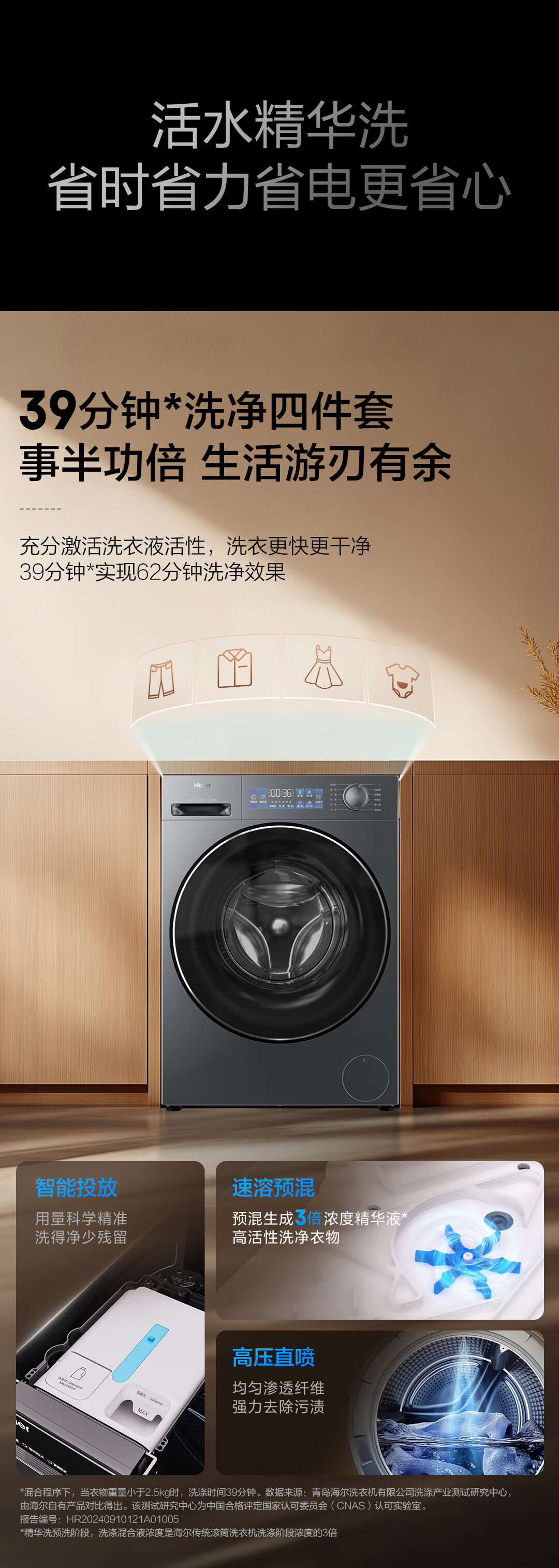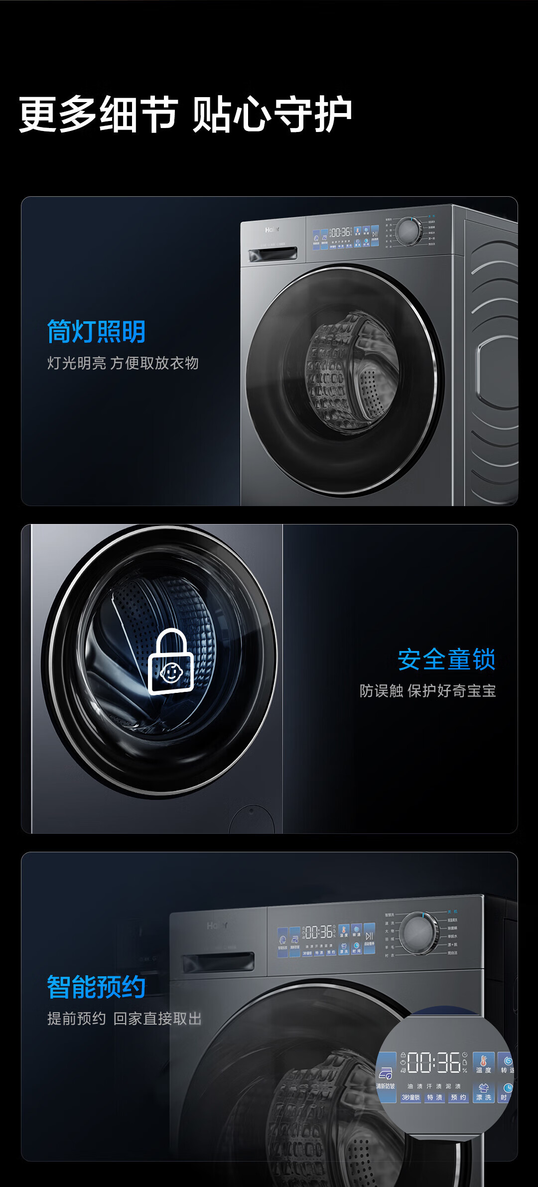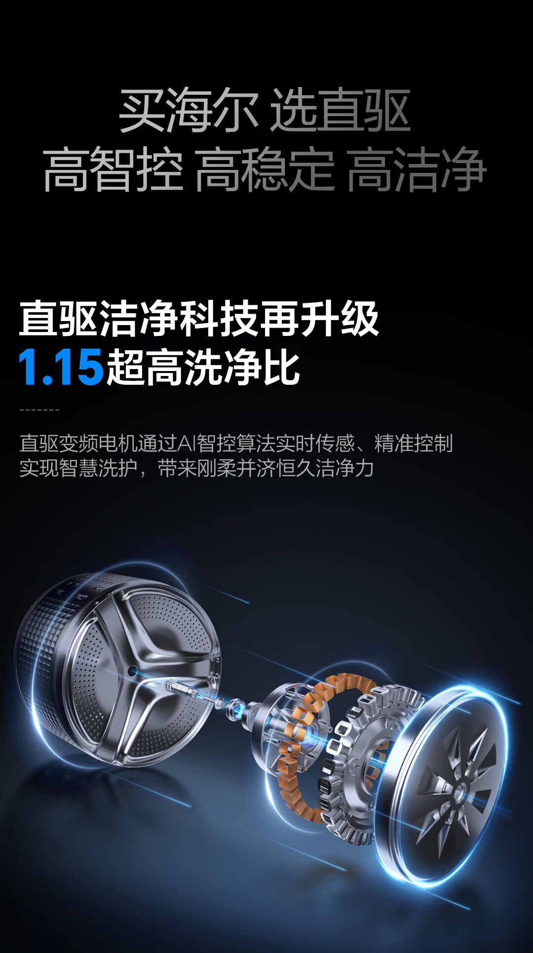 海尔(Haier)云溪精英版 滚筒洗衣机全自动10公斤懒人家用 直驱活水精华洗 国家补贴 以旧换新 XQG100-BD37L