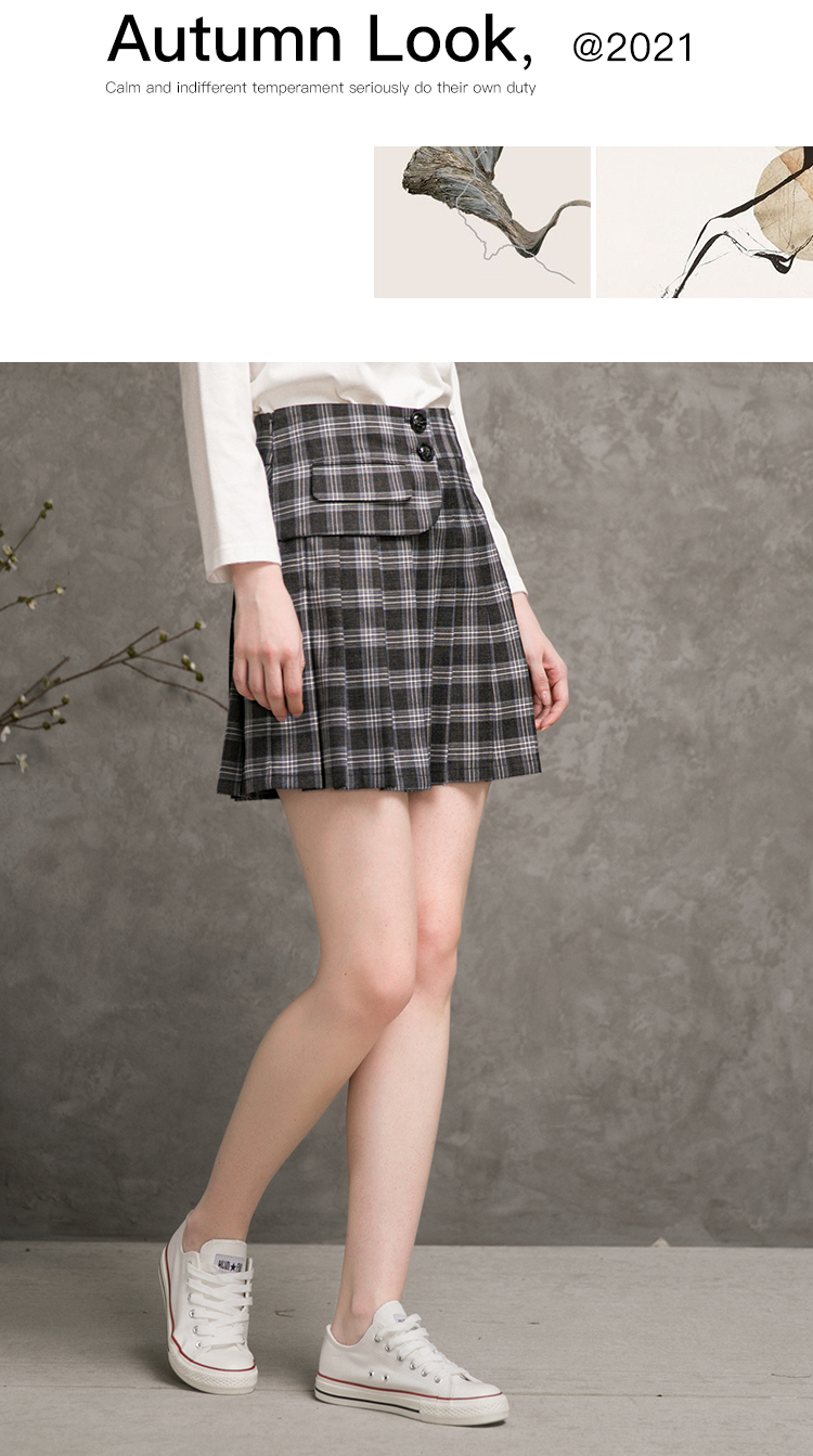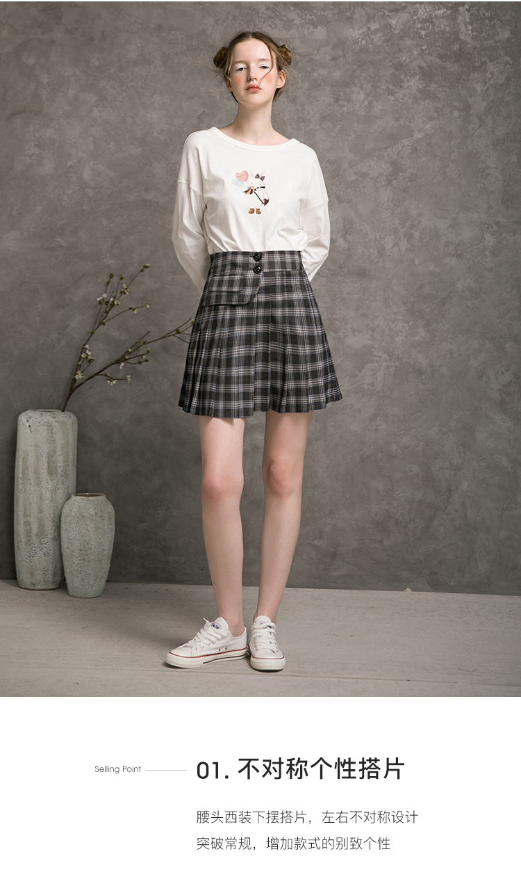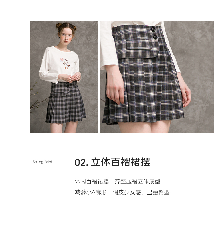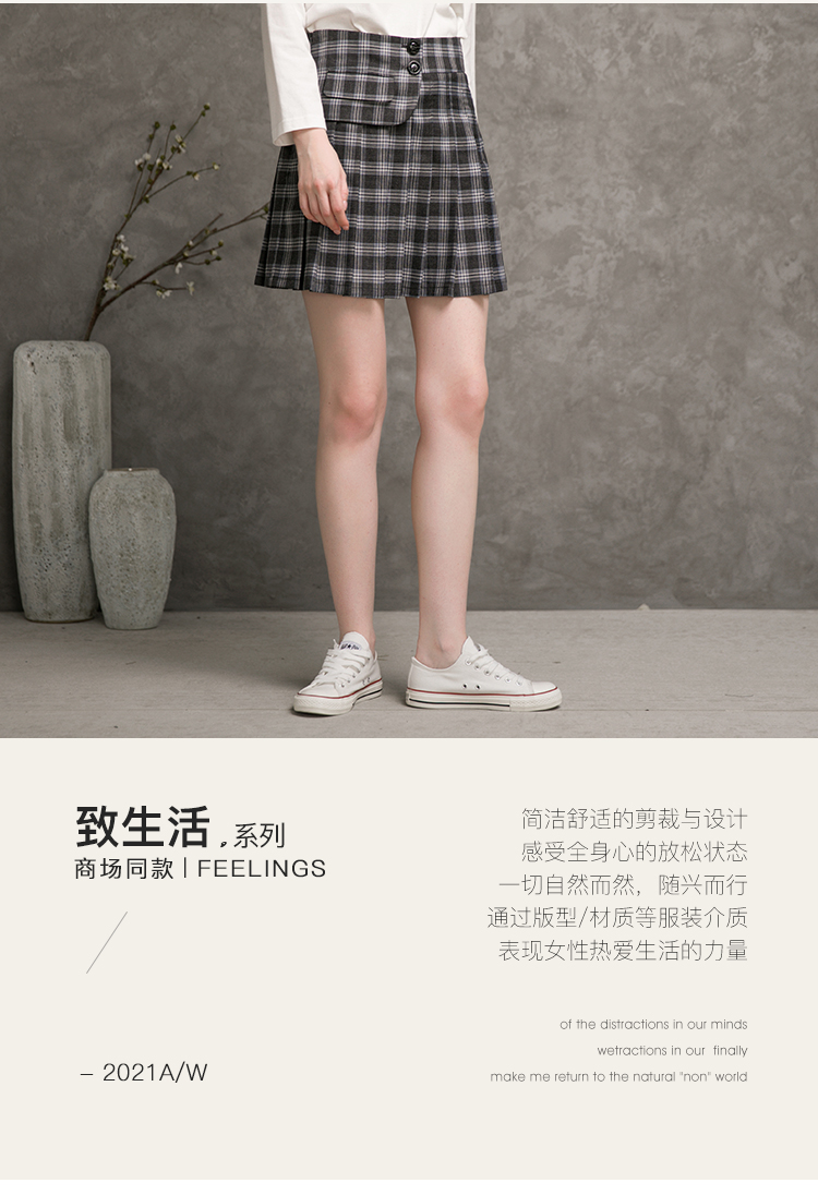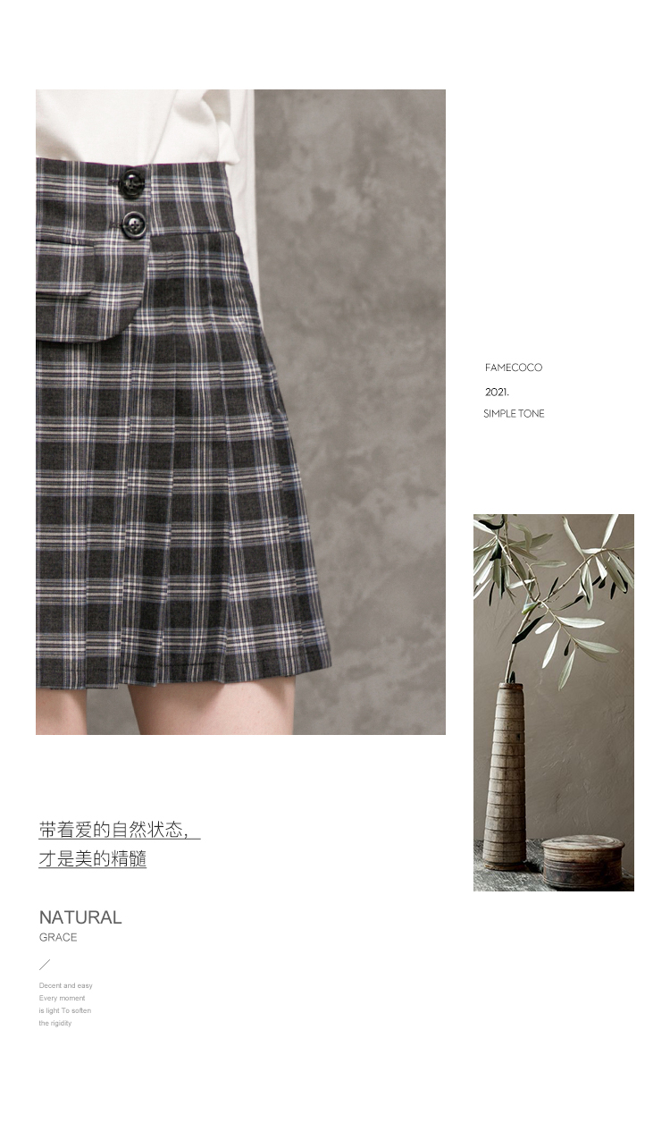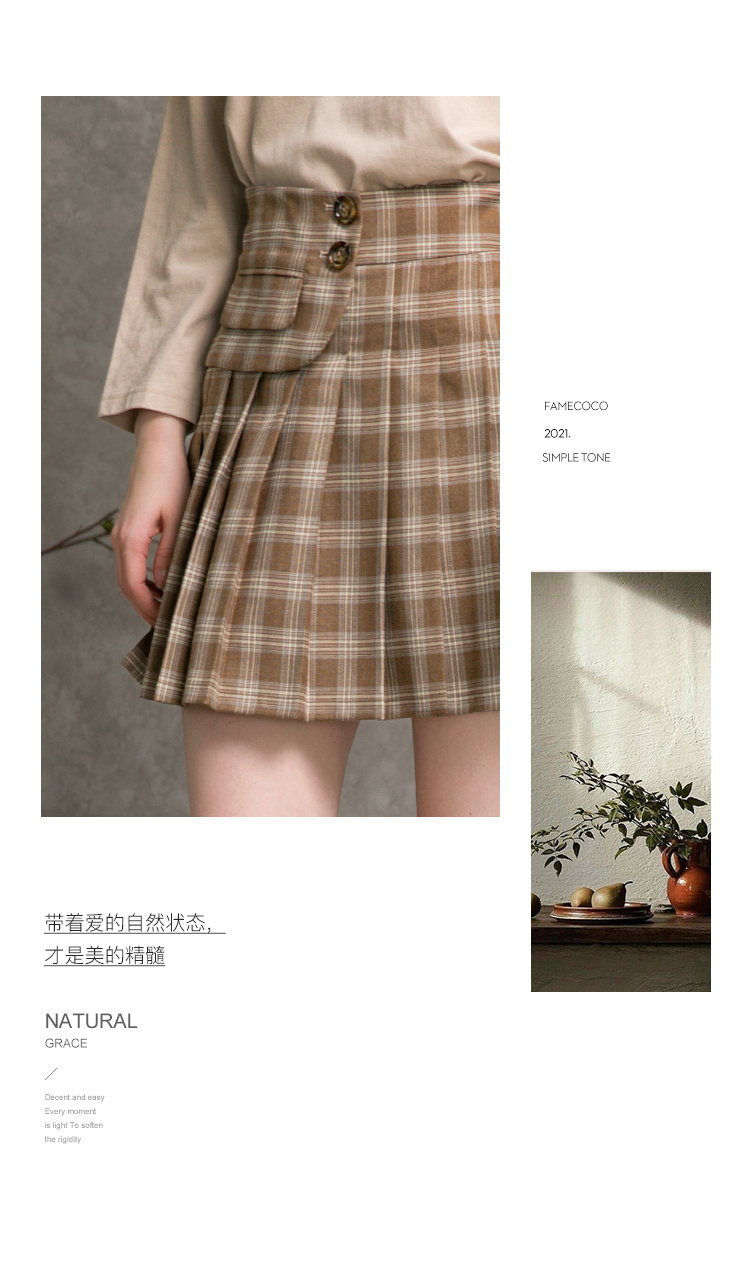 famecoco范可儿a字短裙女秋遮胯格子半身百褶裙F216HA012
