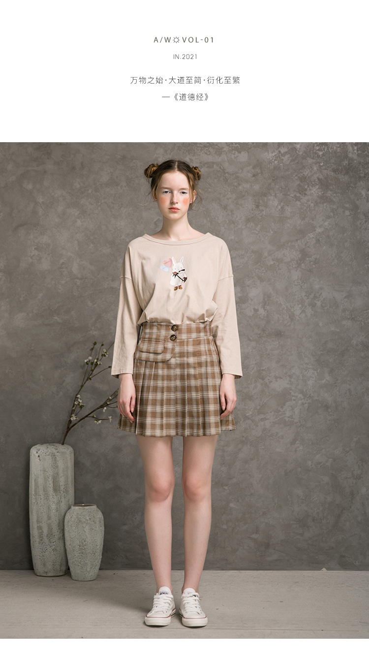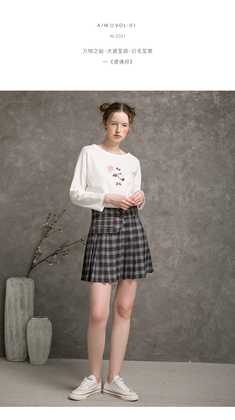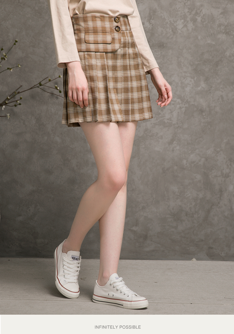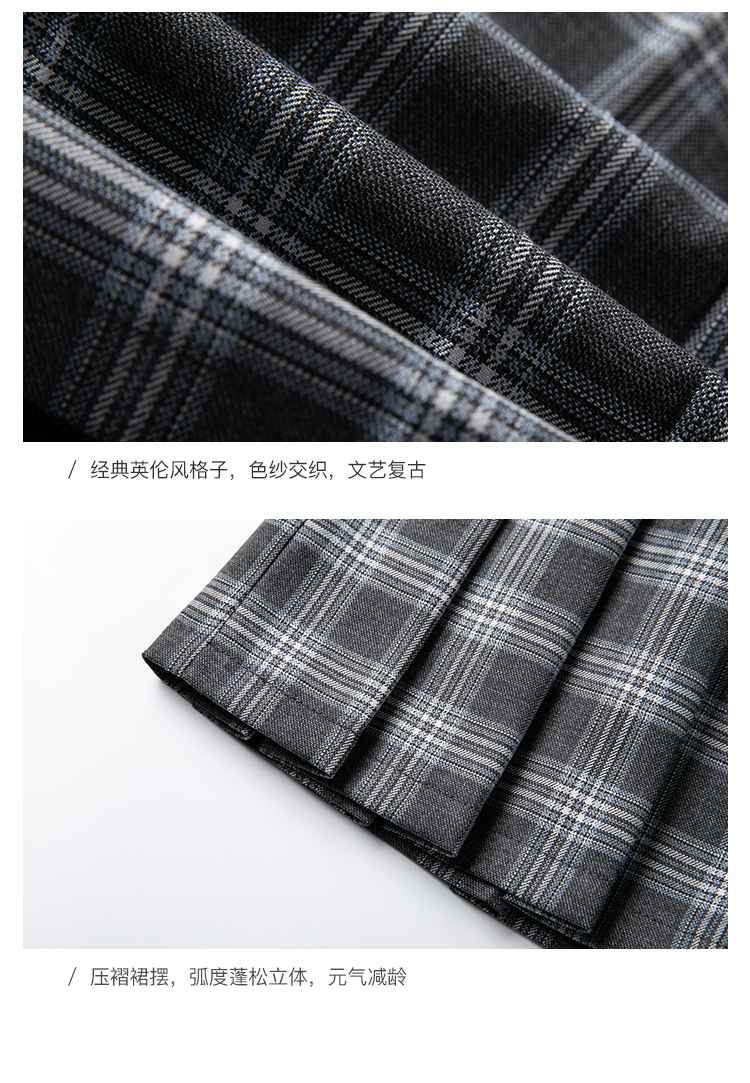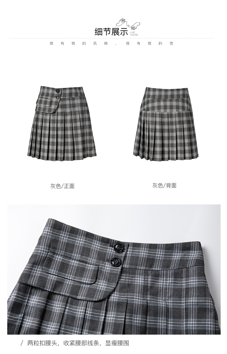 famecoco范可儿a字短裙女秋遮胯格子半身百褶裙F216HA012