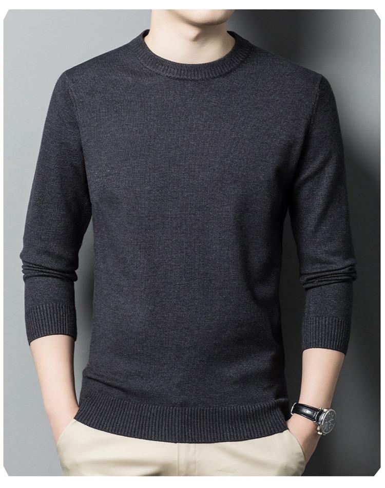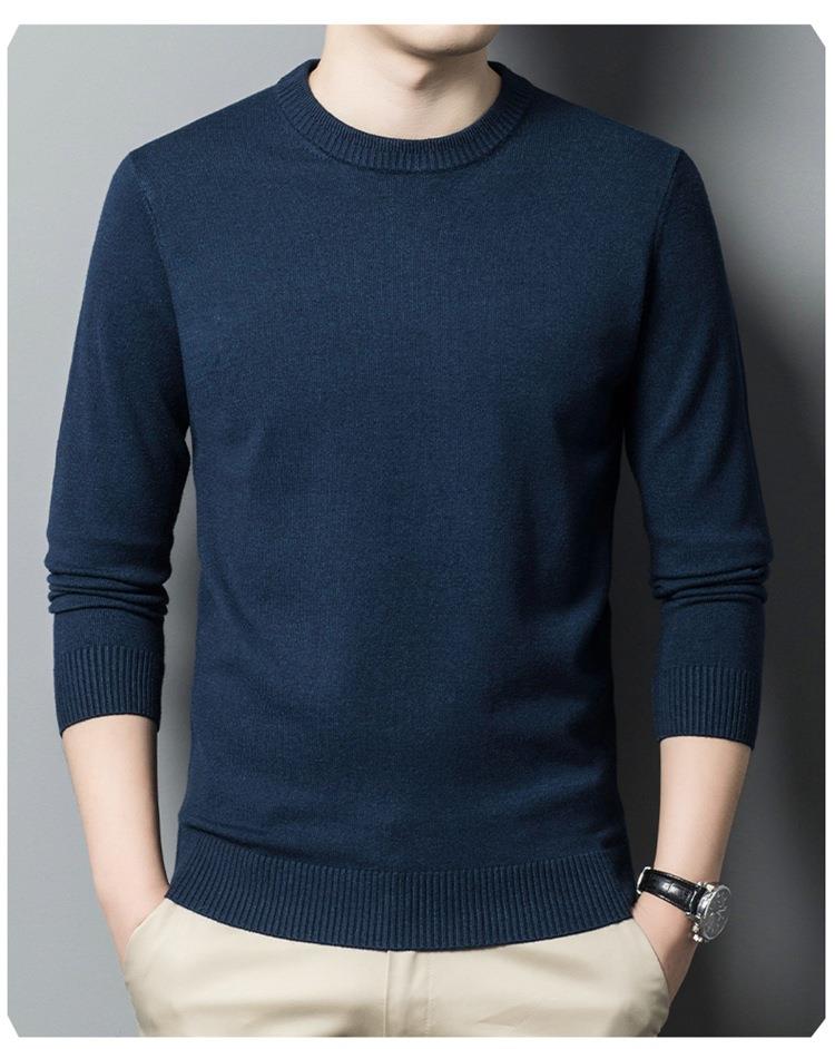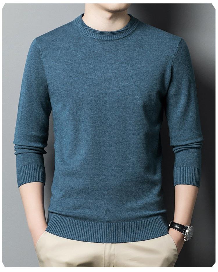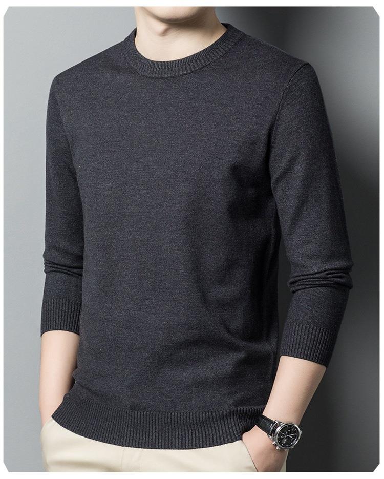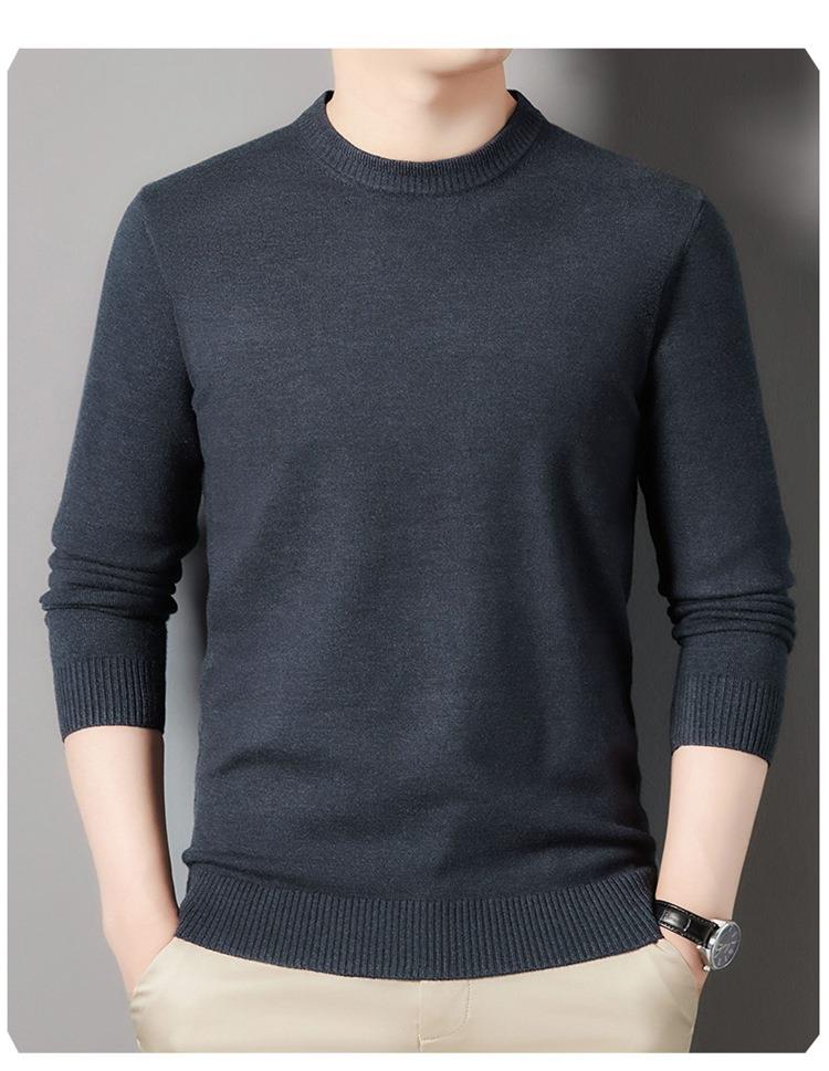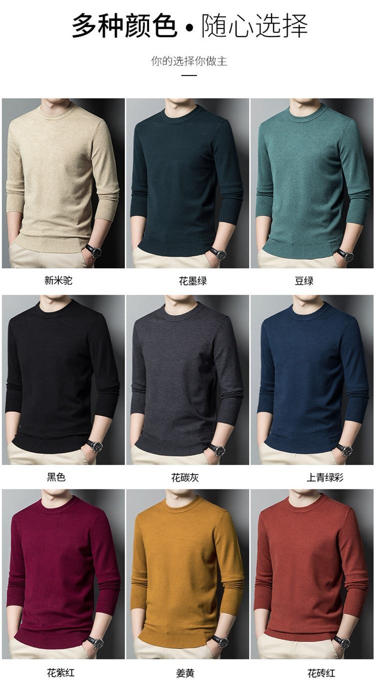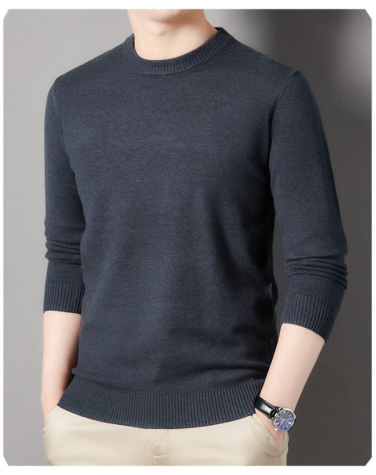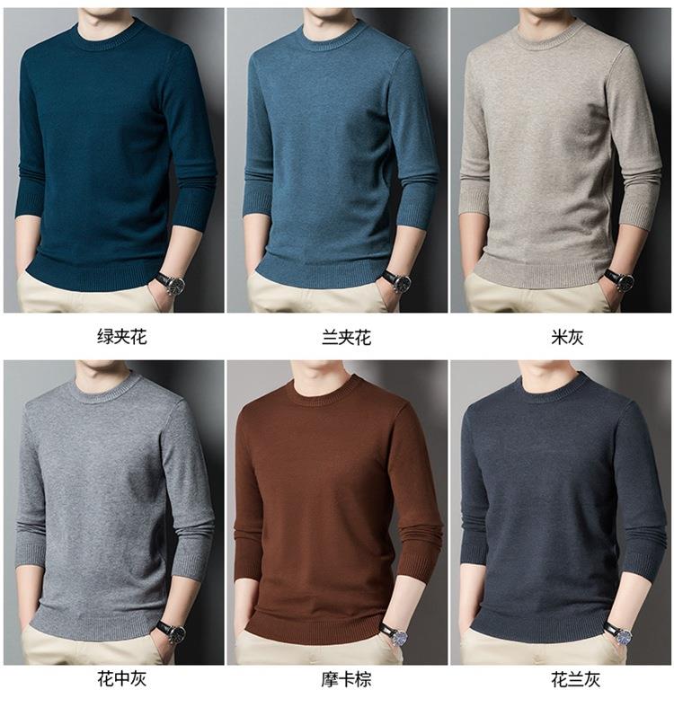 羊毛混纺长袖针织毛衣男士秋冬季新款圆领纯色休闲百搭打底羊毛衫
