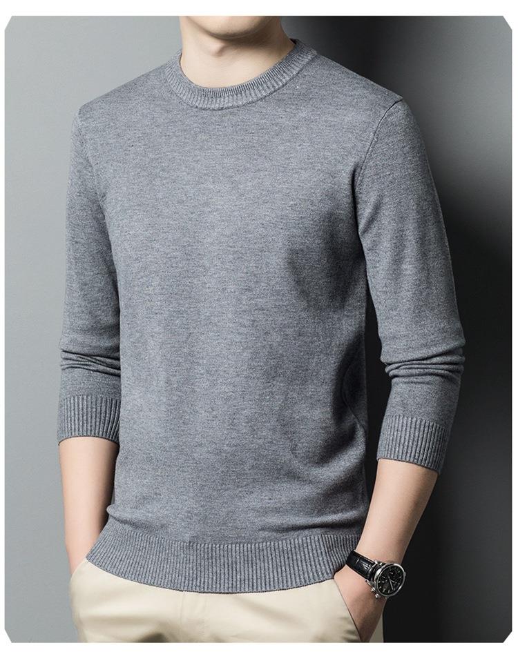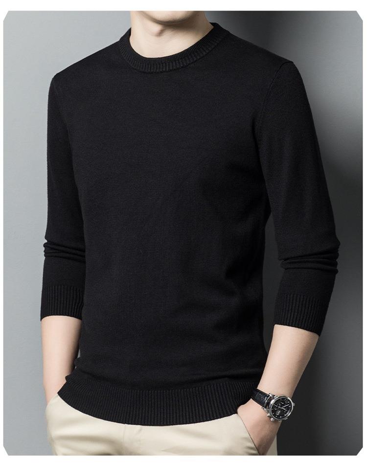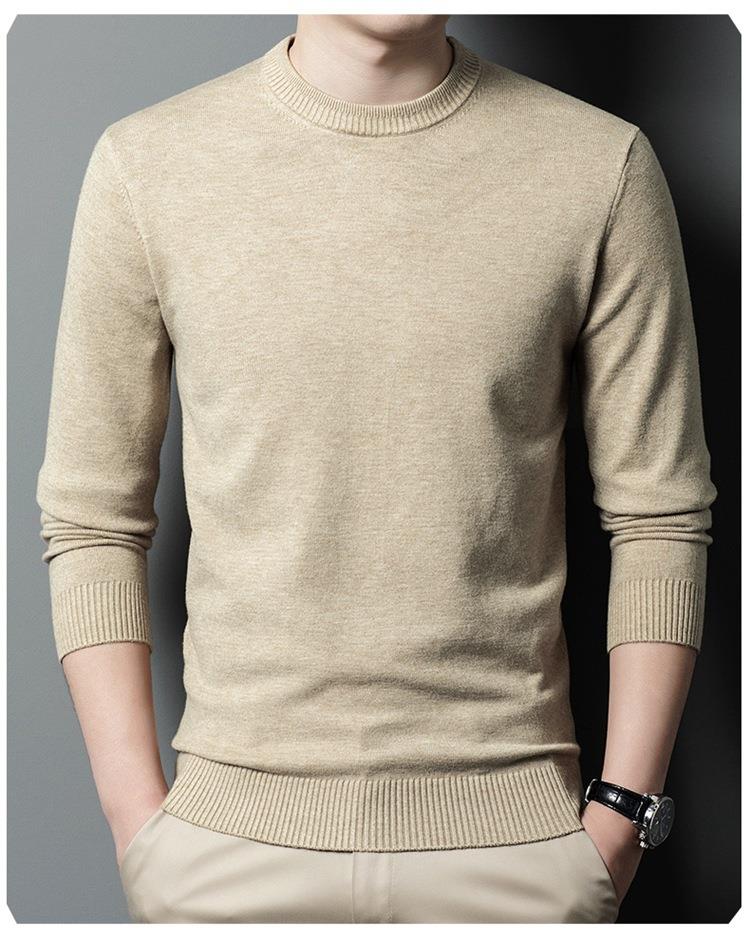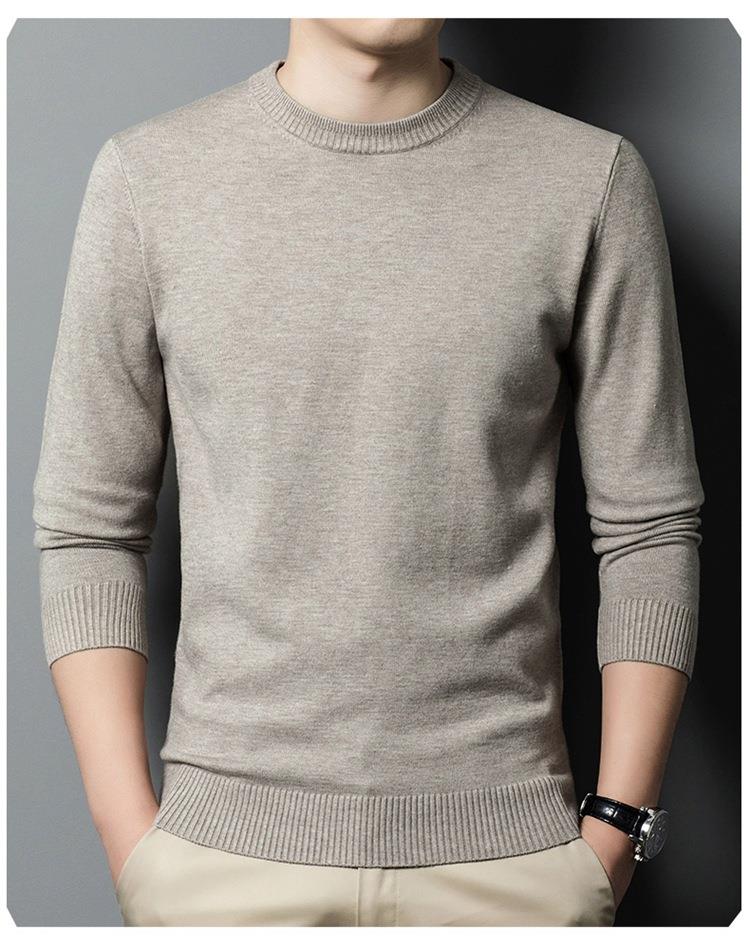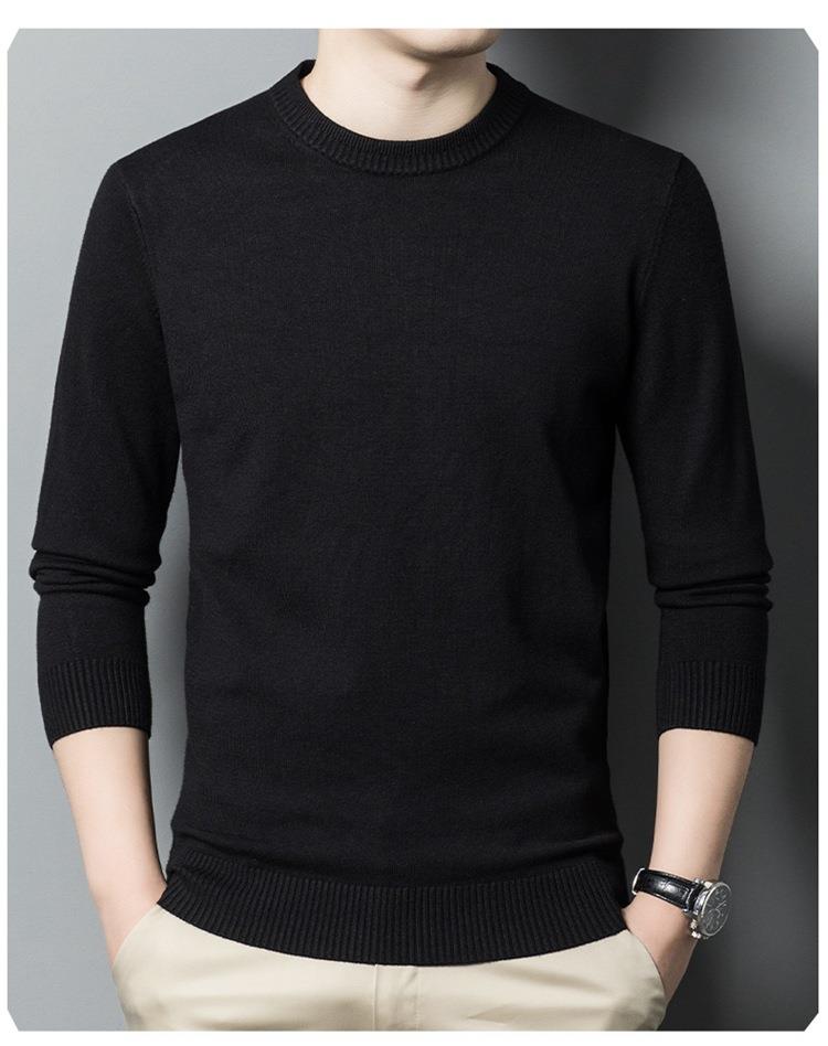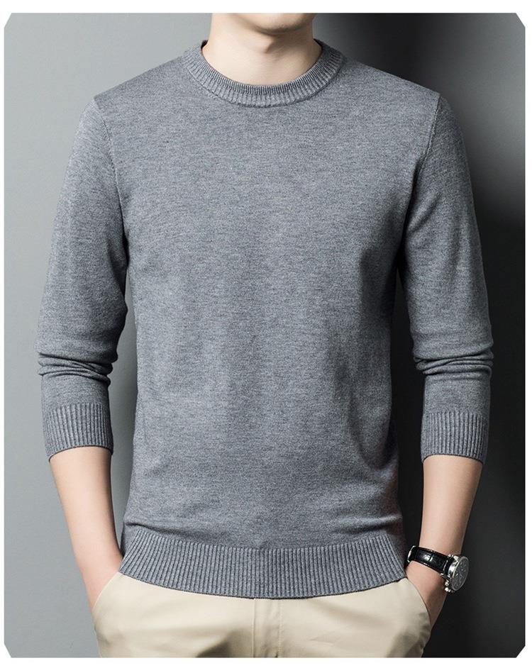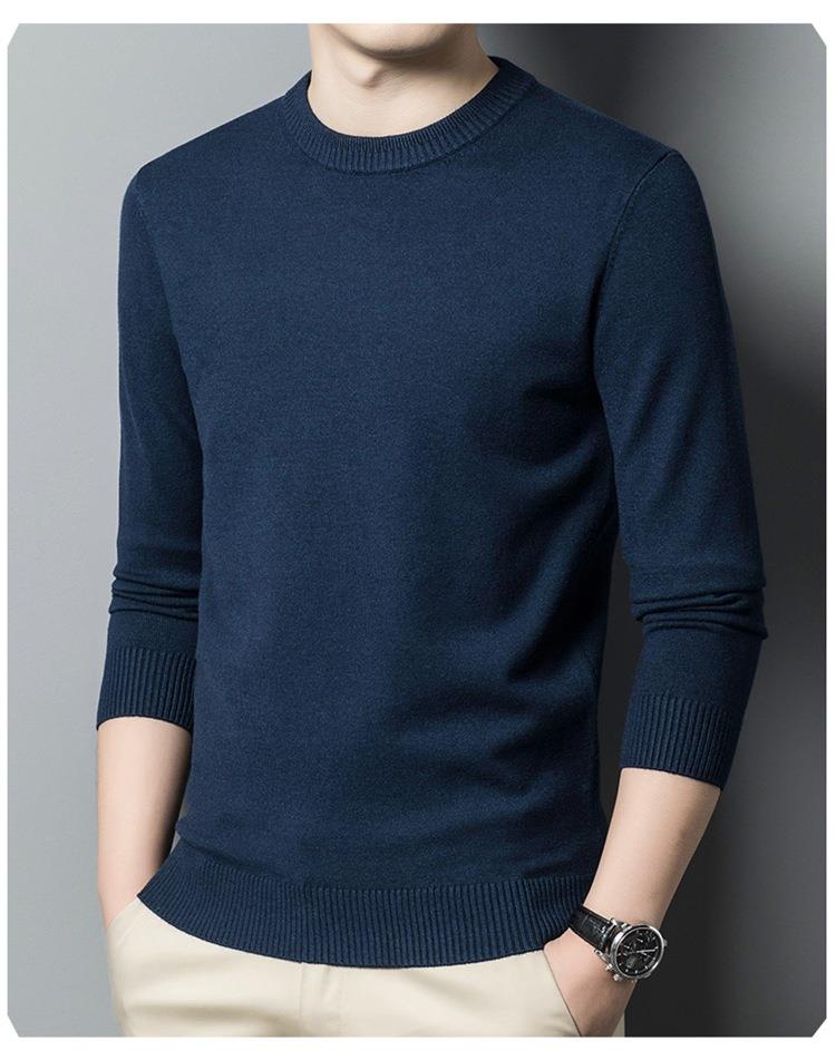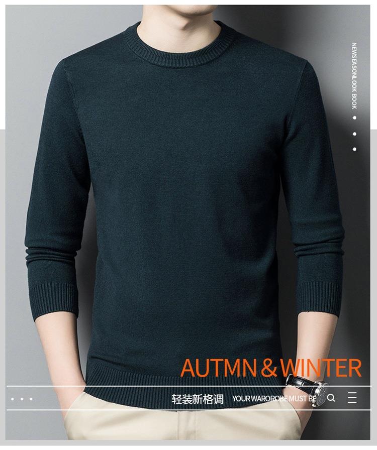 羊毛混纺长袖针织毛衣男士秋冬季新款圆领纯色休闲百搭打底羊毛衫
