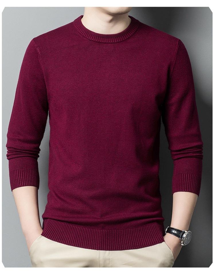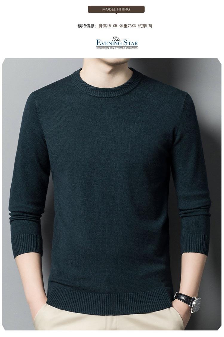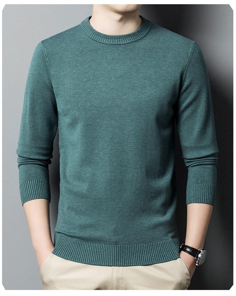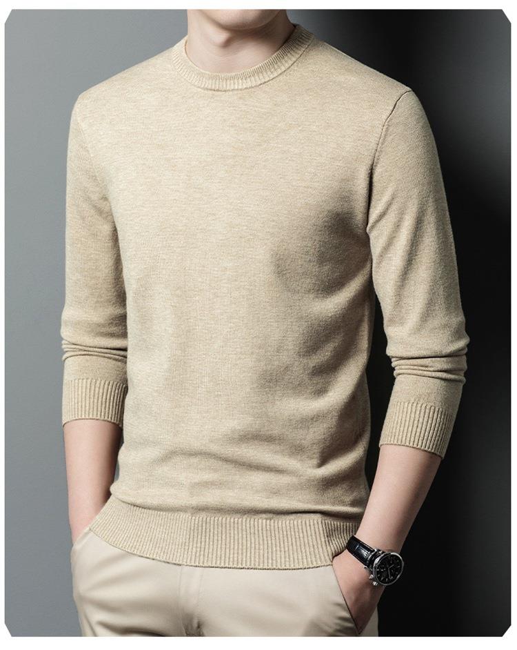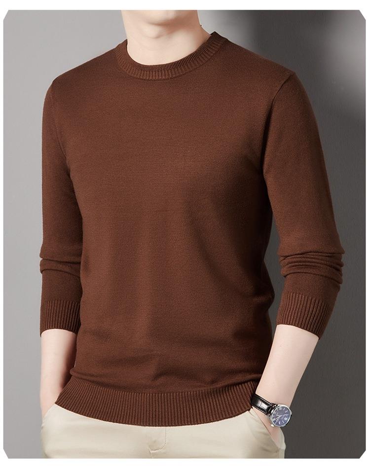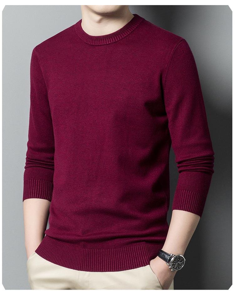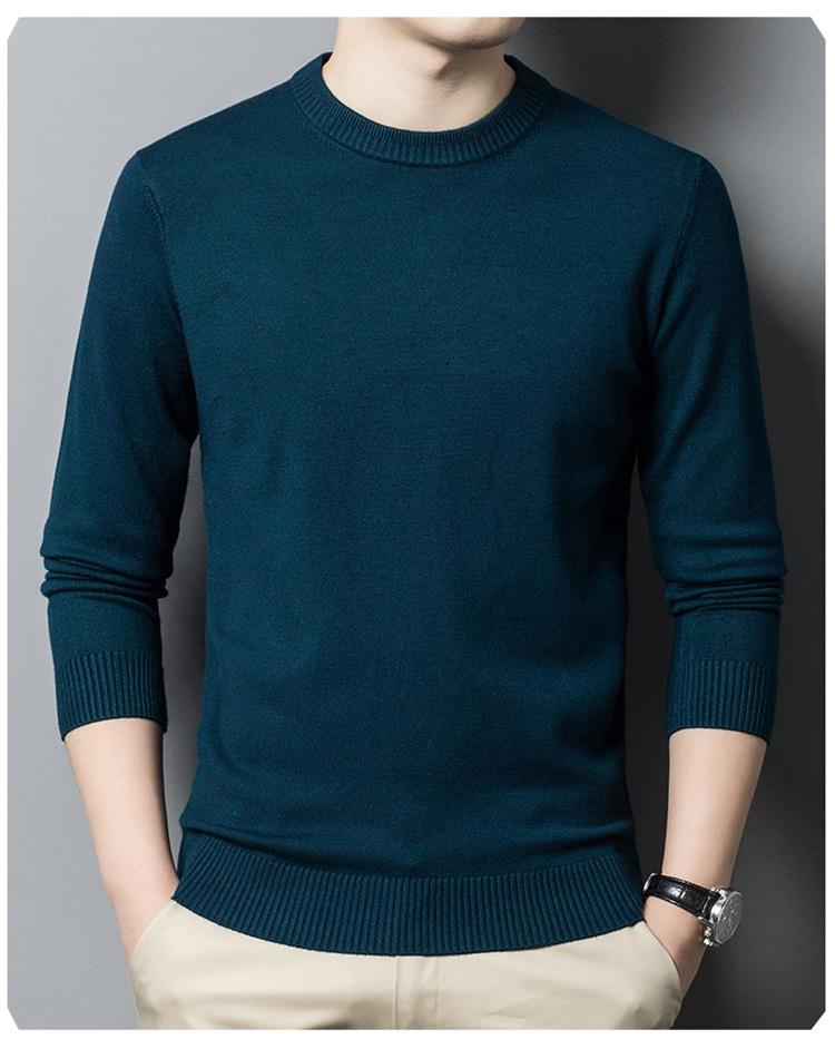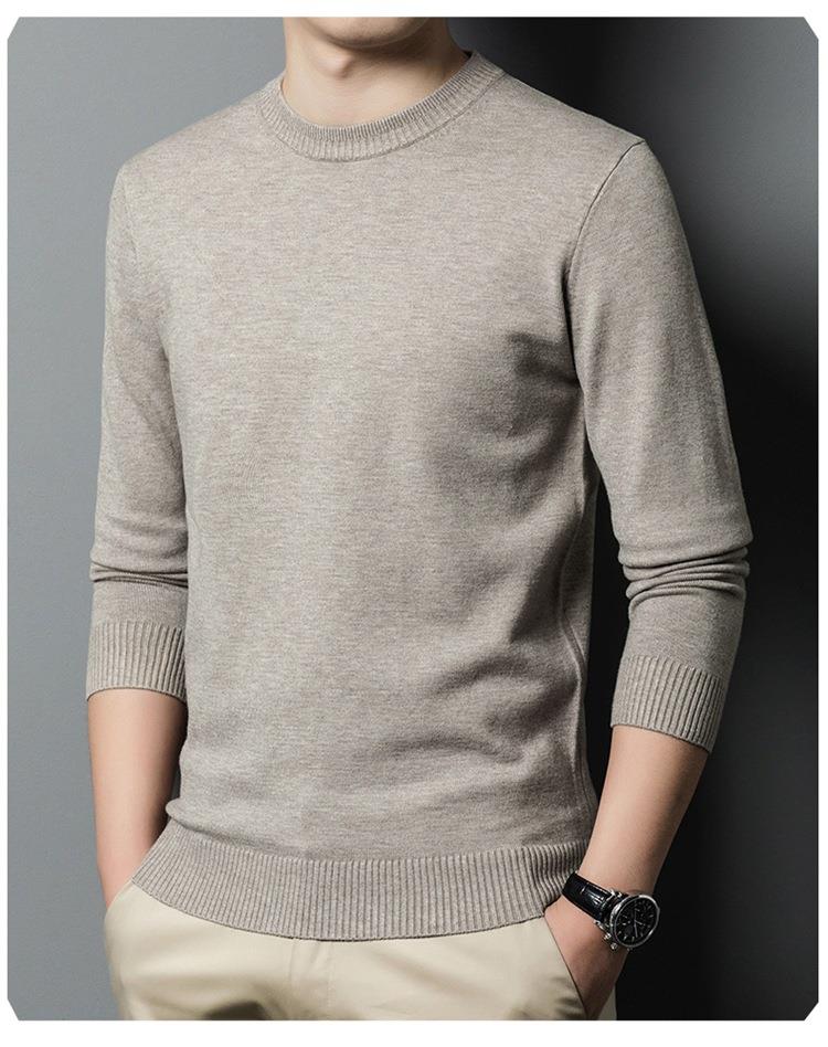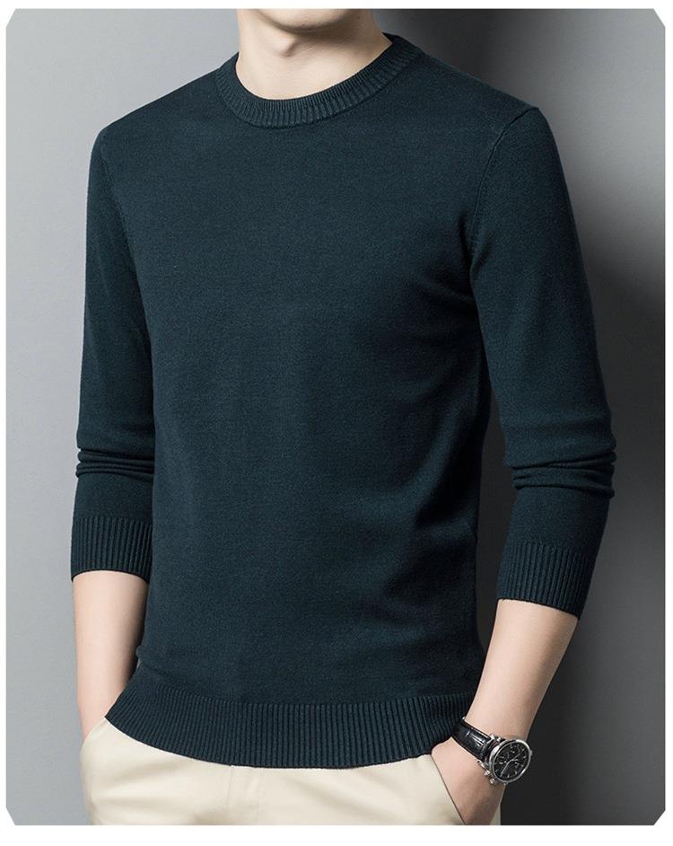 羊毛混纺长袖针织毛衣男士秋冬季新款圆领纯色休闲百搭打底羊毛衫