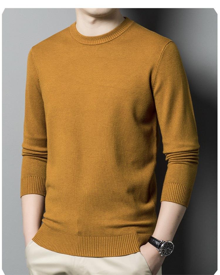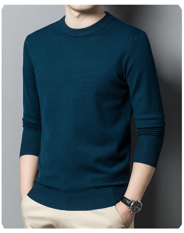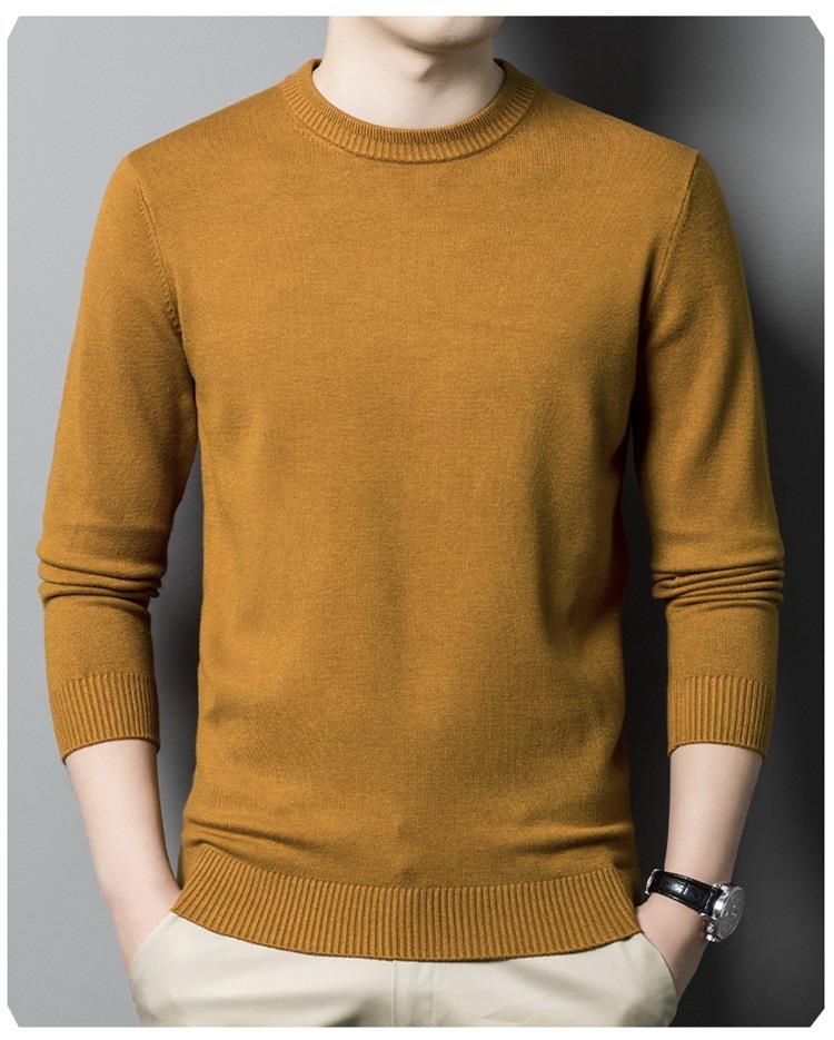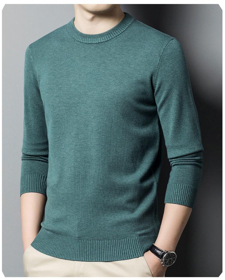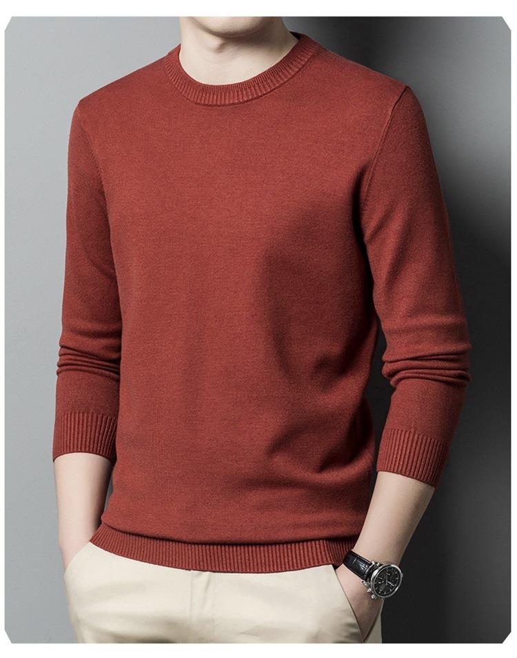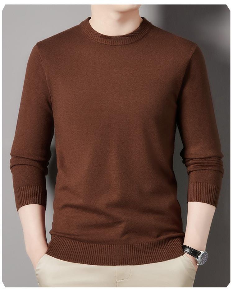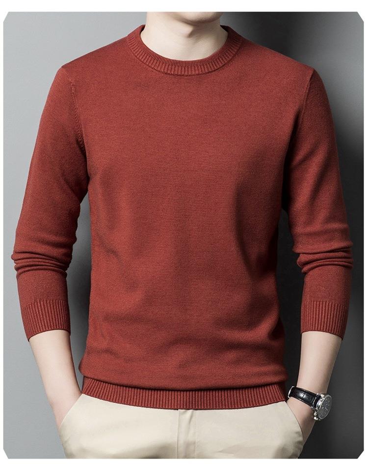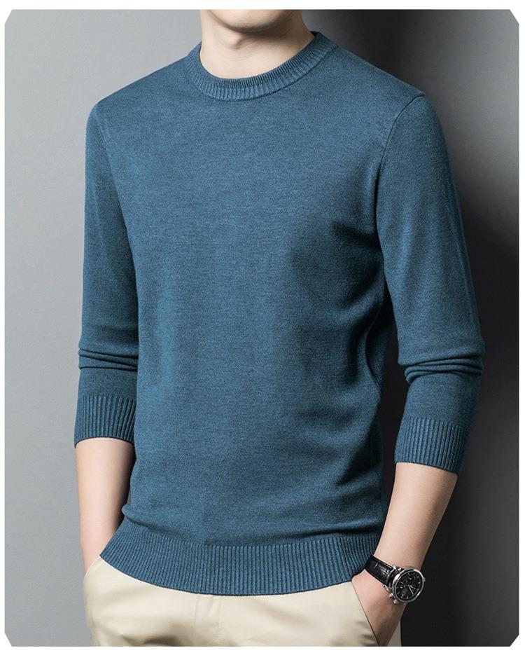 羊毛混纺长袖针织毛衣男士秋冬季新款圆领纯色休闲百搭打底羊毛衫