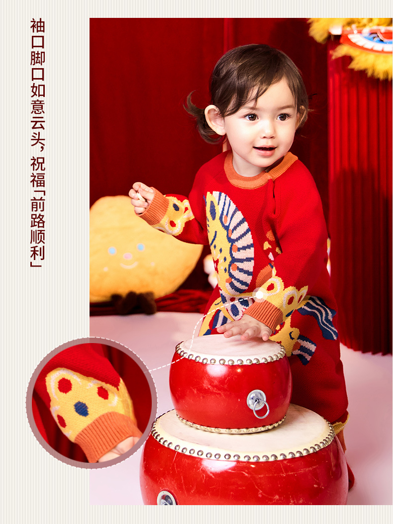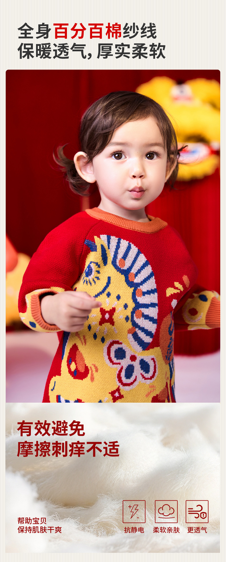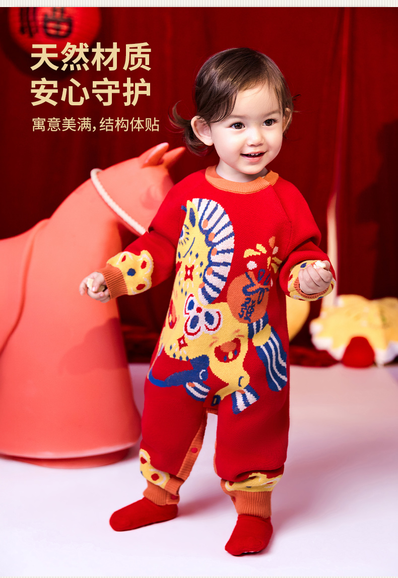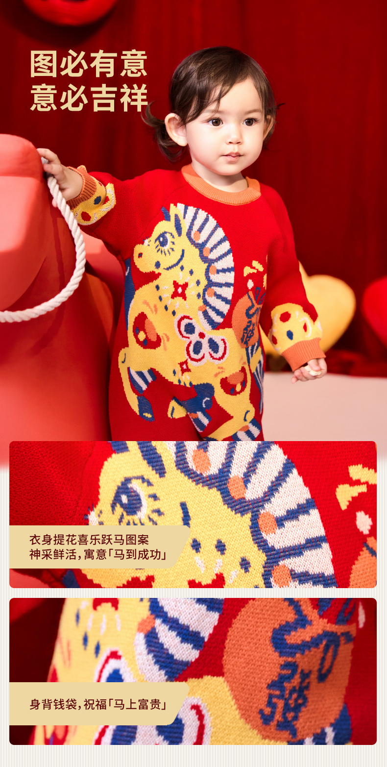 年衣婴童毛衣哈衣爬服冬款宝宝男女童针织衫中式新年马上平安婴童毛衣