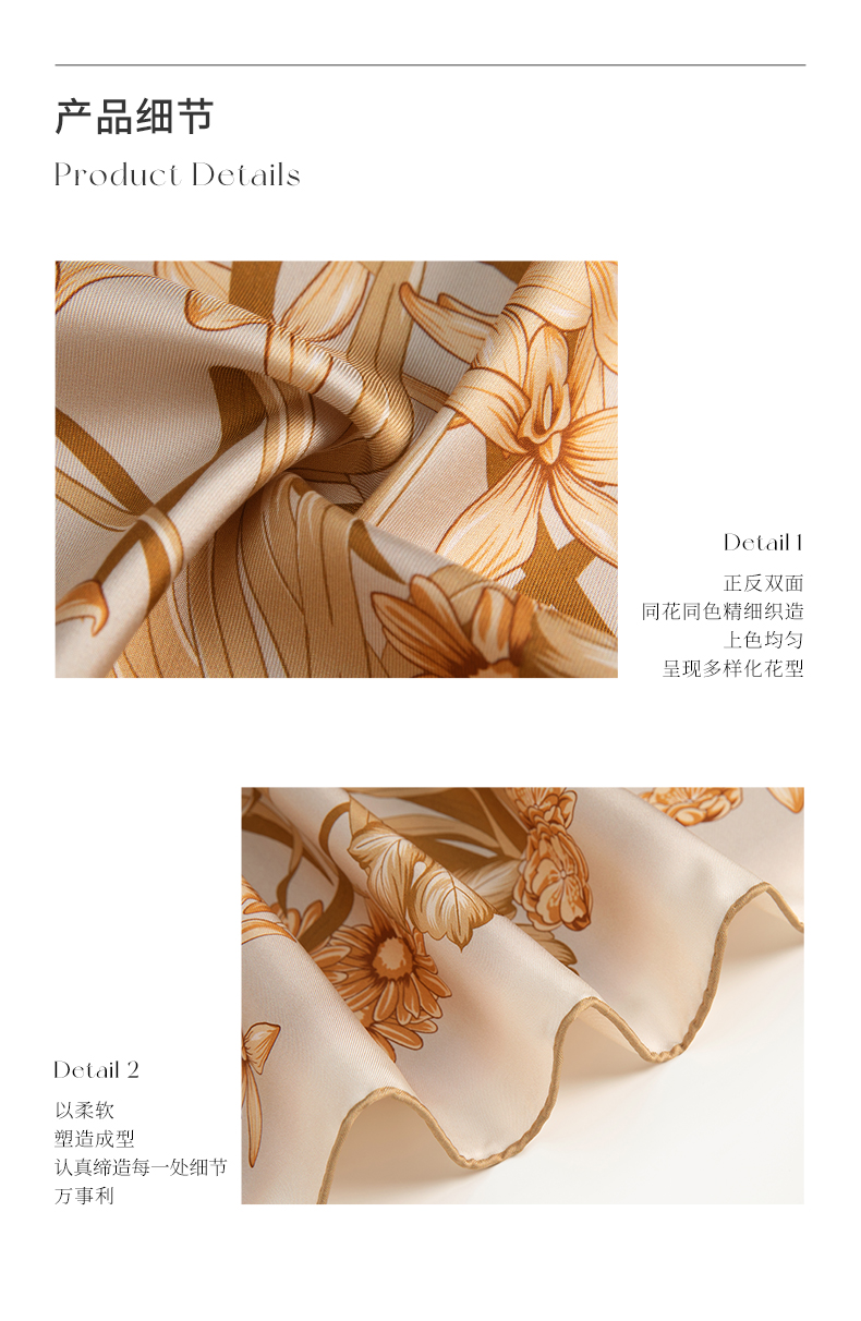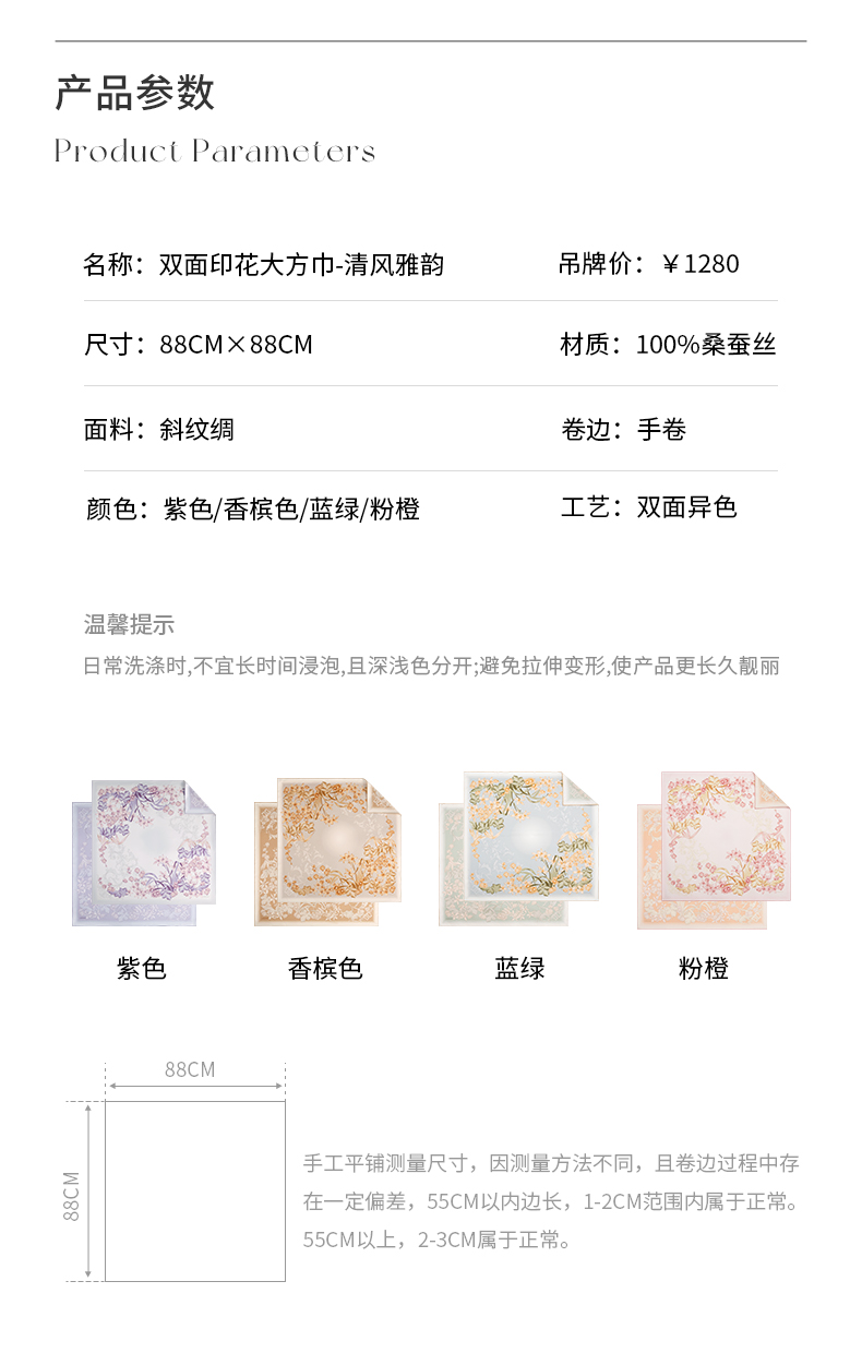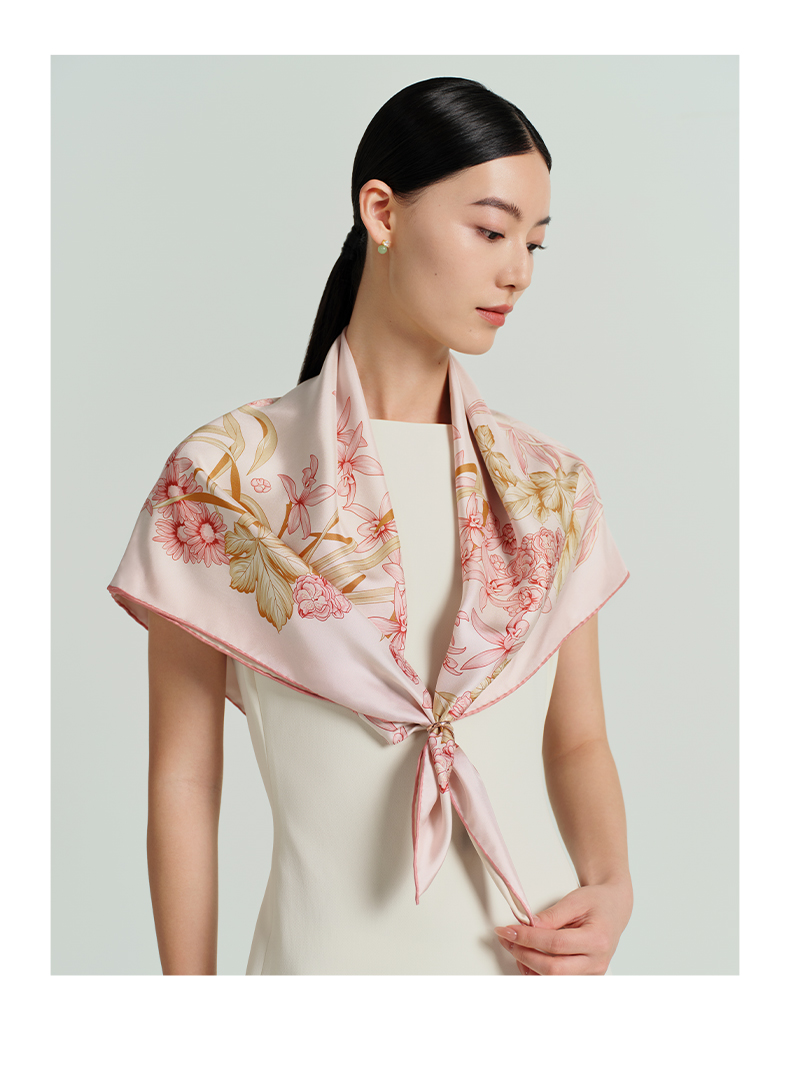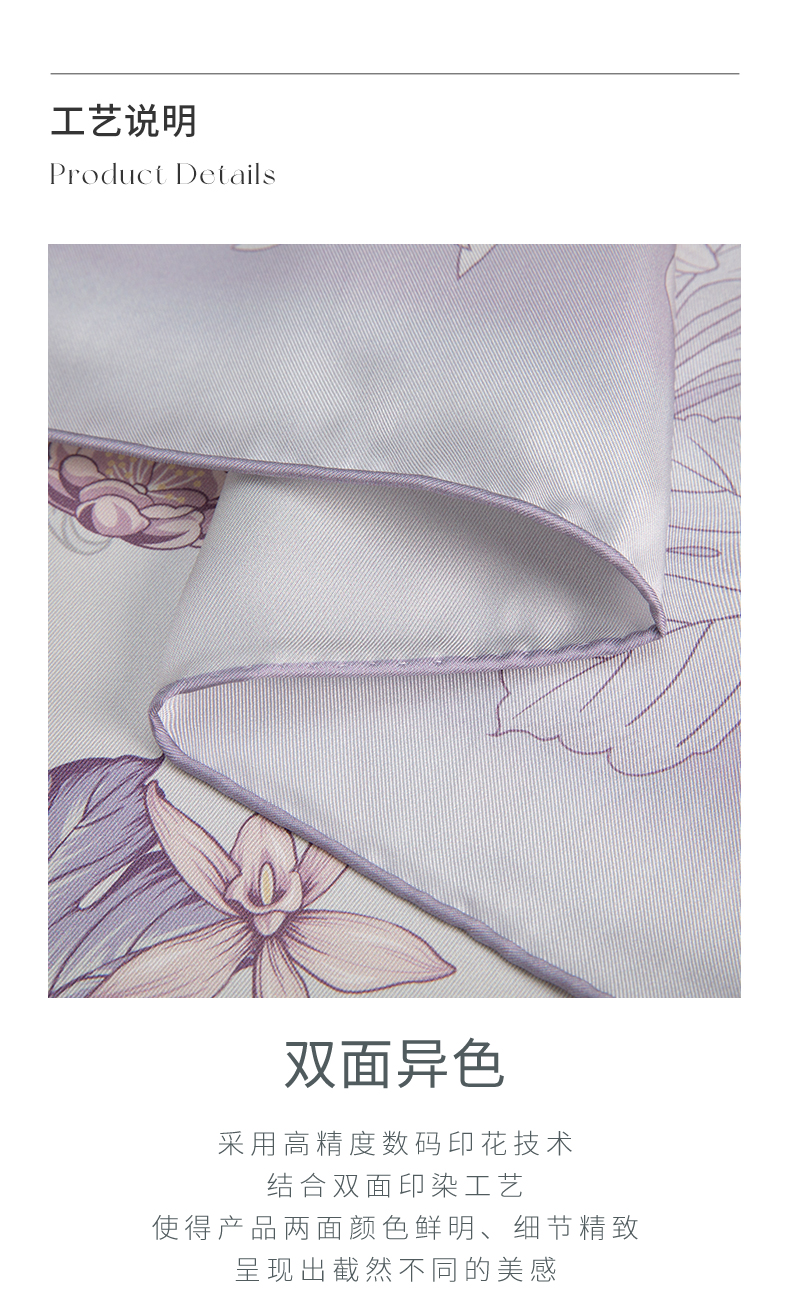 凤凰之家“浪漫不渝”63厘米双面印花真丝中方巾