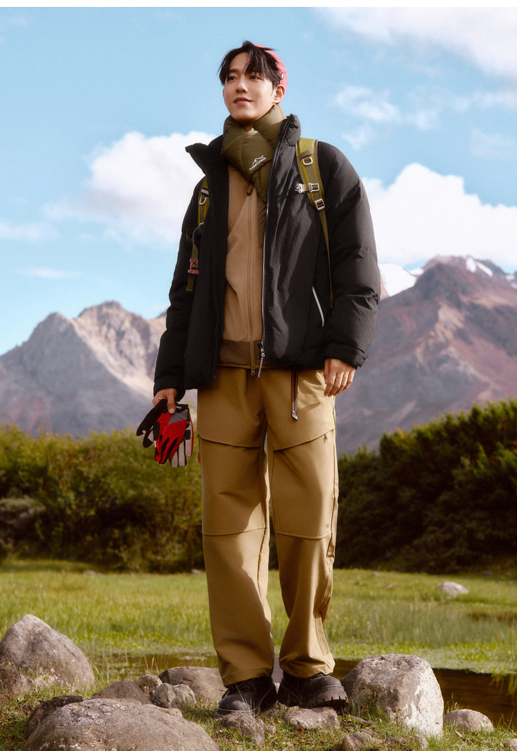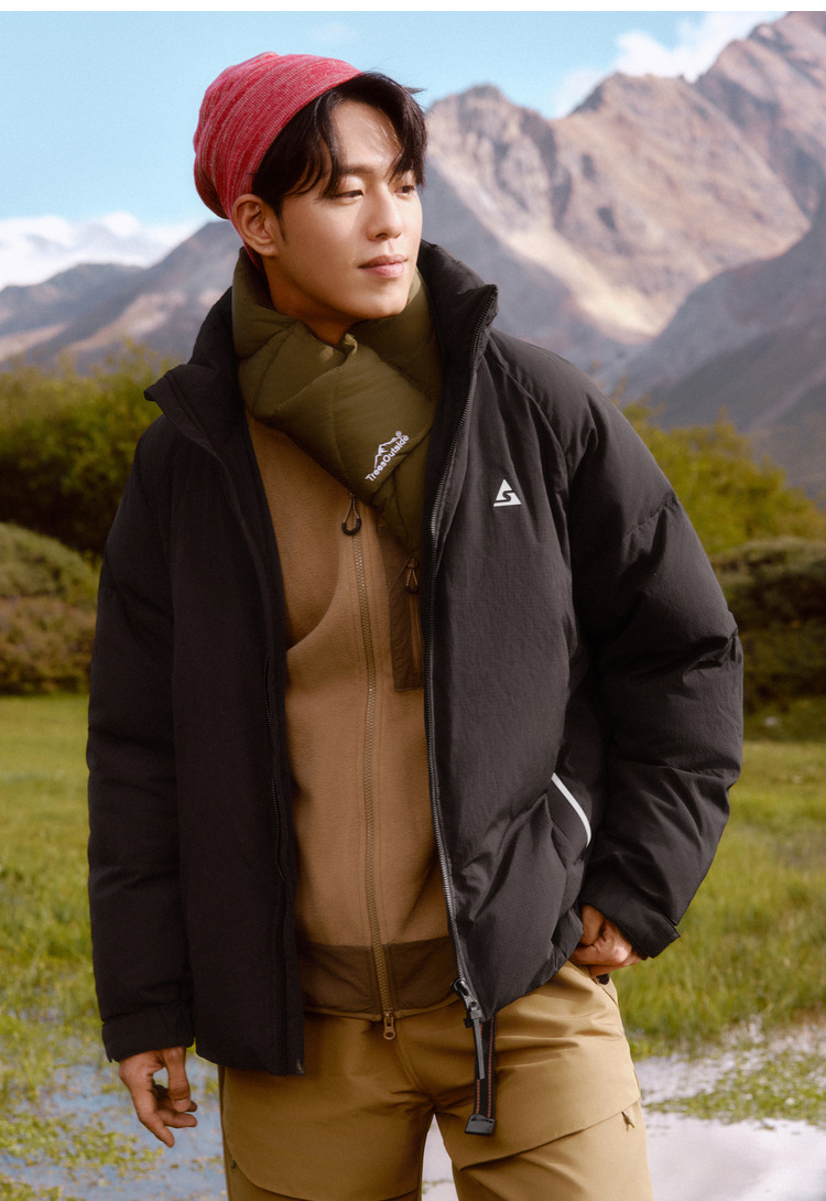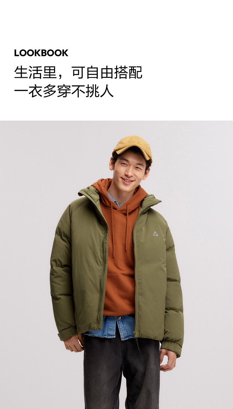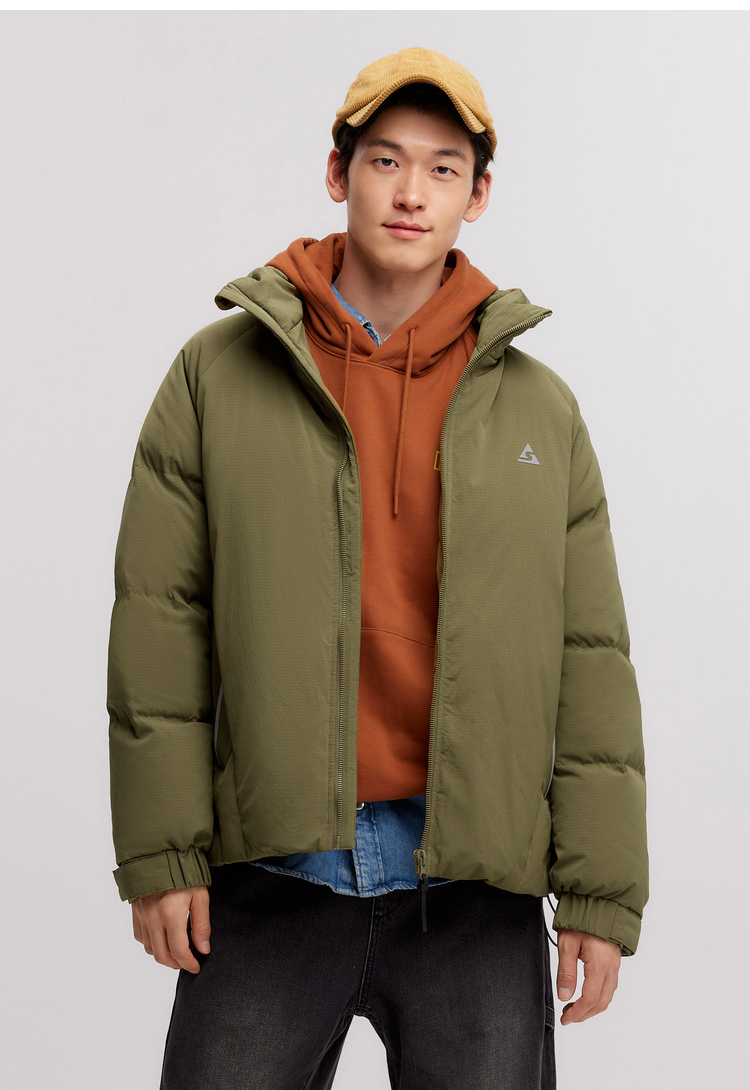 森马羽绒服男冬季新款户外肌理感印花外套宽松插肩袖立领潮流