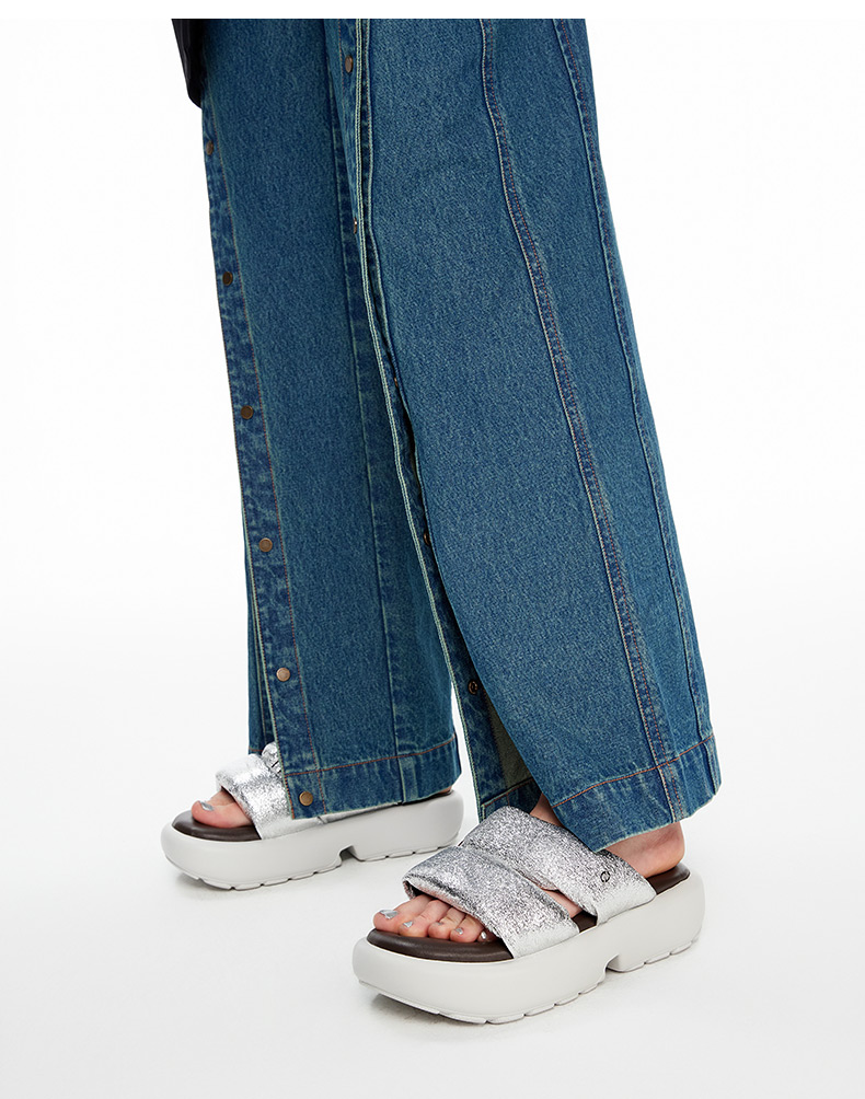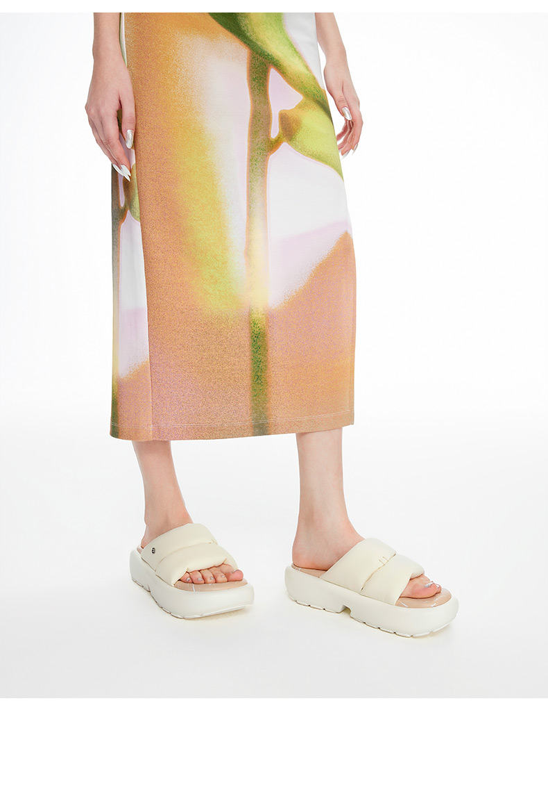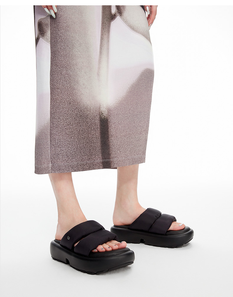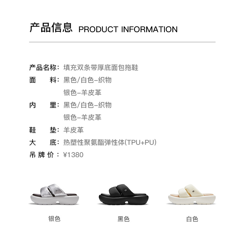 lost in echo2024新品设计师品牌填充感双条带厚底面包拖鞋沙发拖