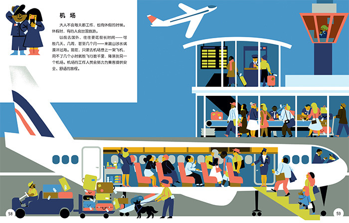 在本书所展开的职业认知旅程中,读者将跟随两个小朋友参观14个不同的工作场所,包括学校、医院、农场、剧院、音乐厅、机场等;参观完每个工作场所,一般会访问8位工作人员。接受访问的工作人员都在前面的工作场景中出现了,小读者,你能找到他们吗?充分考验你的观察力哟!