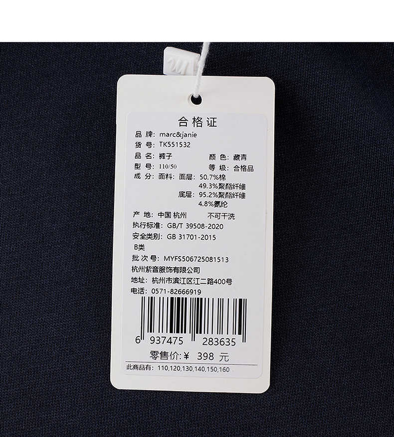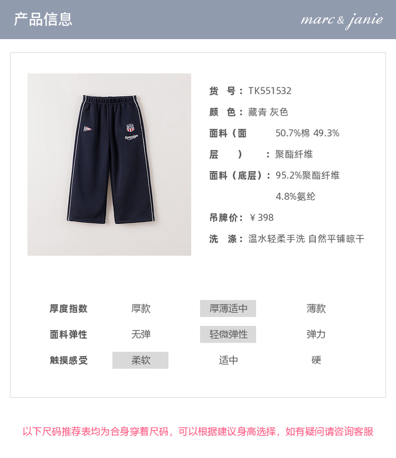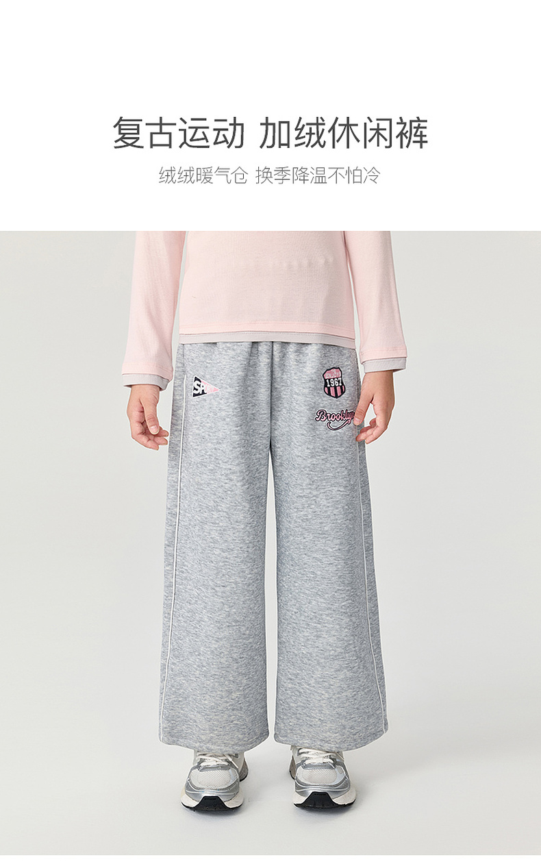 马克珍妮女童复古运动加绒休闲裤2025年秋冬新款551532