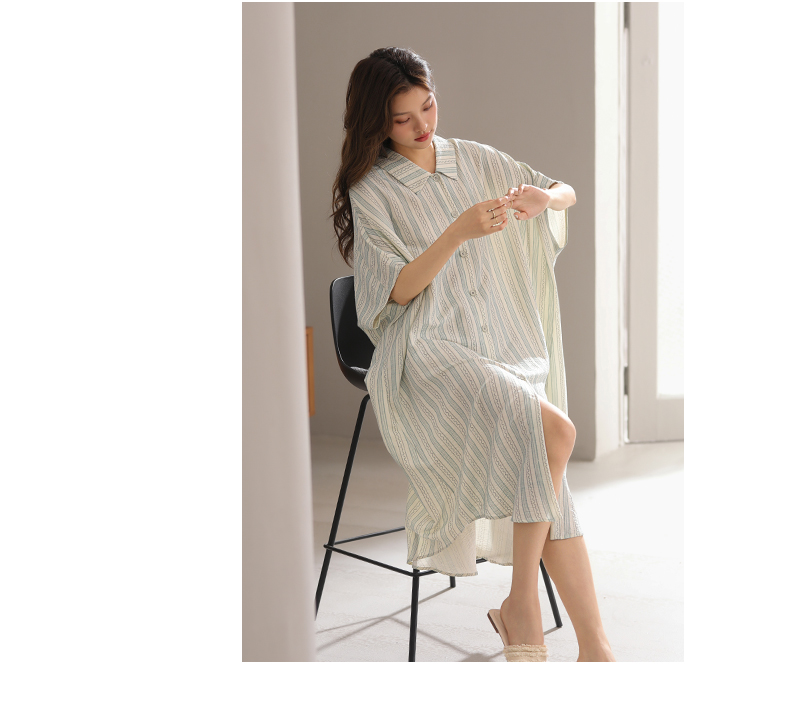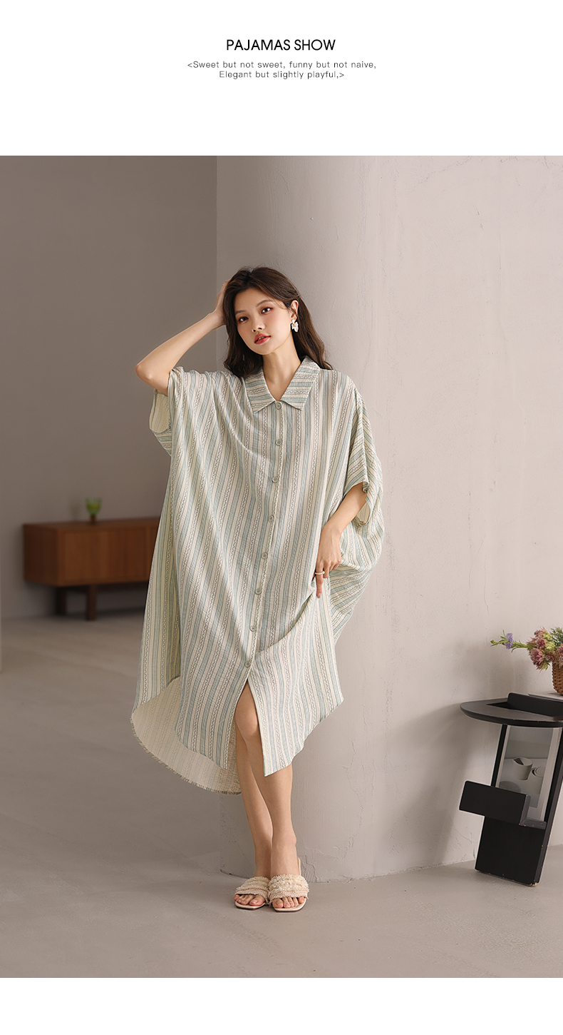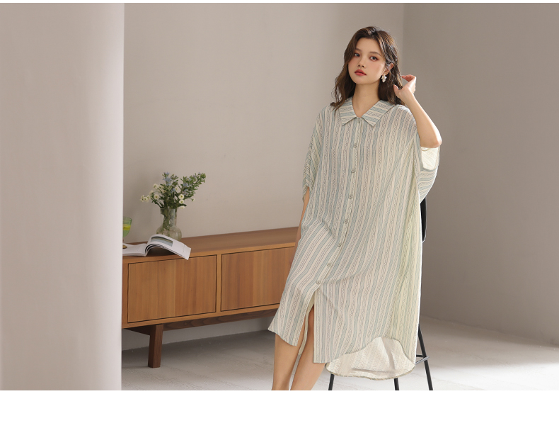 可人儿小众设计师新款泡泡绵女士睡衣夏短袖可外穿少女睡裙家居服