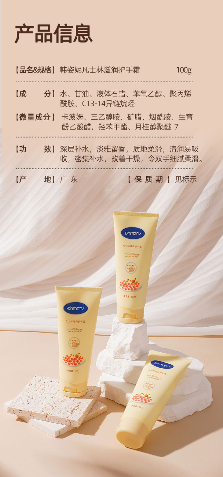 拍1发2【秋冬补水防裂便携手霜】凡士林护手霜滋润保湿烟酰胺亮采呵护润手霜