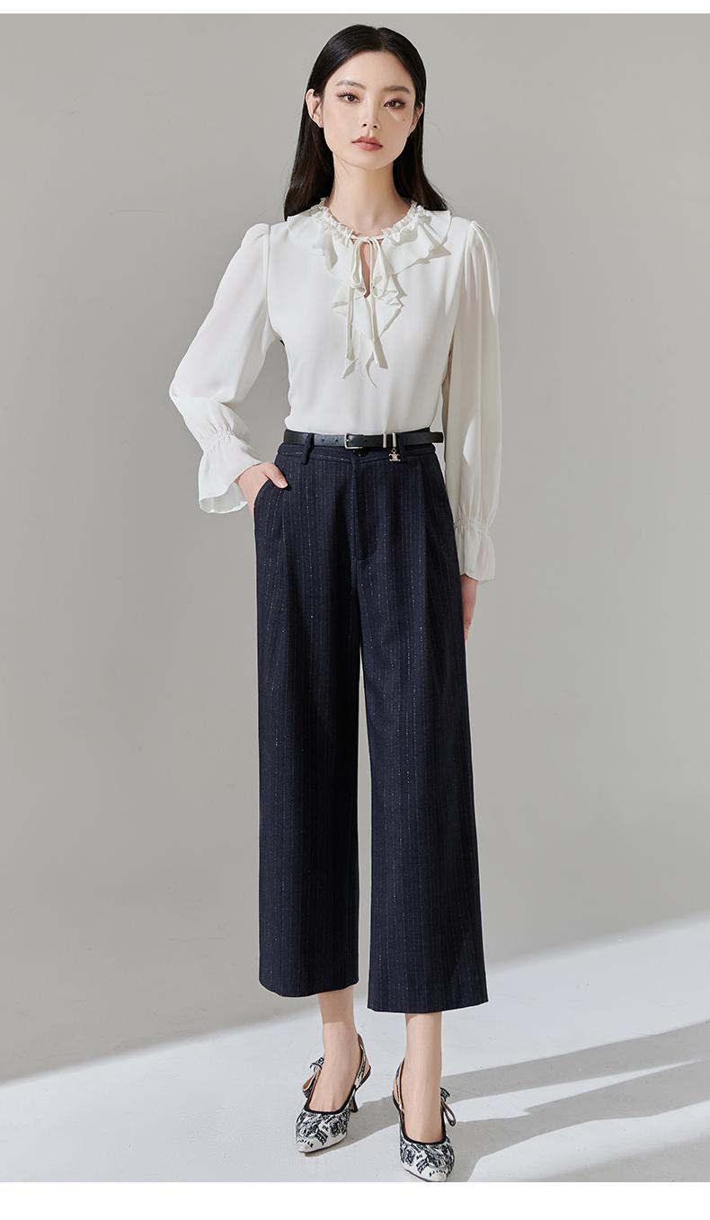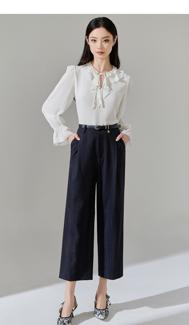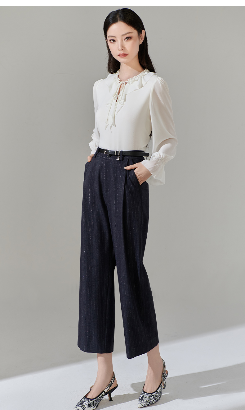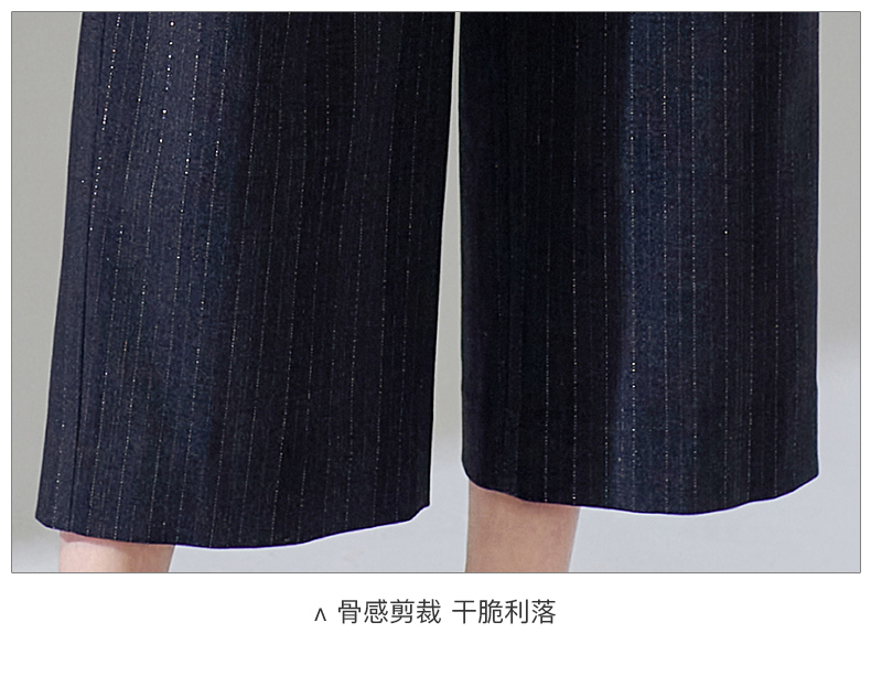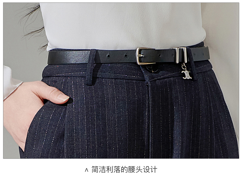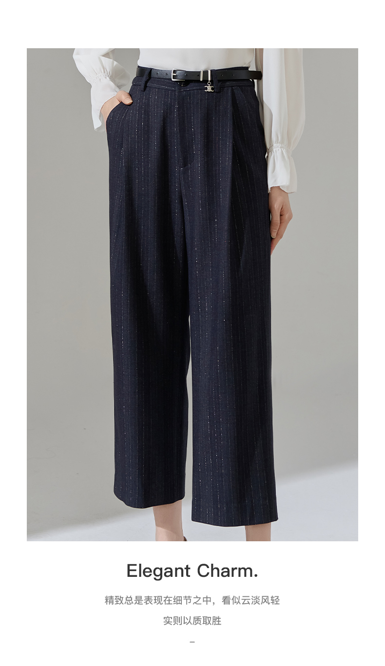 芳外新款休闲百搭阔腿裤宽松条纹高腰休闲裤女8T24AH0010