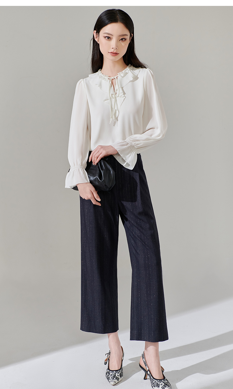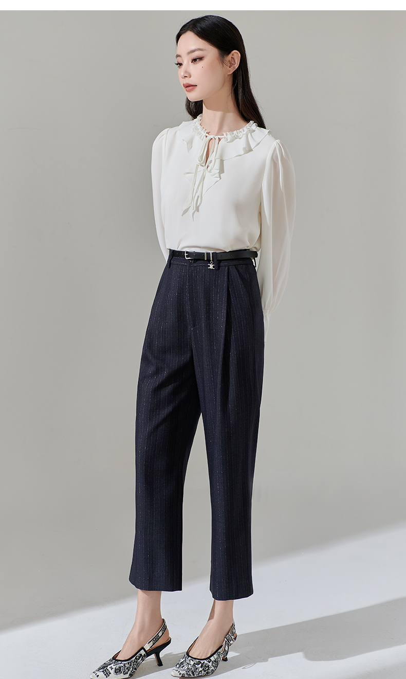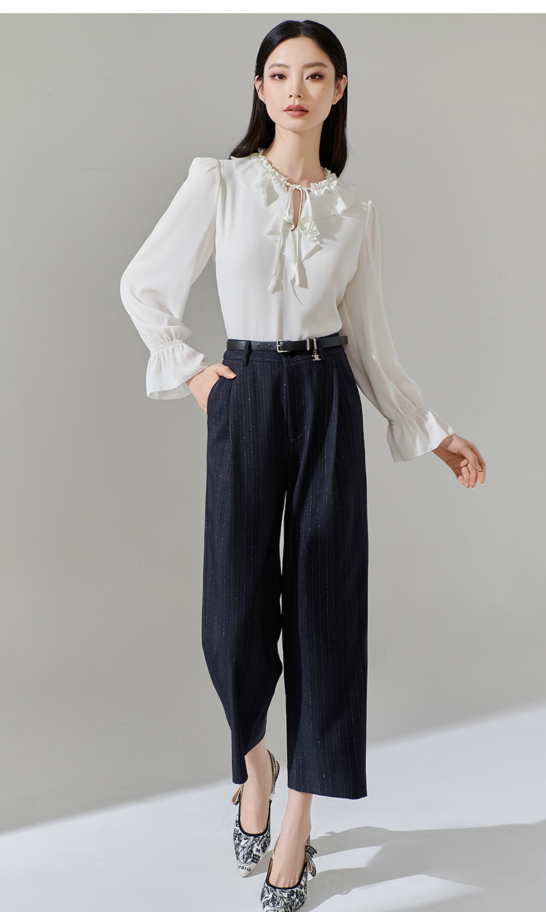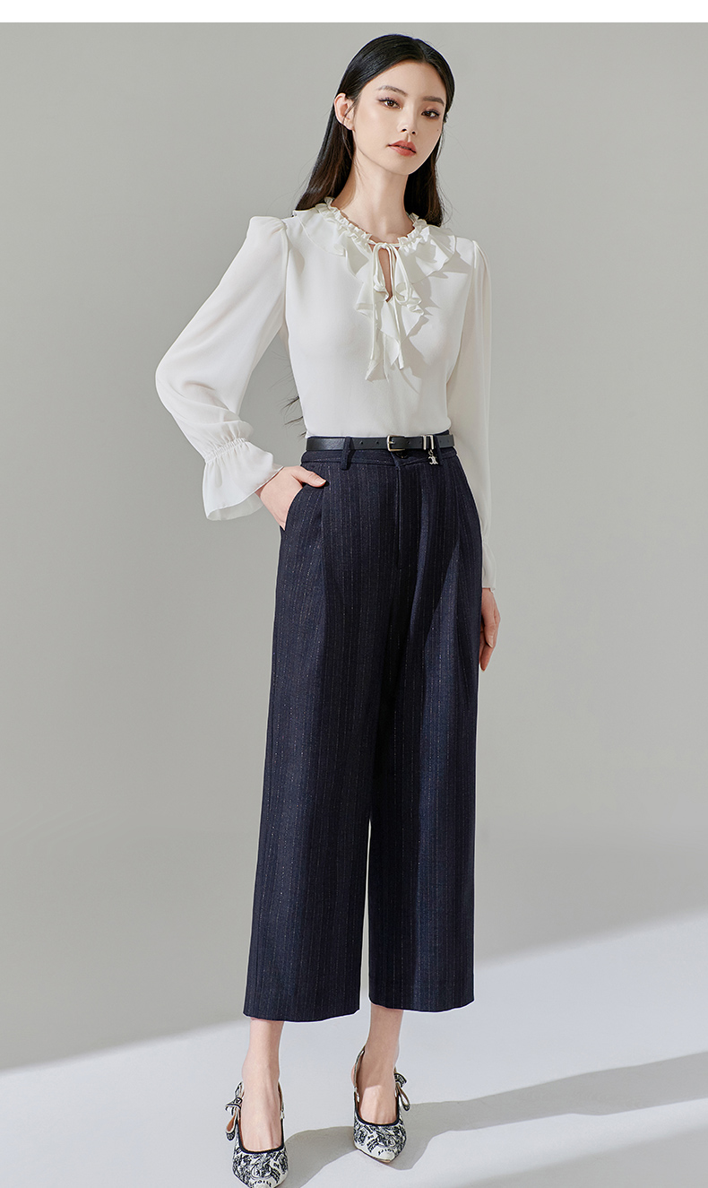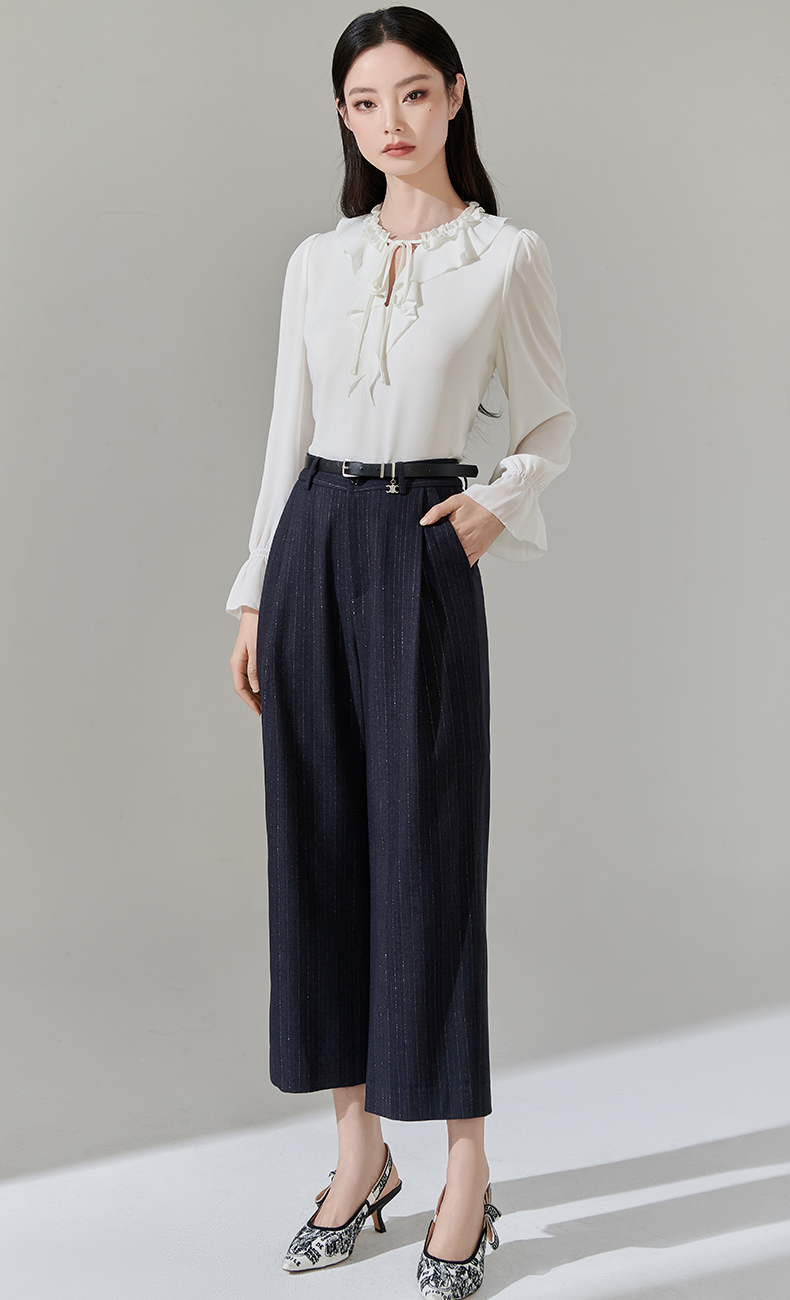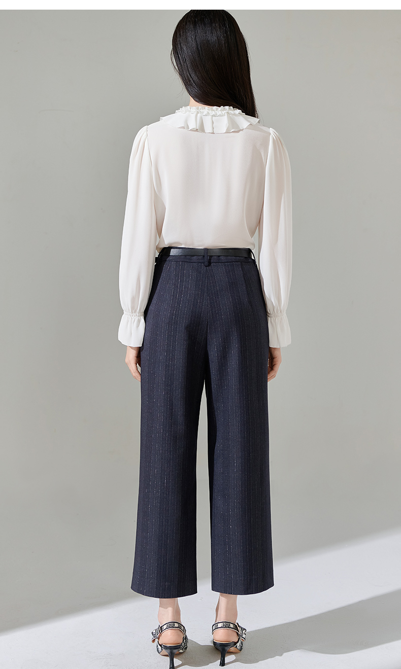 芳外新款休闲百搭阔腿裤宽松条纹高腰休闲裤女8T24AH0010
