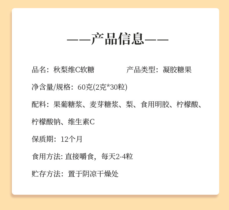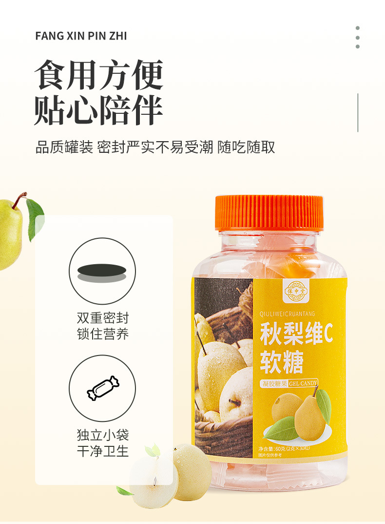 【买三送一!儿童秋梨维C软糖】Q弹美味好吃不腻,口感细腻醇正,粒粒饱满有营养丰富,果汁软糖叶黄素软糖各种软糖儿童营养品健康