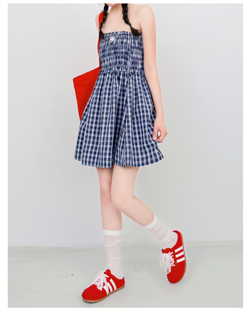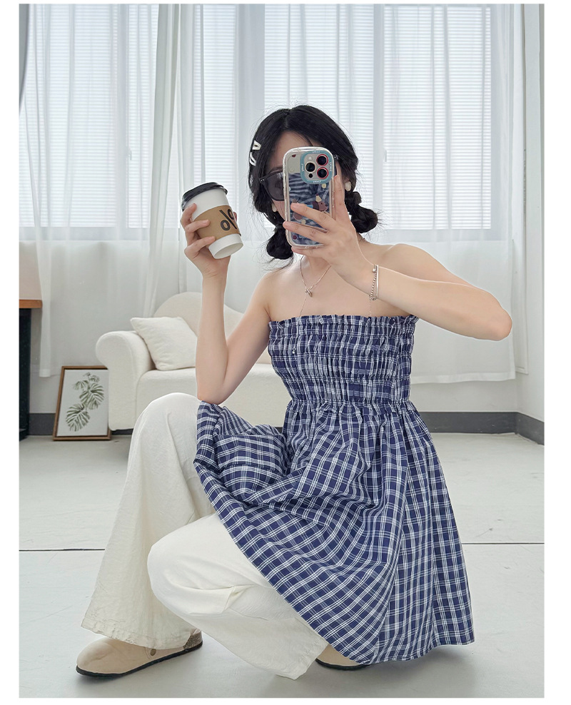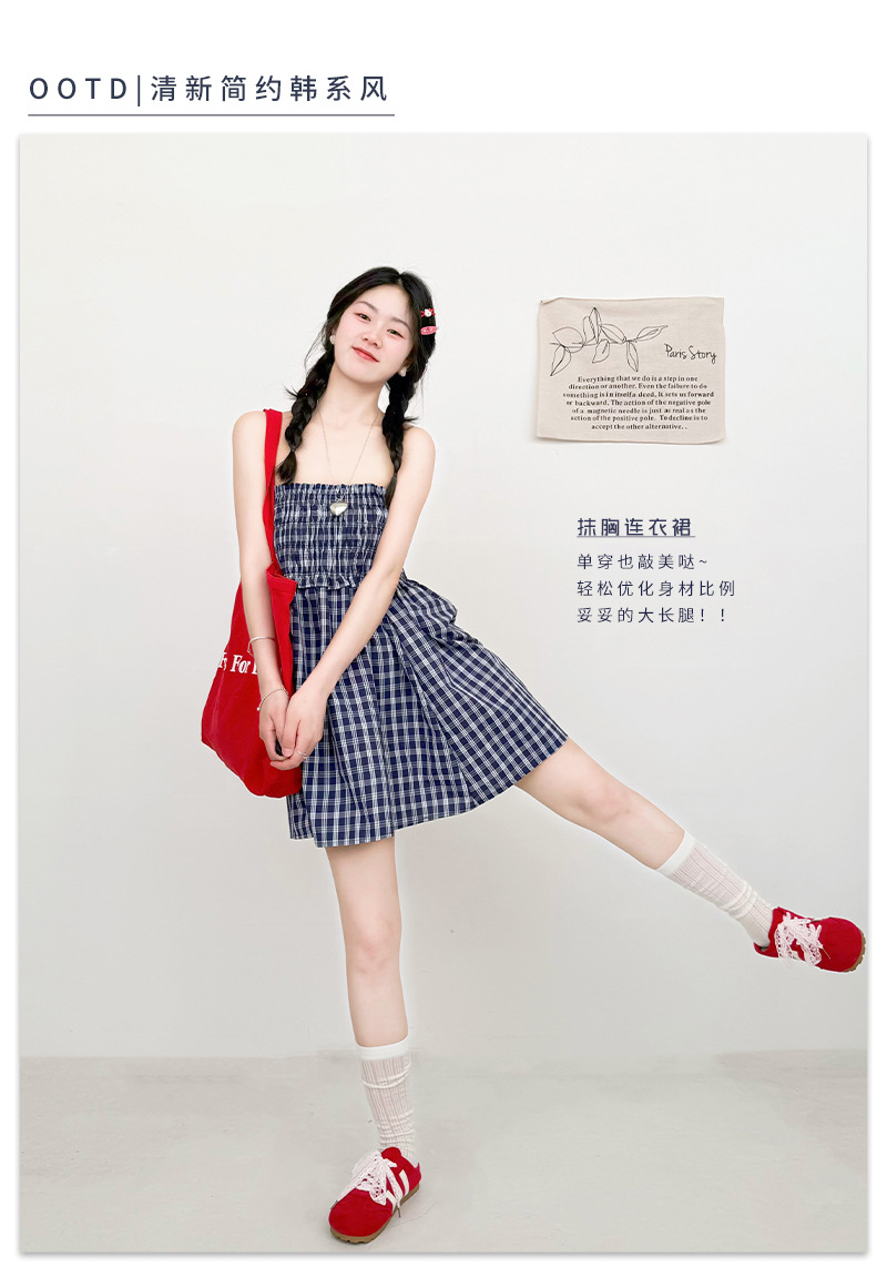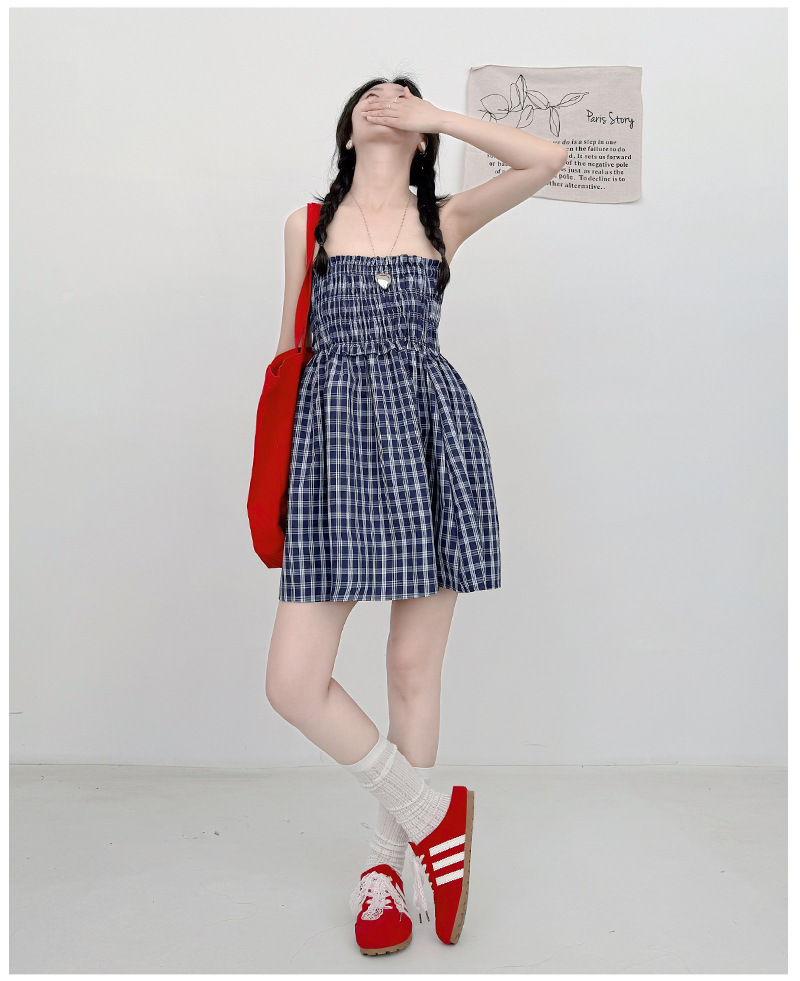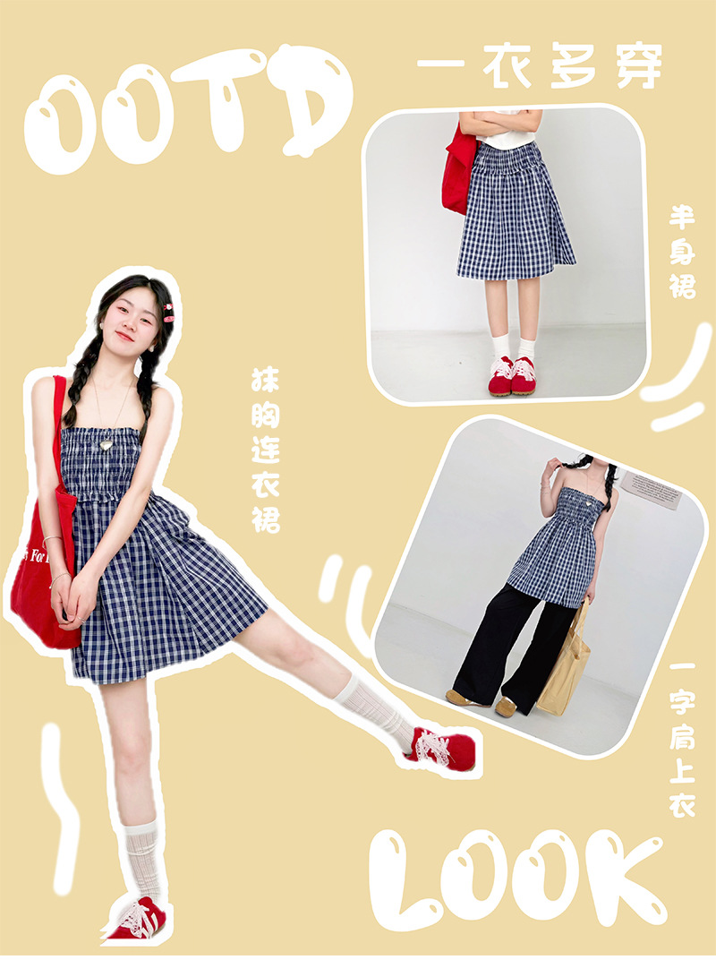 【YW】无忧购日系两穿半身伞裙垂感格子宽松抹胸连衣裙H-1818(截单后3-5天发货)