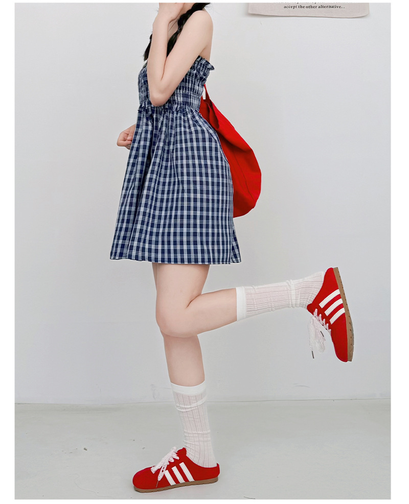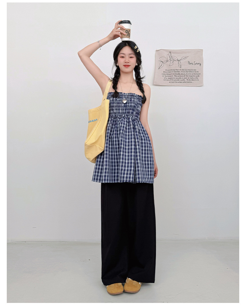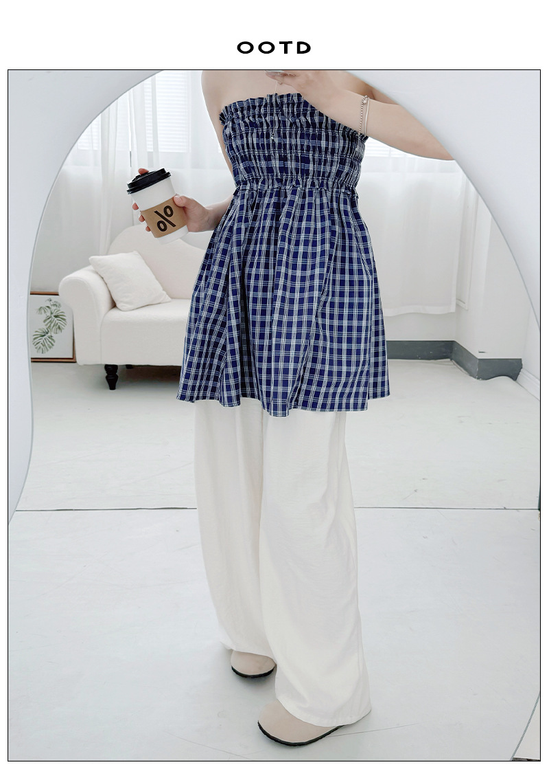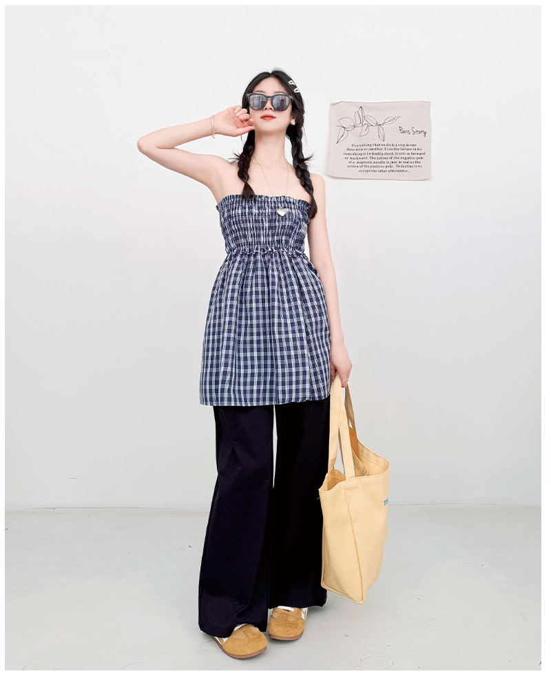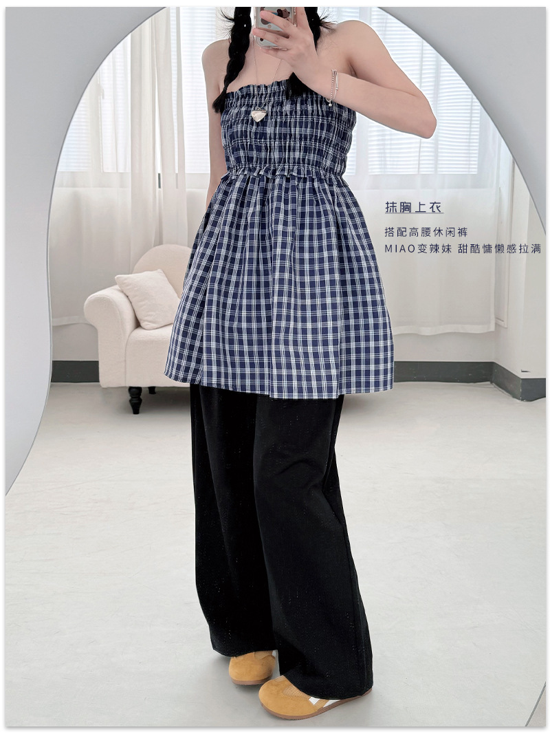 【YW】无忧购日系两穿半身伞裙垂感格子宽松抹胸连衣裙H-1818(截单后3-5天发货)